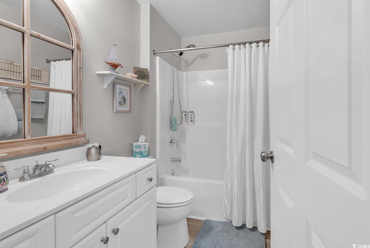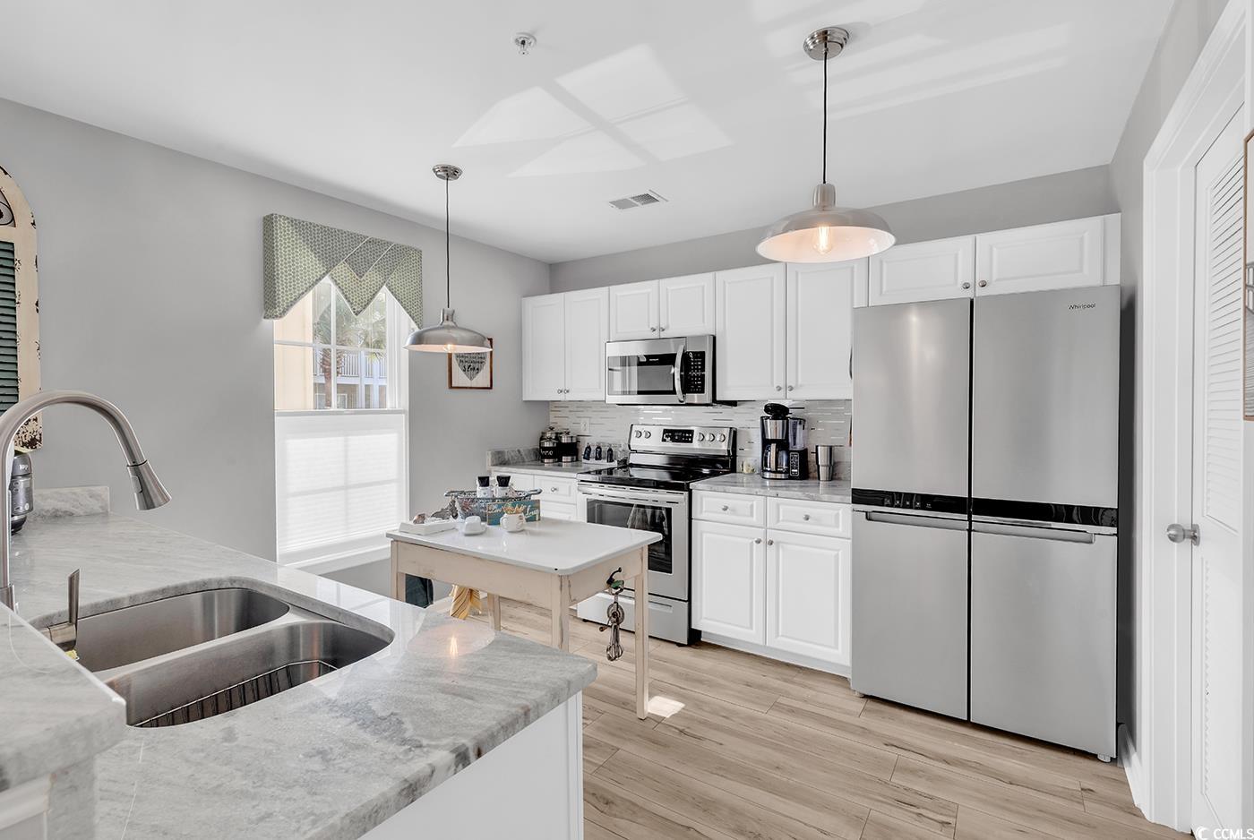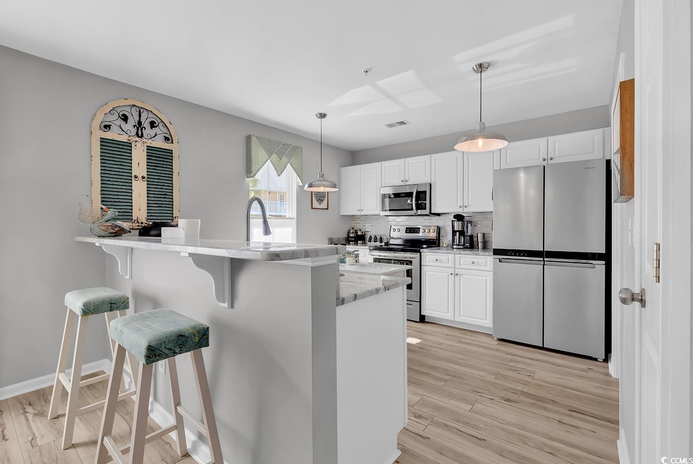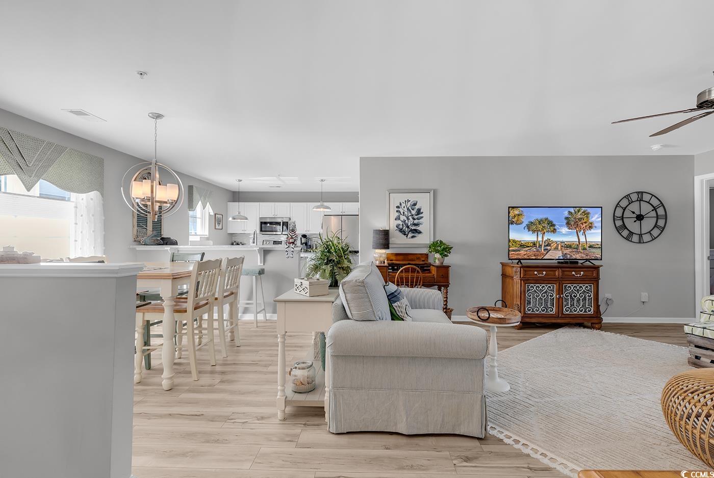 Carefully curated, impeccably decorated, fully furnished, turnkey, are just a few ways to describe this PERFECT condo, located just minutes to the beach. Almost everything included, all you will need is your suitcase! This tastefully decorated three bedroom, two bathroom condo comes fully furnished and ready to go, just bring a suitcase. From the window treatments, to the quartz countertops, no detail has gone unnoticed. The welcoming open floor plan greats guests with a spacious entryway, tastefully updated lighting and relaxing coastal décor. The kitchen features a breakfast bar, stainless steel appliances, a tile back splash, plus an island perfect for preparing your favorite meals. The engaging living room is the perfect place to sit back and relax after a day on the beach. Open up the sliding door to the screened in private patio to enjoy the coastal breeze. The spacious primary suite features window coverings, his & hers walk in closets and an ensuite bathroom, featuring a linen closet and walk-in shower. The split bedroom floorplan has two additional guest bedrooms and an updated bathroom perfect for guests. The community also features a quaint community pool. This condo is located just minutes from Market Common, Sayebrook, and the beach! It’s all about the location, location, location! Centrally located to restaurants, shopping, and all the attractions the Grand Strand has to offer. Don’t miss out, schedule a showing today!