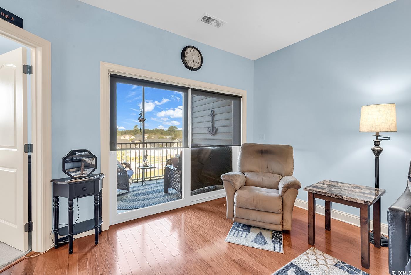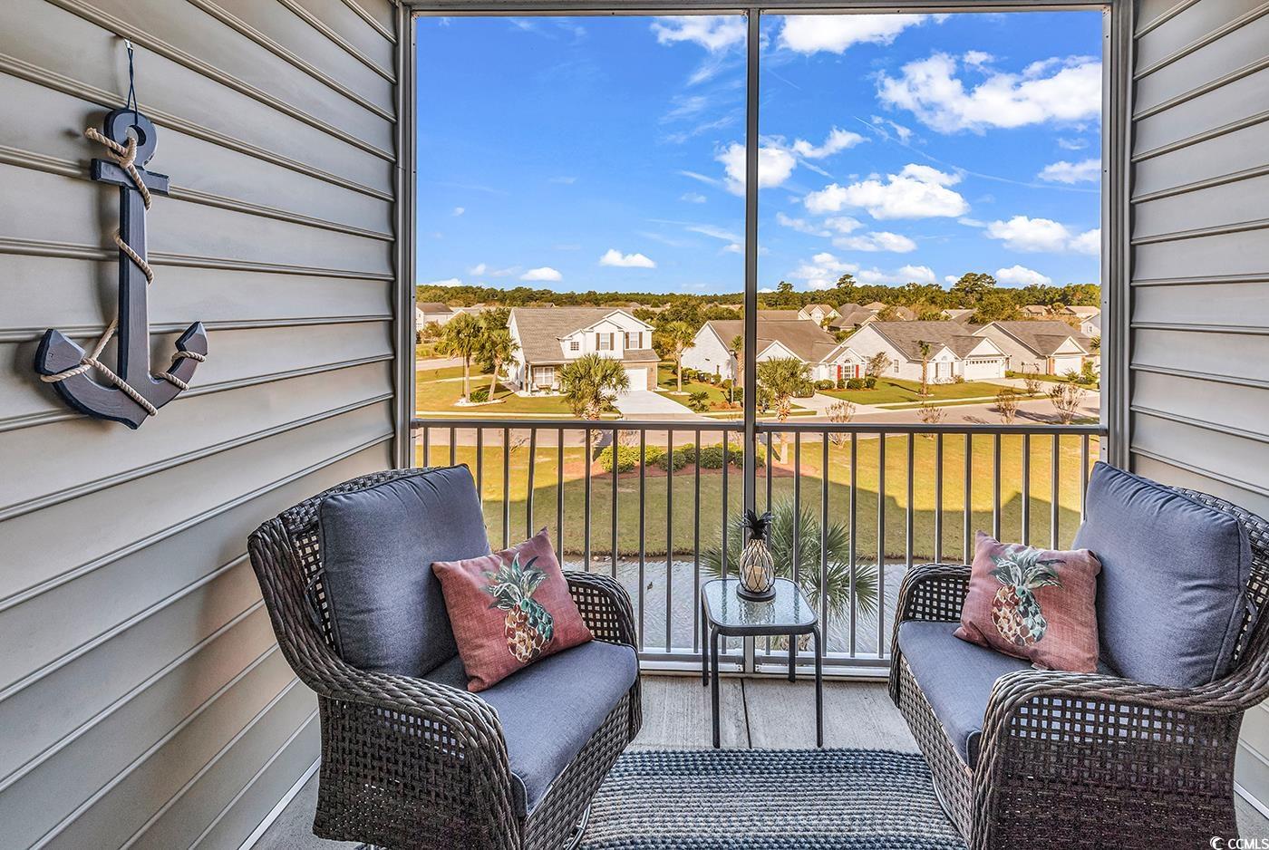 Welcome to one of the larger two-bedroom, two-bath units in the highly sought-after Villages of Queens Harbour, offering 1,277 heated square feet of well-de signed living space—close in size to many three-bedroom units but with much more open living area. Featuring a full-size kitchen with a brand new Quiet dishwasher, a large living and dining space, and a split-bedroom floor plan with soaring nine-foot ceilings, this bright open-concept condo feels both spacious and inviting. Freshly painted and move-in ready, the interior showcases beautiful wood flooring throughout the main living areas. The screened porch provides the perfect spot to relax and enjoy peaceful pond views. Located in an elevator building for added convenience, this condo is ideal for everyday living or as a second home. See the documents for a list of furnishings to convey if desired. The HVAC was replaced in 2018 and the roof in 2024. The Villages of Queens Harbour is a well-maintained community featuring a large saltwater pool, a welcoming clubhouse, and a picnic cabana—perfect for social gatherings or enjoying the Carolina sunshine. Ideally situated close to shopping, dining, Market Common, golf courses, and the airport, this condo offers a low-maintenance lifestyle in a prime location. Sellers are motivated, please schedule your appointment to view today!