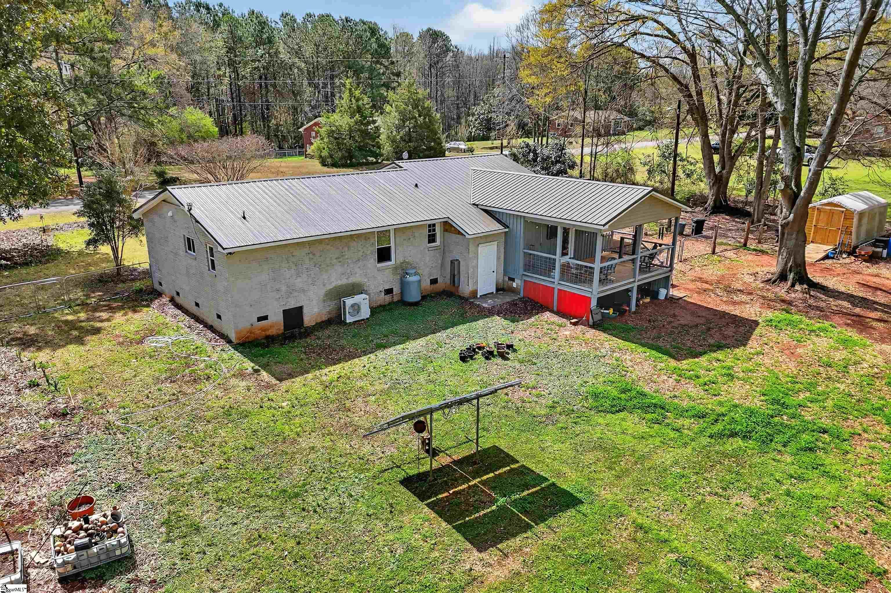 Completely renovated farmhouse style brick ranch on a private 1 acre lot with NO HOA. This updated country home features a NEW metal roof, NEW HVAC system, NEW hot water heater, NEW dishwasher, and NEW lighting throughout. Renovated brick ranch with open concept layout, farmhouse details, and stylish barn doors throughout. The beautiful kitchen includes granite countertops, stainless appliances, farmhouse sink, and a large island perfect for entertaining. The newly added luxury primary suite features a spa style bathroom with walk in tile shower, relaxing new soaking tub, smart lighted heated toilet, and a huge walk in closet with custom wooden shelving. Additional features include a walk in pantry, mudroom, and dedicated laundry room. Enjoy the 18x12 covered deck overlooking the fenced backyard and peaceful wooded setting where deer are often seen. Private 1 acre property offering quiet country living while still conveniently located near Greenville and Anderson. Renovated brick ranch with land, no HOA, modern updates, and farmhouse style — a rare find in today’s market.