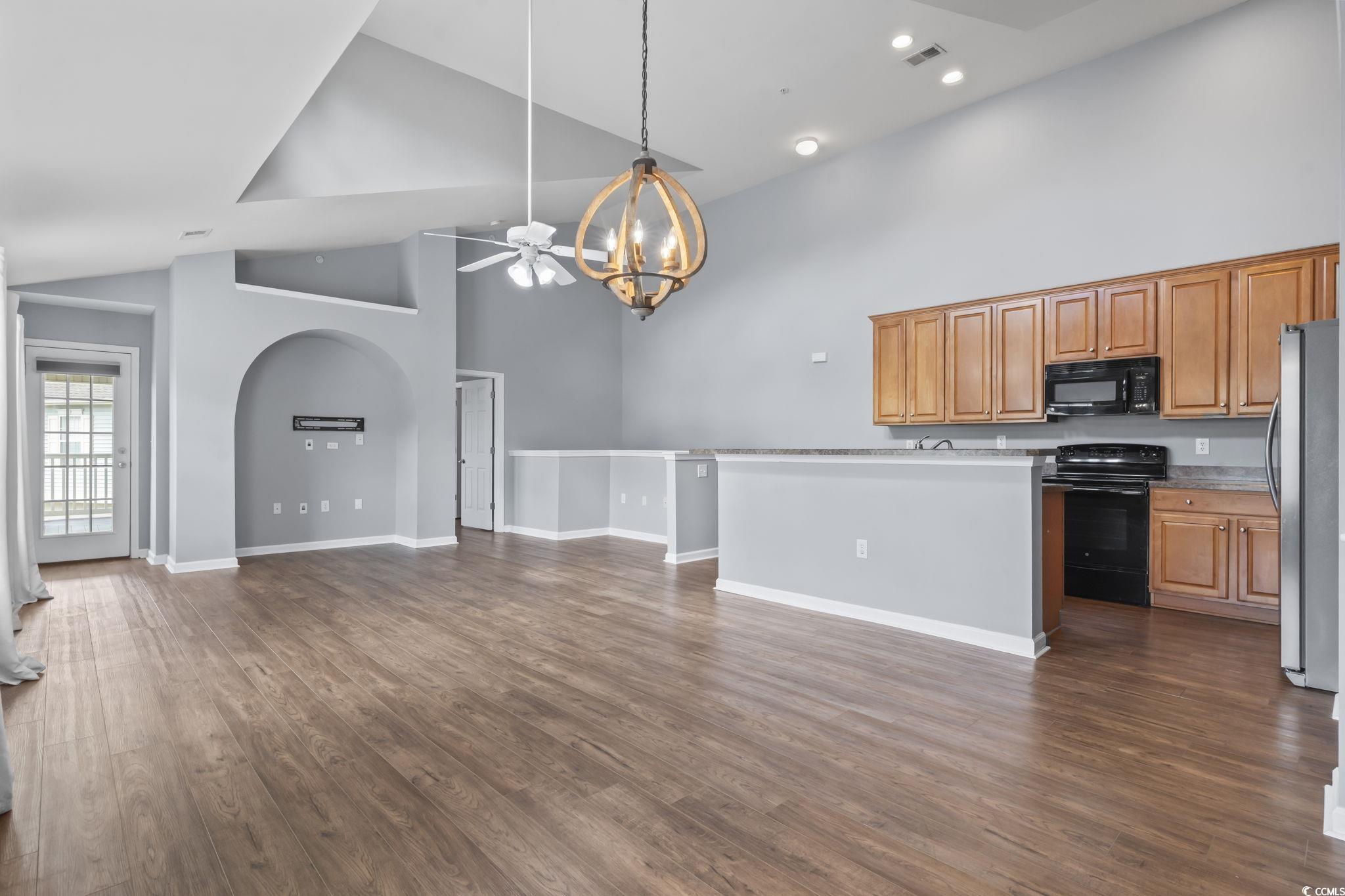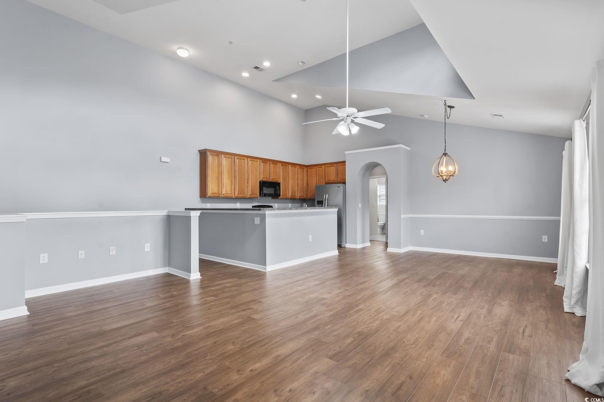 No fault of the seller, buyer's financing fell through. Bright, stylish, and impeccably maintained, this 2-bedroom, 2-bathroom townhome in the sought-after International Club offers the perfect blend of comfort, functionality, and low-maintenance living. From the moment you arrive, you'll be impressed by the meticulously maintained landscaping and scenic golf course views within the community. This home features an attached garage, as well as a spacious wraparound porch, ideal for enjoying peaceful mornings with coffee or relaxing evenings with a book or glass of wine. Step inside through the oversized ground-level foyer, then head upstairs to an open-concept living space filled with natural light, vaulted ceilings, and beautiful LVP flooring throughout the main level. The kitchen, dining, and living areas flow seamlessly together, creating a warm and inviting atmosphere. The expansive primary suite offers private access to the screened porch, a large walk-in closet, and a well-appointed ensuite bath with a double vanity, oversized tub/shower combination, and a transom window for added natural light. On the opposite side of the home, you'll find a second bedroom and full bath, providing privacy for guests' as well as a convenient laundry area. Property features a double garage - it is the width of a single vehicle, but can accommodate 2 cars. Enjoy the low-maintenance lifestyle with HOA amenities, giving you more time to experience the charm of Murrells Inlet, nearby golf courses, and the beach. This condo is truly move-in ready and waiting for you to call it home! Located just minutes from the beach, shopping, dining, and the historic Murrells Inlet, known as the "Seafood Capital of South Carolina," this home offers both comfort and convenience. Don't miss this rare opportunity to own a a beautifully maintained townhome in one of the area's most sought-after communities. Buyer is responsible for verifying all measurements.