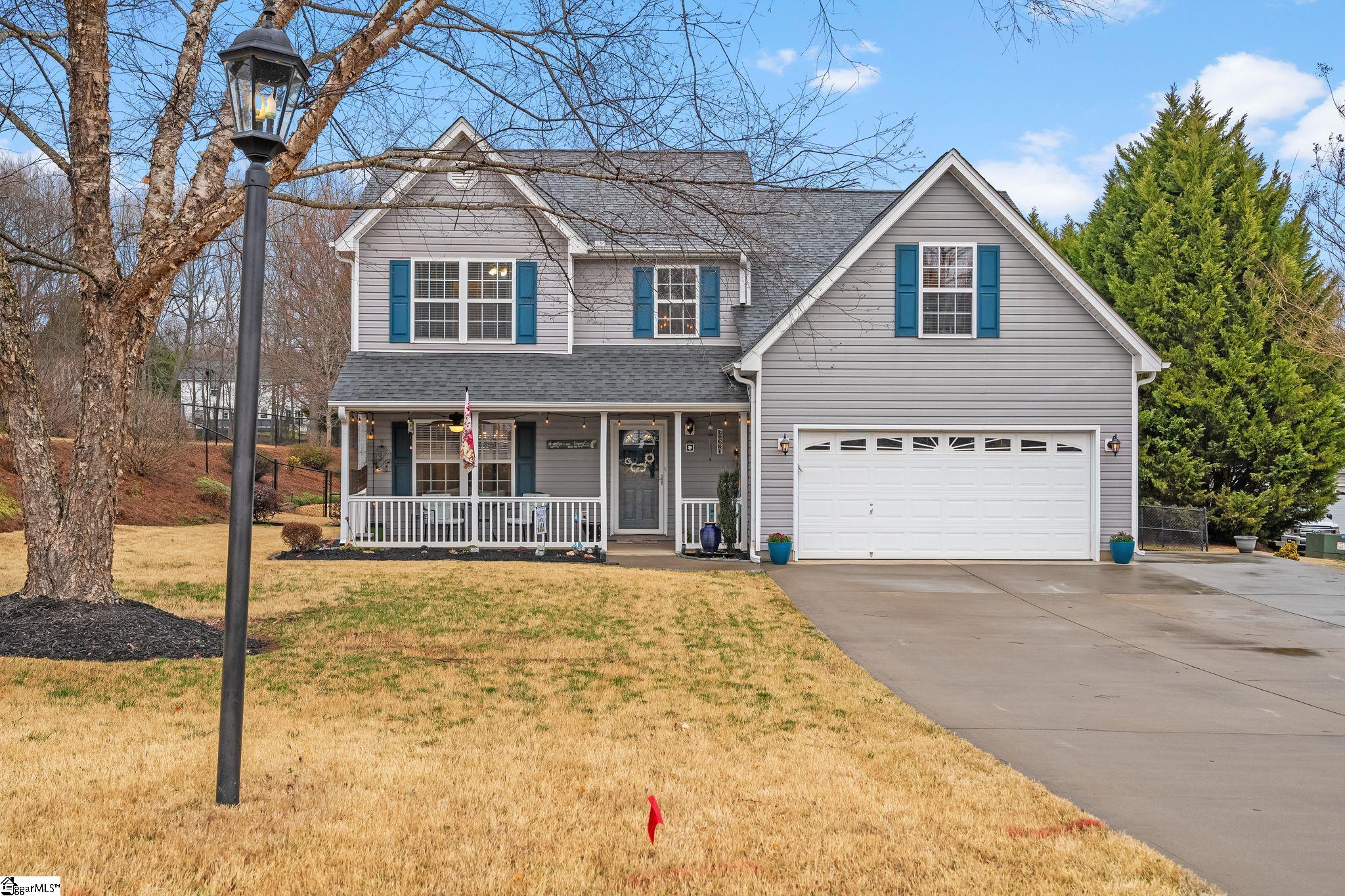 PRE-INSPECTED AND REPAIRS ARE DONE! This one checks every box and is move-in ready! Welcome to 117 Marah Lane, a 4-bedroom, 2.5-bath home on a quiet cul-de-sac in Blue Ridge Farm. Conveniently located 15 minutes from Downtown Greer and about 30 minutes from Downtown Greenville, this home sits on a spacious 0.7-acre fenced lot with plenty of room to enjoy the outdoors. The backyard is a standout feature, with a large patio and outdoor fireplace—perfect for relaxing or entertaining. Inside, the main level offers an open flow between the living room and kitchen, making everyday living and hosting easy. A formal dining room and additional flex space provide options for a home office, sitting room, or den. Upstairs, the primary suite is generous with walk in closet and soaking tub, and one of the secondary bedrooms includes a private flex room—great for a playroom, home gym, or media space.