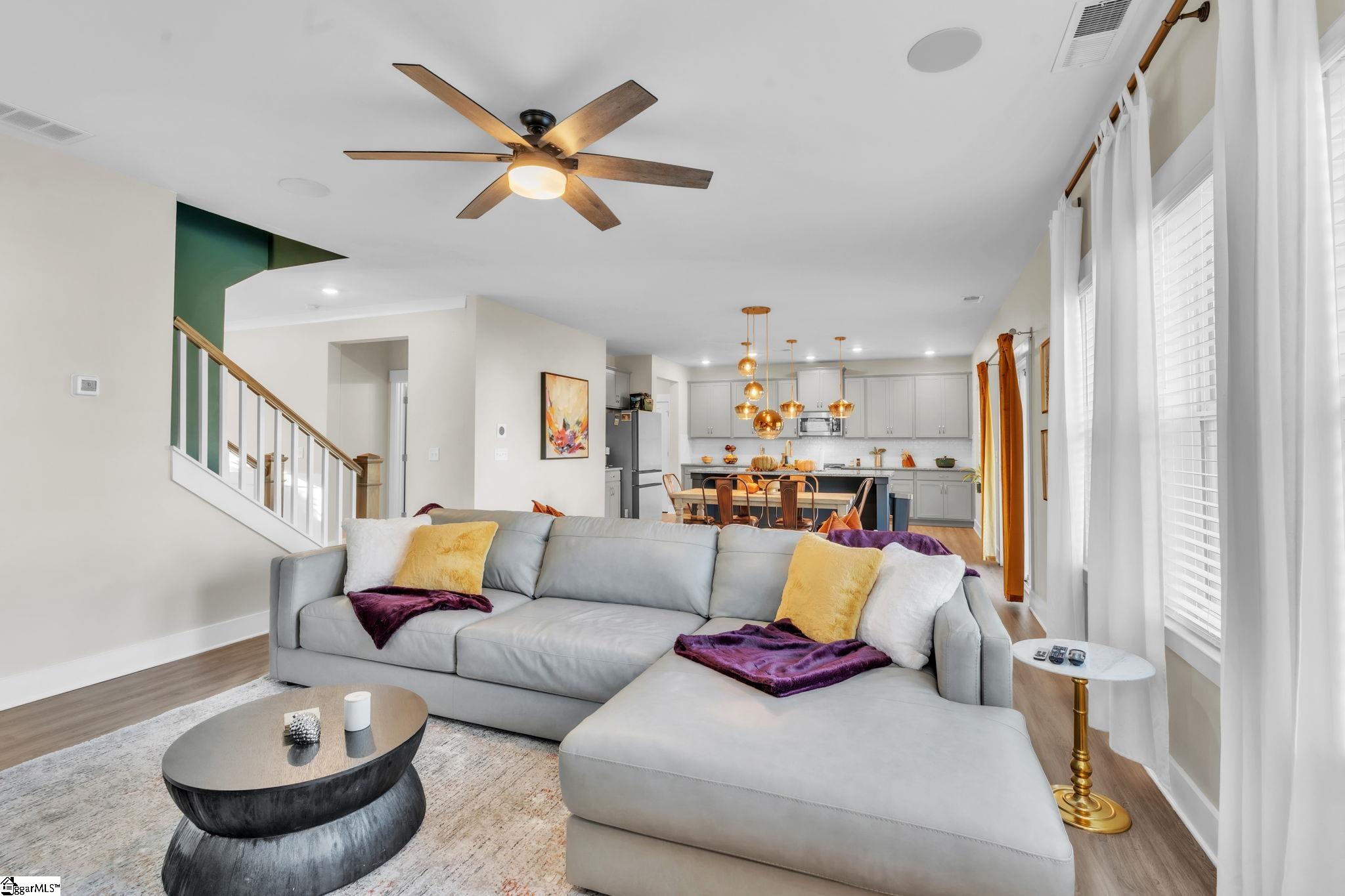 BASEMENT HOME! Now available with an unfinished basement in the highly sought-after Ivy Walk community in Simpsonville! Perfectly located near Fairview Road, Main Street Simpsonville, and all the area’s best shopping, dining, and entertainment. Step inside to find a spacious, open-concept layout featuring a huge island kitchen that flows seamlessly into the family room, complete with a cozy fireplace and plenty of natural light. The gourmet kitchen boasts granite countertops, a tile backsplash, 42" cabinetry, upgraded appliances, and stylish pendant lighting. You’ll love the Luxury Vinyl Plank flooring throughout the foyer, kitchen, breakfast area, and family room. The owner’s suite offers a luxurious bath with a full tile shower, dual comfort-height vanities, framed mirror, and more. Enjoy outdoor living on your covered back deck—perfect for relaxing or entertaining. Energy-efficient features include: LED lighting Low-E windows Tankless water heater Advanced home automation Smart home features include structured wiring, two in-ceiling speakers controlled by a wall-mounted Amazon Echo Dot, two Wi-Fi enabled light switches, and a video doorbell. Don’t miss your chance to own this stunning new home in Ivy Walk!