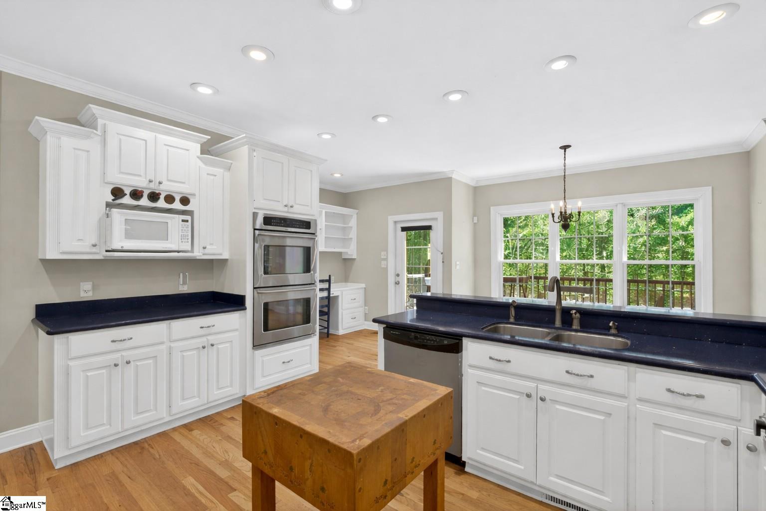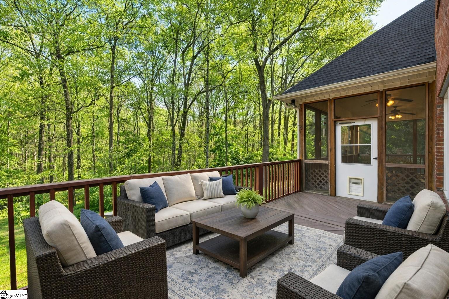 An exceptional offering in the highly sought-after Sugarmill community—where opportunities are rare—this stunning Allen Bennett custom-built residence showcases luxury, scale, and thoughtful design at every turn. Nestled on a private 1.26-acre homesite surrounded by mature trees and lush foliage in the fenced backyard, this expansive 5-bedroom, 5.5-bath estate with a 3-car garage and fully finished basement is designed for both refined living and effortless entertaining. Outdoor living is unparalleled, with two oversized screened porches, a deck with a gas hookup for grilling, and a waterproofed, covered brick-paver patio—creating multiple inviting spaces to relax and entertain while enjoying the serene, wooded surroundings. From the moment you enter the impressive two-story foyer, you are greeted by newly refinished hardwood floors that flow throughout much of the main level. A versatile office with custom built-ins and closet—easily converted to a main-level guest suite—sits just off the entry, while a formal dining room with elegant trey ceiling provides the perfect setting for hosting. The grand living room features soaring vaulted ceilings, a gas fireplace, and walls of windows that flood the space with natural light, seamlessly connecting to one of the two expansive screened-in porches. The gourmet kitchen is equally impressive, offering double ovens, a commercial-grade refrigerator and freezer, gas range with downdraft and grilling station, walk-in pantry, abundant cabinetry, a built-in desk area, and generous bar seating—ideal for both everyday living and entertaining. The main-level owner’s suite is truly a retreat, featuring private access to the second screened porch and the rare luxury of dual full bathrooms, each with its own closet—providing unmatched comfort and privacy. One bath includes a jetted soaking tub for a spa-like experience. A spacious walk-in laundry room with folding station and an additional half bath complete the main level. Upstairs, newly updated staircase spindles lead to generously sized secondary bedrooms, including two oversized rooms connected by a Jack-and-Jill bath with separate vanity and dedicated makeup space, as well as a third large bedroom with its own en suite. A walk-in attic houses a second-floor water heater for added convenience and functionality. The fully finished basement offers incredible flexibility as a secondary living space or in-law suite, complete with a full kitchen featuring tile flooring, a large island with bar seating, a dishwasher, refrigerator, and ample dining space. The adjoining living area includes a built-in speaker system, along with an additional recreation room currently housing a pool table. A private bedroom, full bath, and a dedicated home gym with specialized electrical setup further enhance the space, along with direct access to a third garage. Additional highlights include spray foam insulation for enhanced energy efficiency, two water heaters, AT&T fiber optic connectivity, abundant storage with multiple walk-in closets throughout the home, and a NEW (2026) main-level HVAC system. This is a rare opportunity to own a truly remarkable home that blends luxury, privacy, and functionality in one of the area’s most desirable neighborhoods that boasts award-winning district 6 schools, easy access to major highway systems I-26 & I-85, and is conveniently located to shopping, dining options, groceries, and doctors' offices and the hospital. Must see to appreciate all this home has to offer.