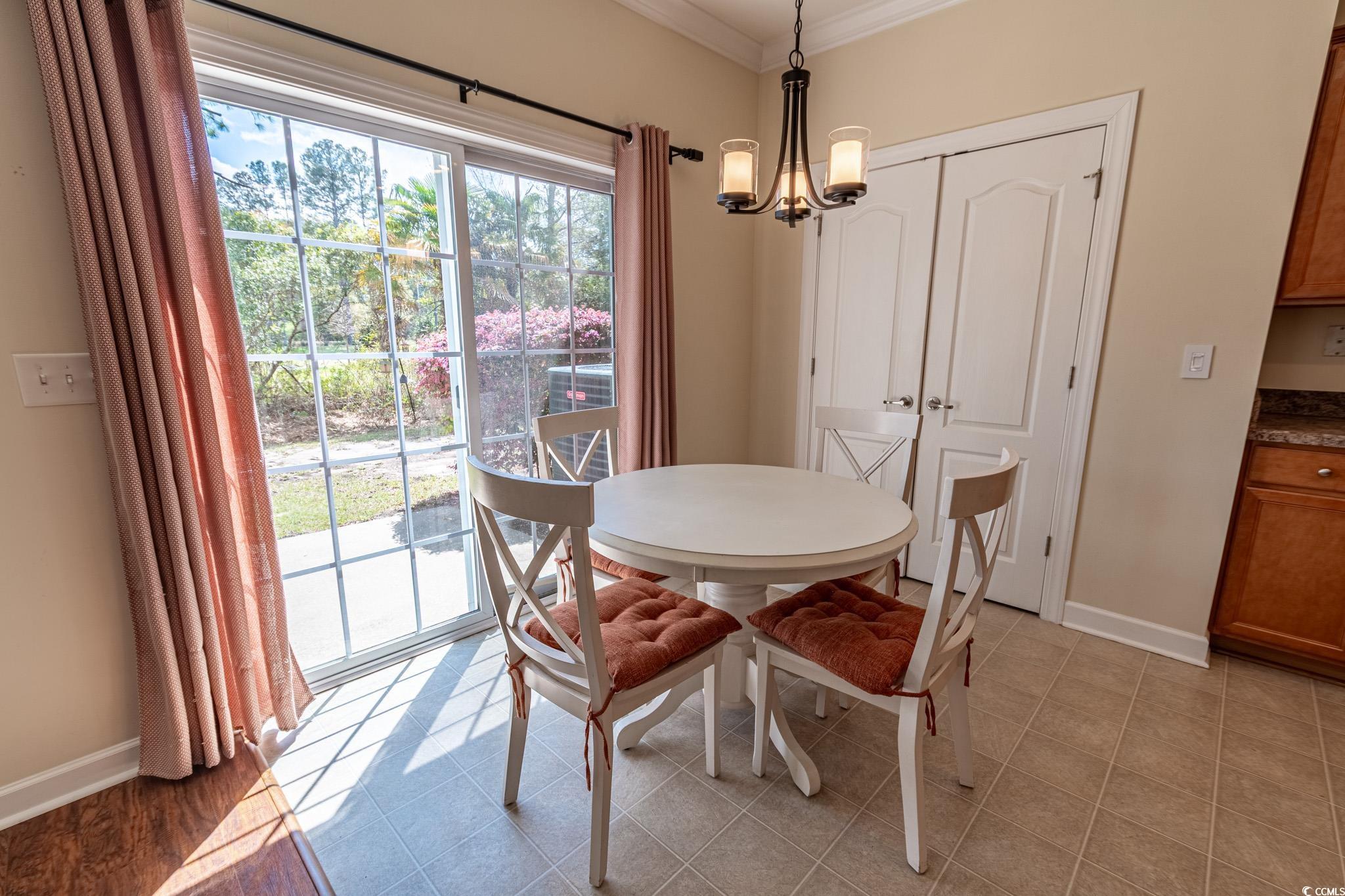 Spacious three-bedroom, two-and-a-half-bath townhouse with a two-car garage located in the desirable Fairways at Wild Wing community. The living room features vaulted ceilings and a ceiling fan, with LVP and laminate flooring throughout the main areas and cozy carpet in the bedrooms. The kitchen offers black appliances, a breakfast nook, work island, and pantry. A convenient laundry room and half bath are also located on the first floor. Upstairs, you’ll find all three bedrooms, including the primary suite with a ceiling fan, walk-in closet, and private bath featuring dual sinks, a tub/shower combination, and a linen closet. The two additional bedrooms each include ceiling fans and share a full hallway bath. Relax on the backyard patio while enjoying peaceful views of the tree line. Fairways at Wild Wing offers a community pool and is conveniently located near shopping, dining, entertainment, and just a short drive to the beach or downtown Conway. Square footage is approximate; buyers should verify.
