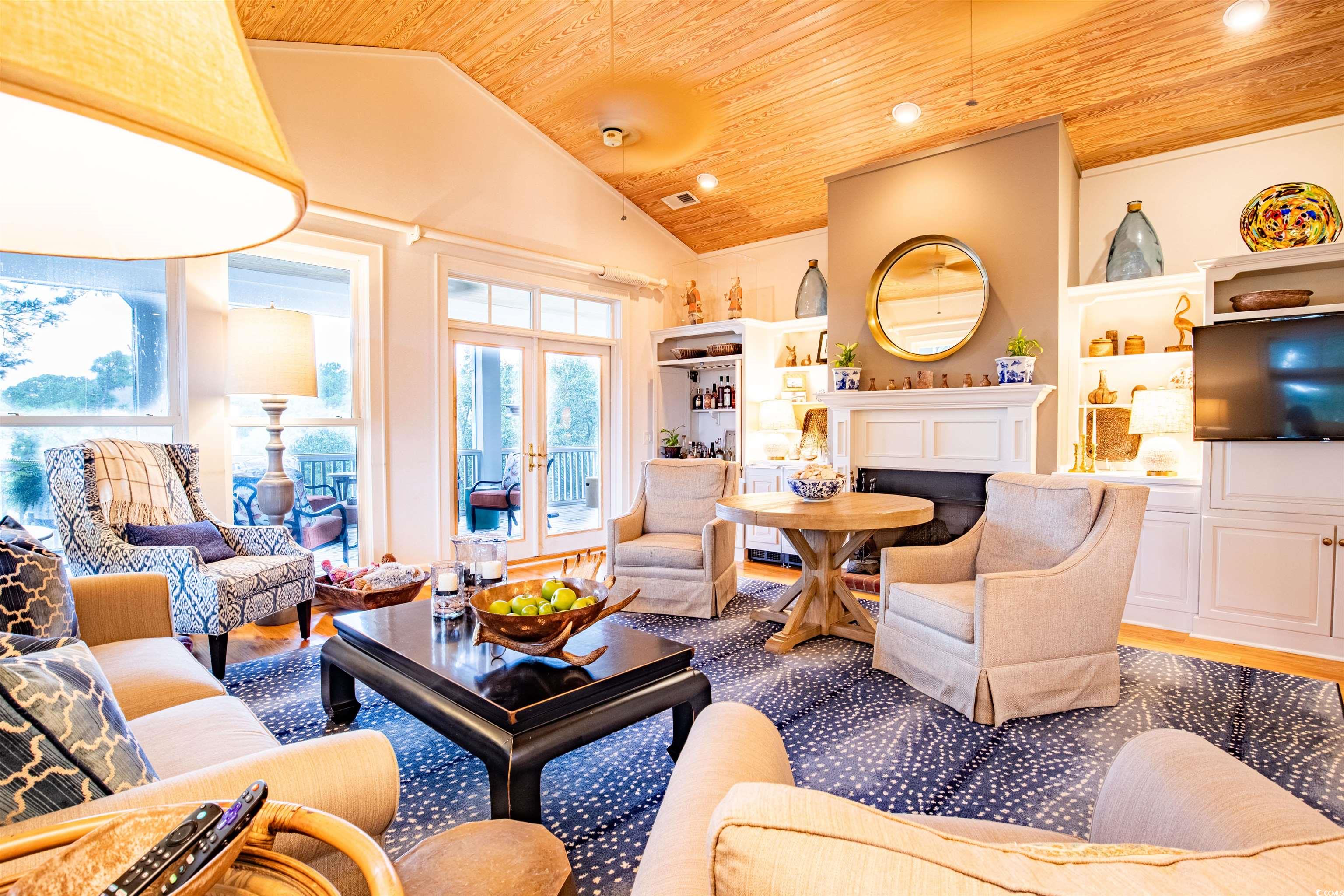 Timeless Lowcountry style meets modern coastal living in this beautifully designed home, just steps from the private Ocean Oaks beach access. Wide, deep porches invite year-round outdoor living, while the open-concept interior is crafted for both comfort and entertaining. The main living area features a soaring wood-accent ceiling, heart pine floors, and a fireplace that creates a warm gathering space. A gourmet kitchen anchors the home with a gas range, breakfast bar, double ovens, and a generous island. Multiple screened porches capture tranquil views of the two-acre pond and coastal breezes. With approximately 4,200 heated square feet, this home offers 4 spacious bedrooms plus a den on the first floor, a serene primary suite on the main level, and a loft office with access to the widow’s walk and rooftop deck above. An elevator connects all floors, ensuring effortless living. Practicality blends with luxury through ample ground-level storage, a beach shower, and room for vehicles, golf carts, and outdoor gear. Designed for everyday enjoyment and entertaining, 118 Ballyhoo Street is a rare opportunity to own a thoughtfully crafted coastal retreat in the heart of DeBordieu Colony.