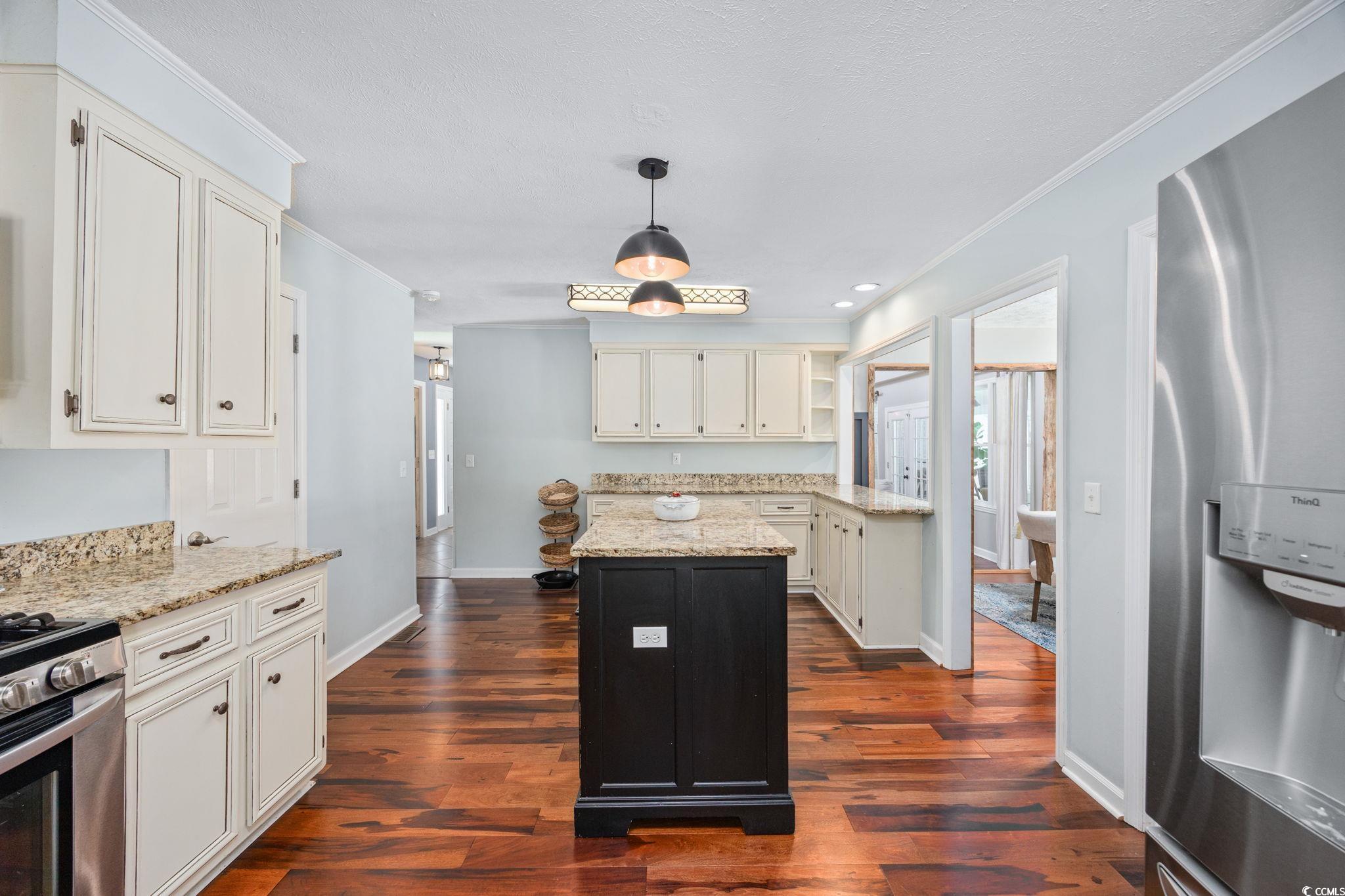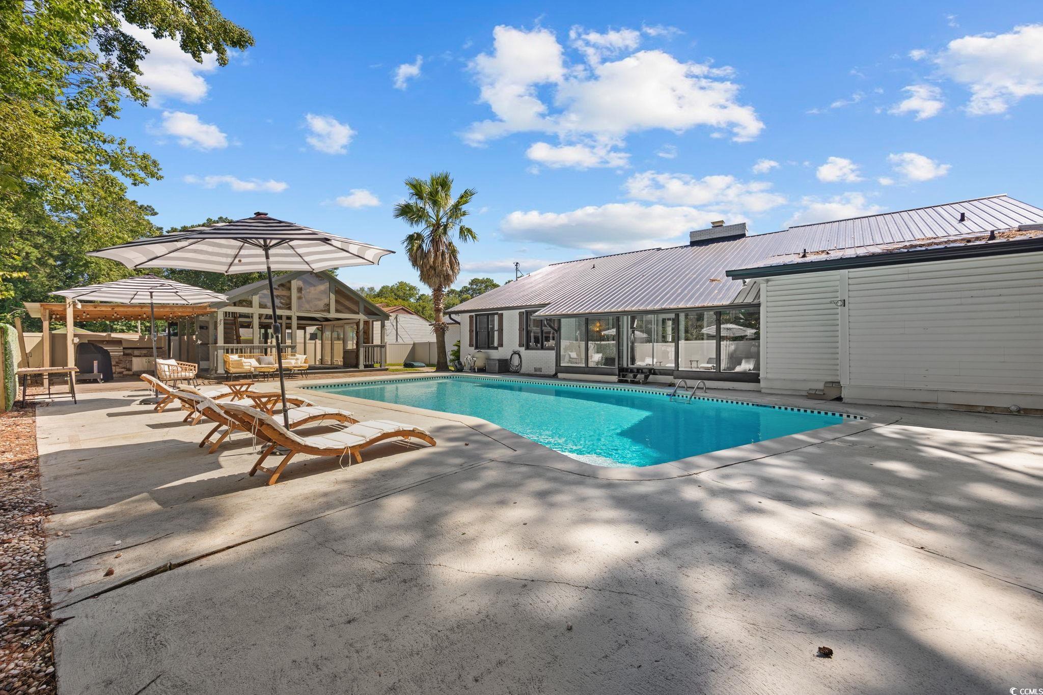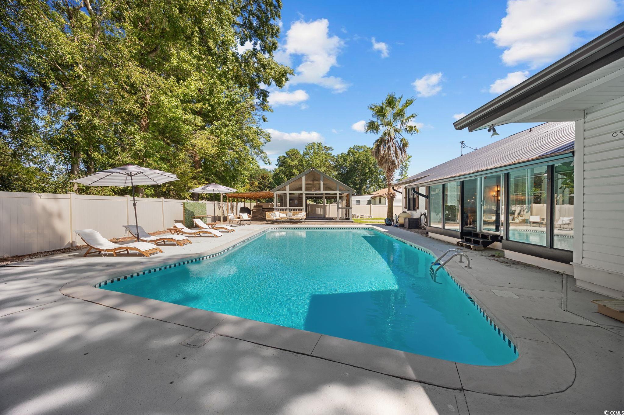 Welcome to 118 Clemson Road — a truly one-of-a-kind, single-level home that checks all the boxes. This unique home has been thoughtfully updated inside and out, offering both charm and function in a great location with no HOA—bring your boat or camper! Step inside to soaring 20’ ceilings in the great room with a stunning brick fireplace and tons of natural light. You’ll find 4 bedrooms and 2 full beautifully updated bathrooms. The owners' ensuite has a tile shower, separate tub, and walk-in closet. There is a door off of this bathroom to the outside for easy access to the pool and outdoor oasis. There are other special touches throughout like custom wood accents, Brazilian Chocolate Pecan hardwoods, LVP, tile flooring, and plenty of closet options and storage space. The kitchen features stainless steel appliances, granite countertops, an island, breakfast bar and opens to the formal dining room that has a view of the pool. There’s also a cozy sunken den with a second wood-burning fireplace that could be a bonus room, playroom, billiards room or extra living space. The backyard is made for entertaining, with a freshly refinished in-ground pool that’s as gorgeous as it is spacious. There’s an open-air pool house with an elevated play loft, a custom covered grilling station, and a full 6-foot vinyl privacy fence surrounding the space. Enjoy your morning coffee or unwind in the glass Carolina room overlooking the pool. Recent upgrades include new exterior paint, metal roof, gutters, new hot water heater, and HVAC system and ductwork. Located just a short walk from Conway Medical Center and a quick golf cart ride to CCU events. It is only 10 minutes to downtown Conway and 15 minutes to Myrtle Beach—convenient, comfortable, and move in ready. Schedule your showing today!
