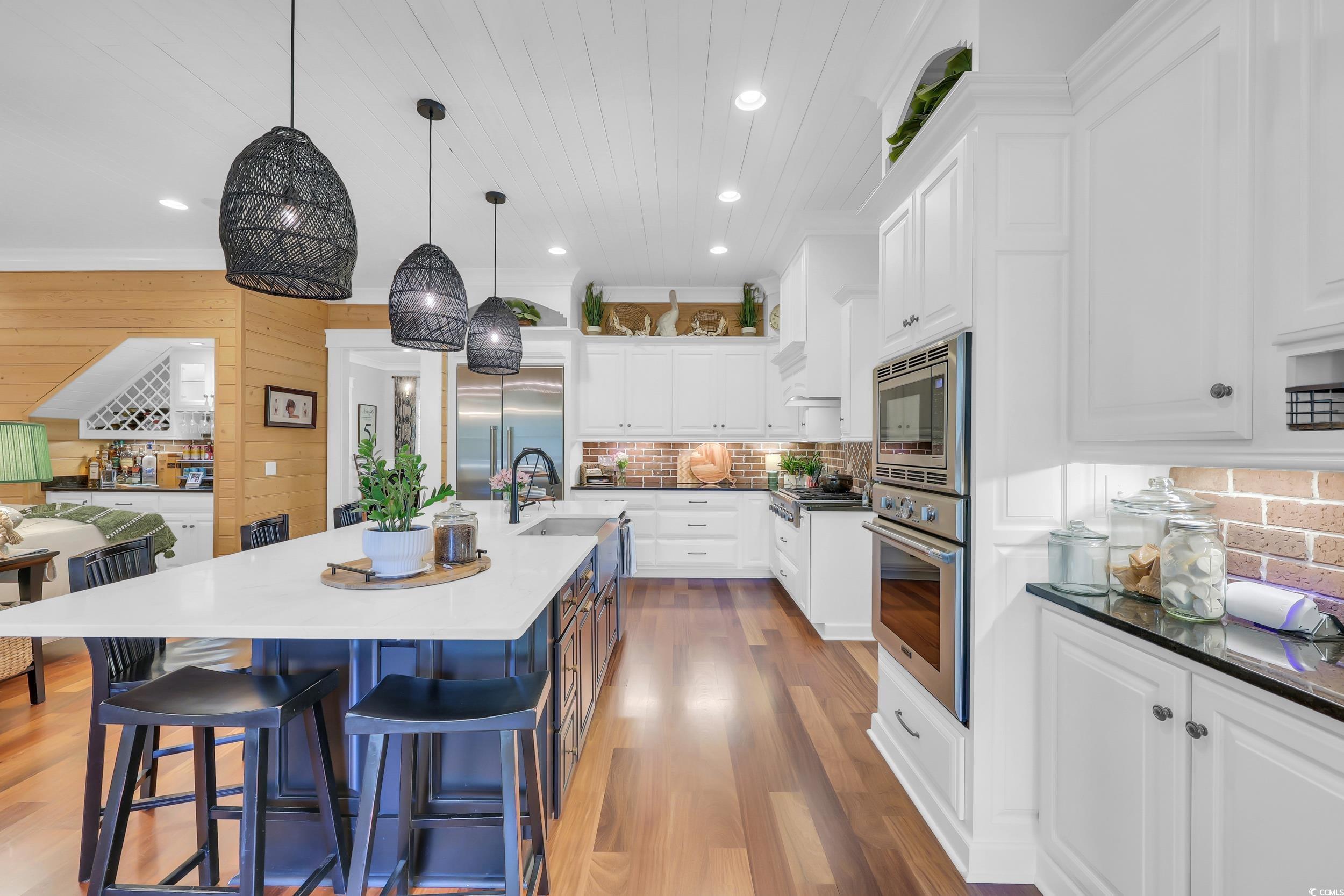118 Old Carriage Loop is a rare find in DeBordieu Colony with a spacious main residence and beautifully appointed guest house. This all-brick home is on one of the largest homesites in the community at nearly one acre. It is a private lot backing up to Hobcaw Barony and has plenty of room to add a pool beside the existing guest house. Exemplifying both quality and charm, the interior walls of the main living area are wood paneling. Entertain family and friends in the gourmet kitchen which has custom cabinets, Thermador appliances and is open to the family room. Off of the kitchen is a large butler’s pantry for food prep, small appliances and additional cabinet space for storage. Additionally, there is a formal dining room, bonus room and upstairs loft as no attention to detail was spared in the design! The spacious three bedrooms upstairs offer their own ensuite bathrooms and there is plenty of attic space and closets for storage. The cozy back porch has plenty of room for extra dinner seating or relaxing with a warm cup of coffee while enjoying the private back yard and setting. Gather around the back porch fireplace to watch football or roast marshmallows with the kids. The guest house is roughly 1600 htd square feet and perfect for friends, family or multi-generational living. It has a full kitchen, living room, bedroom, loft, two full bathrooms, laundry room and a workout room. DeBordieu Colony offers a unique opportunity to live in an oceanfront community with access to creeks for fishing or enjoying a day at North Inlet. Join the private community club and you will have access to the golf course, tennis and fitness facility, beachfront tiki bar and onsite gourmet dining at the Beach Club. Just minutes to historic Georgetown, Pawleys Island or the Waccamaw River or a 60 mile drive to Charleston, SC. You can live like you are on vacation every day!