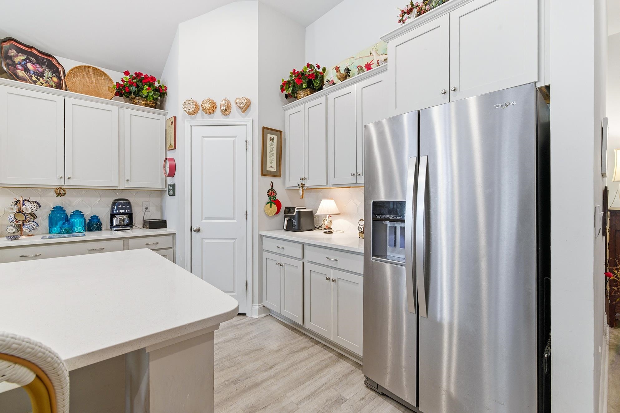 Welcome home to a charming rocking chair front porch that warmly greets your guests and sets the tone for relaxed Southern living. Step inside to a spacious foyer that flows seamlessly into the open-concept main living area. Just off the entry, you’ll find a convenient mudroom and utility room with direct access to the oversized garage. The heart of the home features a bright and airy great room with expansive sliding glass doors that extend your living space onto a large, screened porch — truly making outdoor living part of your everyday lifestyle. The porch includes two tropical ceiling fans, perfect for enjoying Coastal Carolina breezes year-round. The kitchen is designed for both everyday living and entertaining, offering: Stainless steel appliances Gas range and oven Built-in microwave Deep stainless-steel sink with garbage disposal Expansive counter space Oversized island with eat-in bar seating Walk-in pantry Abundant cabinet storage The adjoining dining area provides a welcoming space for gatherings with family and friends. Comfort is ensured year-round with: Natural gas heating system Tankless water heater for quick, efficient hot water Energy-efficient electric central air conditioning This thoughtfully designed home offers 4 bedrooms, including a spacious owner’s suite overlooking the tranquil pond. The primary bedroom features trey ceilings, a tropical ceiling fan, and two walk-in closets for ample storage. The primary bathroom includes: Large walk-in shower Double vanity sinks Extra-large linen closet Two guest bedrooms are tucked into their own hallway, providing added privacy and convenient access to a beautifully appointed full bath with a deep soaking tub and shower combination. The fourth bedroom offers flexibility and can serve as a home office or additional guest room, complete with a large closet. Outdoor Living The backyard is designed for beauty and relaxation: Decorative black aluminum fencing Large brick-tiled patio Professionally landscaped pond views (maintained by HOA) Wooded backdrop providing natural privacy Frequent visits from tropical birds and local wildlife Enjoy your morning coffee on the screened porch or unwind on the spacious brick patio while overlooking the serene pond setting. Additional exterior features include: Irrigation system French drains with added piping for proper yard drainage Disclosure: Some photos may include digital enhancements for marketing purposes, including virtual removal of furnishings and personal items.