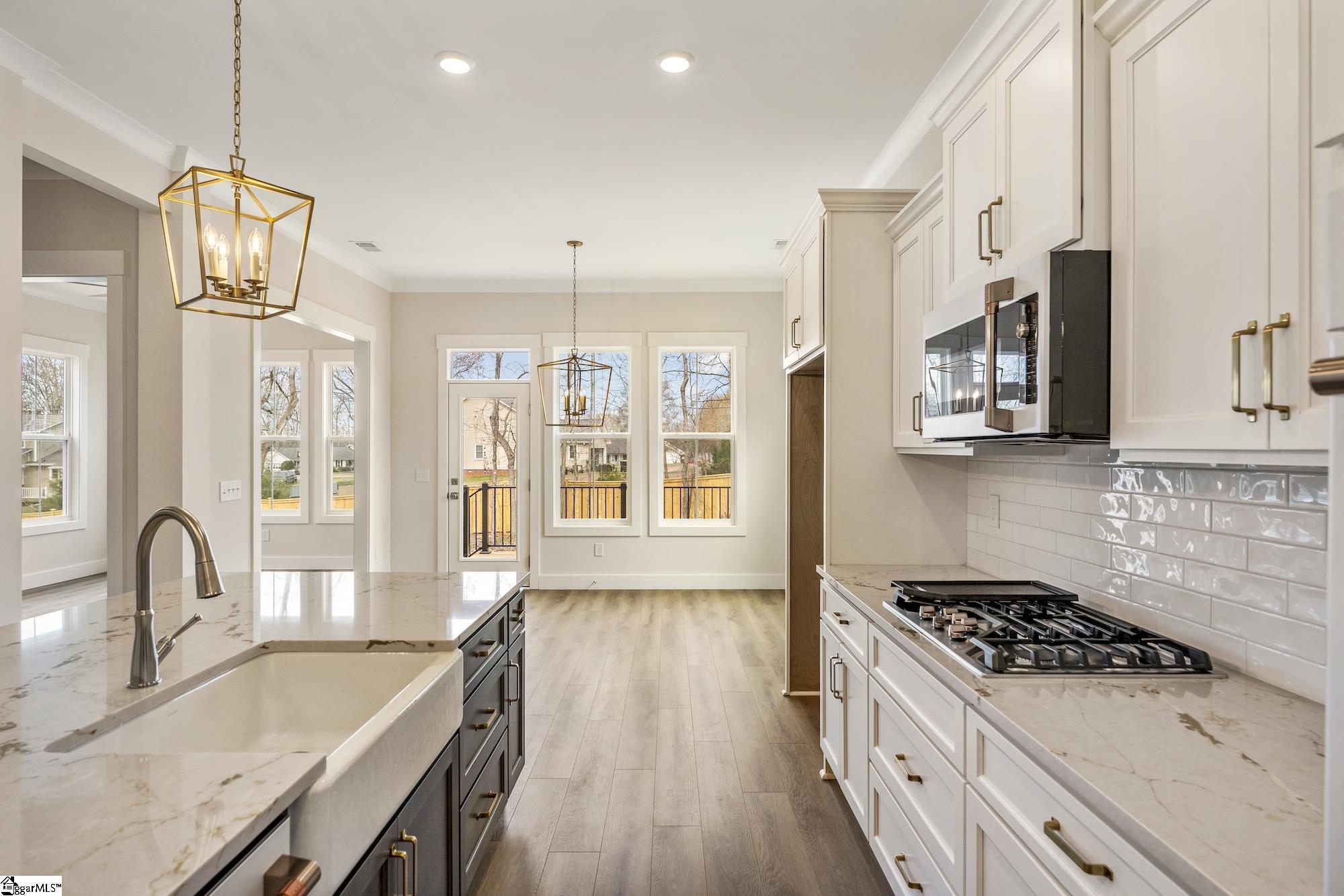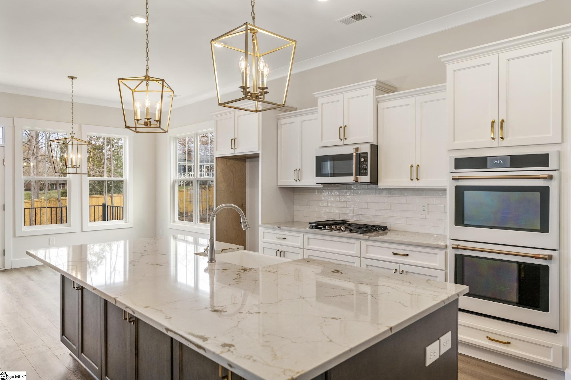 The Cushing is a beautiful two-story home with a two-car side entry garage. This specific Cushing also features an additional attached third-car garage! This home has a formal dining room with coffered ceilings and judge panels, and a modern open style layout with upgraded solid surface countertops and stainless steel appliances in a gas-range gourmet kitchen. There is a guest suite on the main floor for extra convenience too! The sunroom adds additional space for fun activities like yoga, reading, or relaxing while soaking up vitamin D! Upstairs, you will find the primary bedroom with two walk-in closets & a balcony! The primary bathroom is also custom with a free-standing tub and separate tile shower. To top everything off, there is a large bonus room upstairs for entertainment!