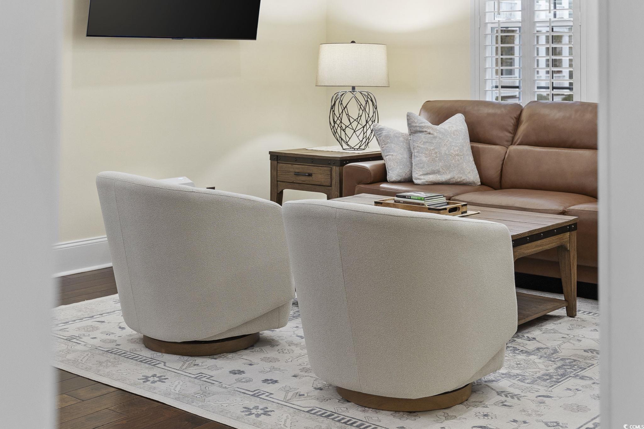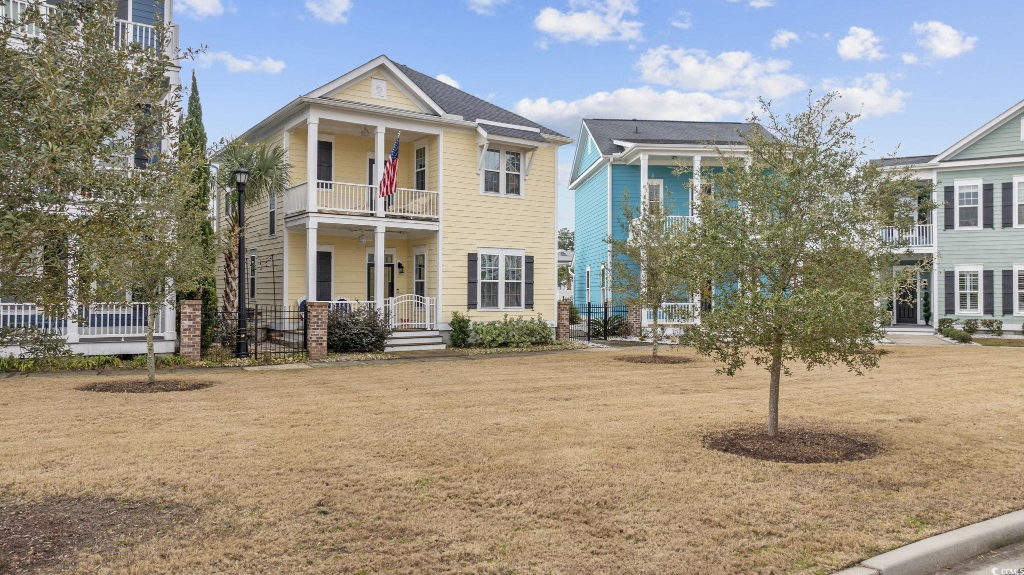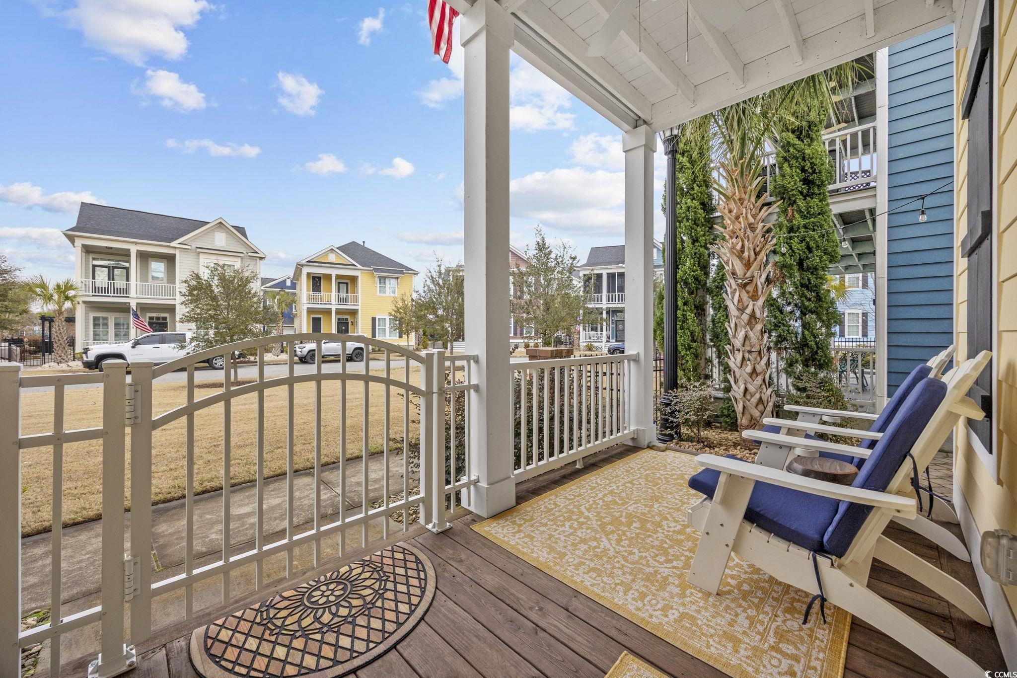 Welcome to Sweetgrass Square. A unique Charleston style community within minutes of downtown Market Common. As you walk the large sidewalks you see homes with the historic colors of Charleston, porches, and cozy courtyard areas. Downtown you will find shops, restaurants, entertainment, and service businesses. Grocery stores and medical facilities are close as well. Sweetgrass has an amazing amenities center with large pool, kiddie pool, lazy river, hot tubs, and more. Let's not forget the Atlantic Ocean and beaches; the Myrtle Beach State Park is less than a mile away. Strolling up to 1188 Peterson St you are greeted by a welcoming front porch; large enough for a few rocking chairs. As you enter the home you will see an open living area. The spacious kitchen has granite countertops, stainless steel appliances, and a sizeable pantry. It is easy to entertain here because of the open space between the kitchen, dining, and living room. There is a half bath on the main floor; perfect for your guest. The comforting master bedroom is on the main floor with ensuite bathroom and walk-in closet. Moving to the second floor you will find a large flex area that could be used for many things (living space, bedroom, office, etc). There are 2 spare bedrooms with shared full bath upstairs as well. Your guest will have use of a balcony area on the second floor as well; perfect for afternoon tea or cocktails. The owners have recently updated the upstairs flooring to include all hardwood in living area and bedrooms. They had elegant plantation shutters installed with window tinting to provide heating and cooling efficiency. New paint throughout the home as well. If you enjoy time outside this home has a large courtyard area ideal for grilling, sitting around the fire pit, or relaxing in the sun. The home is equipped with a 2 car attached garage, but also has a parking pad big enough for a couple cars. There is a pull down screen in the garage allowing for cool afternoon breezes. This home is ready for a new owner; whether it be a primary residence, second home, or investment opportunity. Ask about VA loan assumption. Current rate is 5.375%