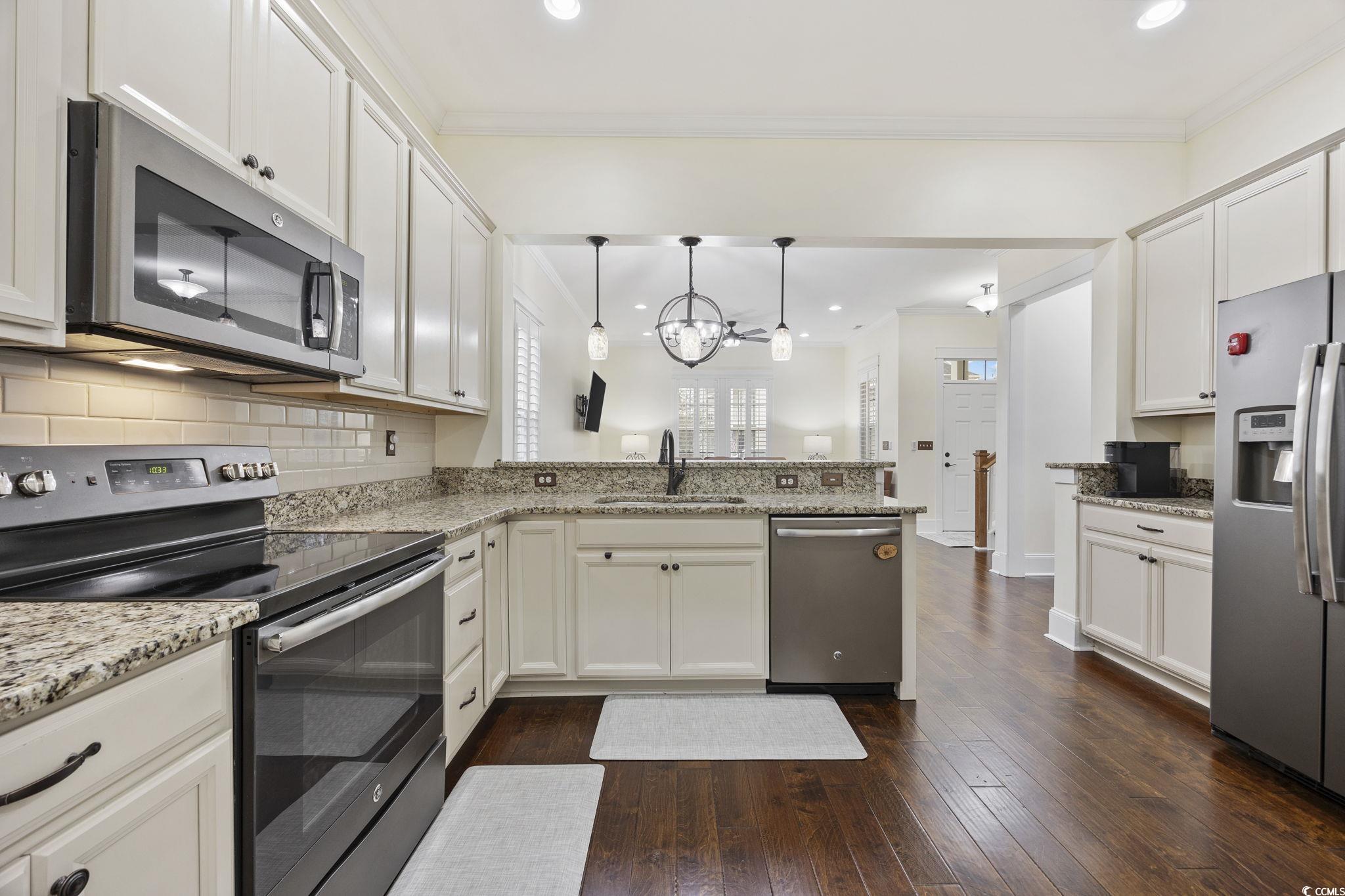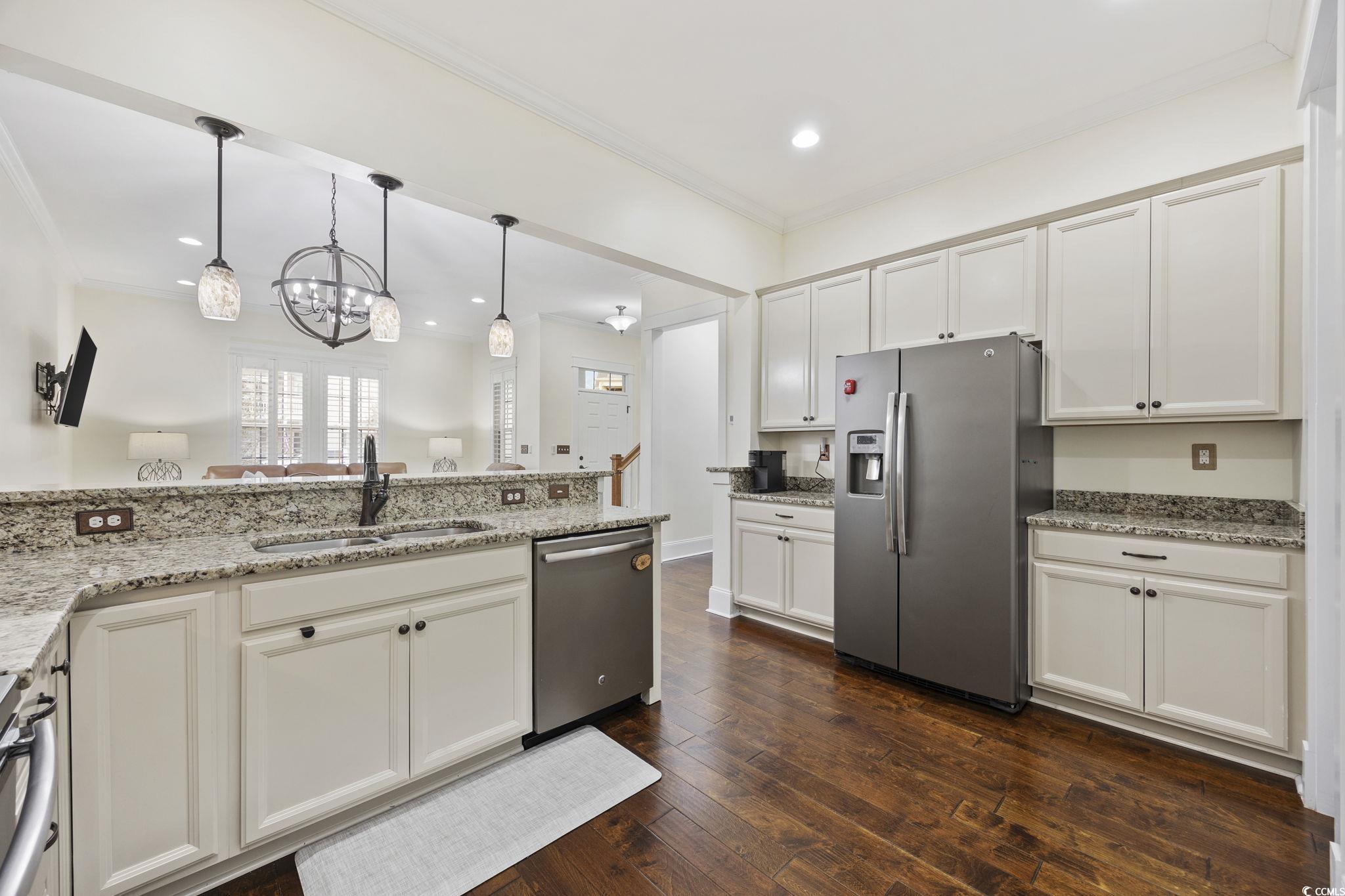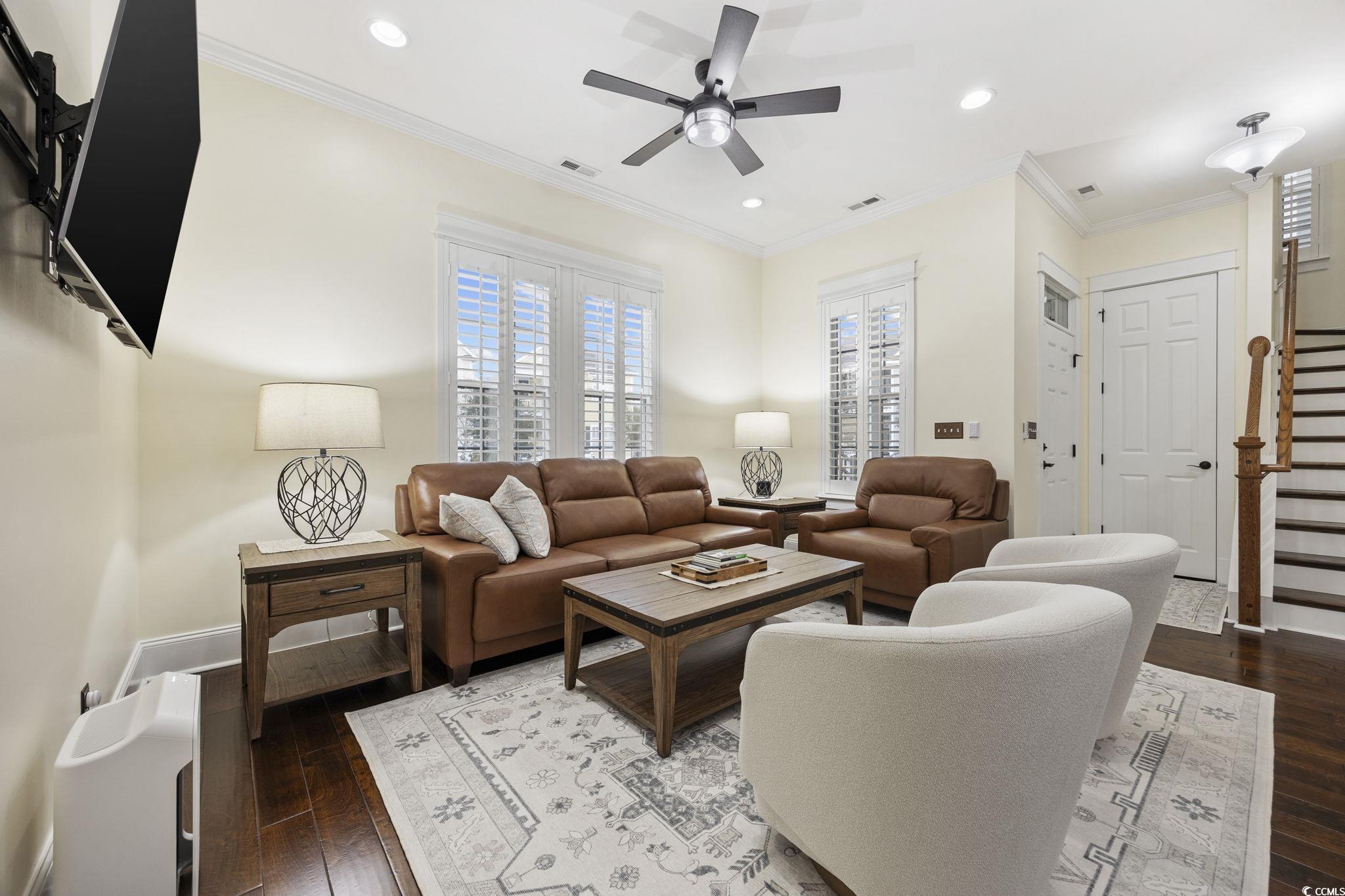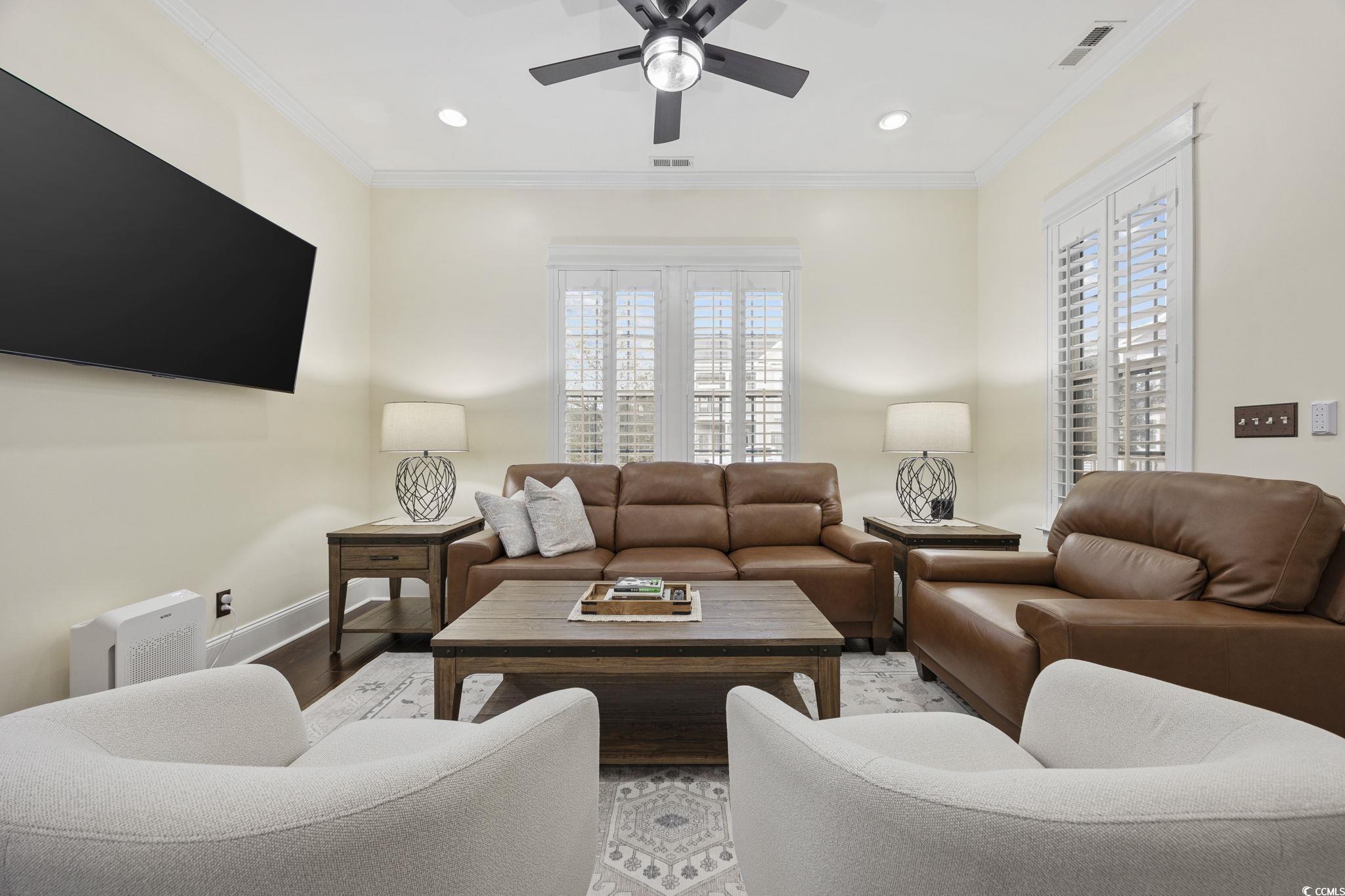 Welcome to Sweetgrass Square. A unique Charleston style community within minutes of downtown Market Common. As you walk the large sidewalks you see homes with the historic colors of Charleston, porches, and cozy courtyard areas. Downtown you will find shops, restaurants, entertainment, and service businesses. Grocery stores and medical facilities are close as well. Sweetgrass has an amazing amenities center with large pool, kiddie pool, lazy river, hot tubs, and more. Let's not forget the Atlantic Ocean and beaches; the Myrtle Beach State Park is less than a mile away. Strolling up to 1188 Peterson St you are greeted by a welcoming front porch; large enough for a few rocking chairs. As you enter the home you will see an open living area. The spacious kitchen has granite countertops, stainless steel appliances, and a sizeable pantry. It is easy to entertain here because of the open space between the kitchen, dining, and living room. There is a half bath on the main floor; perfect for your guest. The comforting master bedroom is on the main floor with ensuite bathroom and walk-in closet. Moving to the second floor you will find a large flex area that could be used for many things (living space, bedroom, office, etc). There are 2 spare bedrooms with shared full bath upstairs as well. Your guest will have use of a balcony area on the second floor as well; perfect for afternoon tea or cocktails. The owners have recently updated the upstairs flooring to include all hardwood in living area and bedrooms. They had elegant plantation shutters installed with window tinting to provide heating and cooling efficiency. New paint throughout the home as well. If you enjoy time outside this home has a large courtyard area ideal for grilling, sitting around the fire pit, or relaxing in the sun. The home is equipped with a 2 car attached garage, but also has a parking pad big enough for a couple cars. There is a pull down screen in the garage allowing for cool afternoon breezes. This home is ready for a new owner; whether it be a primary residence, second home, or investment opportunity. Ask about VA loan assumption. Current rate is 5.375%