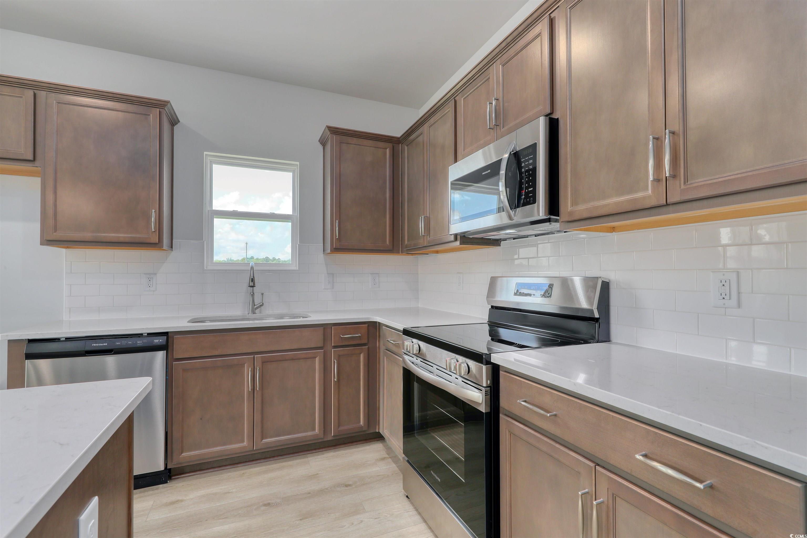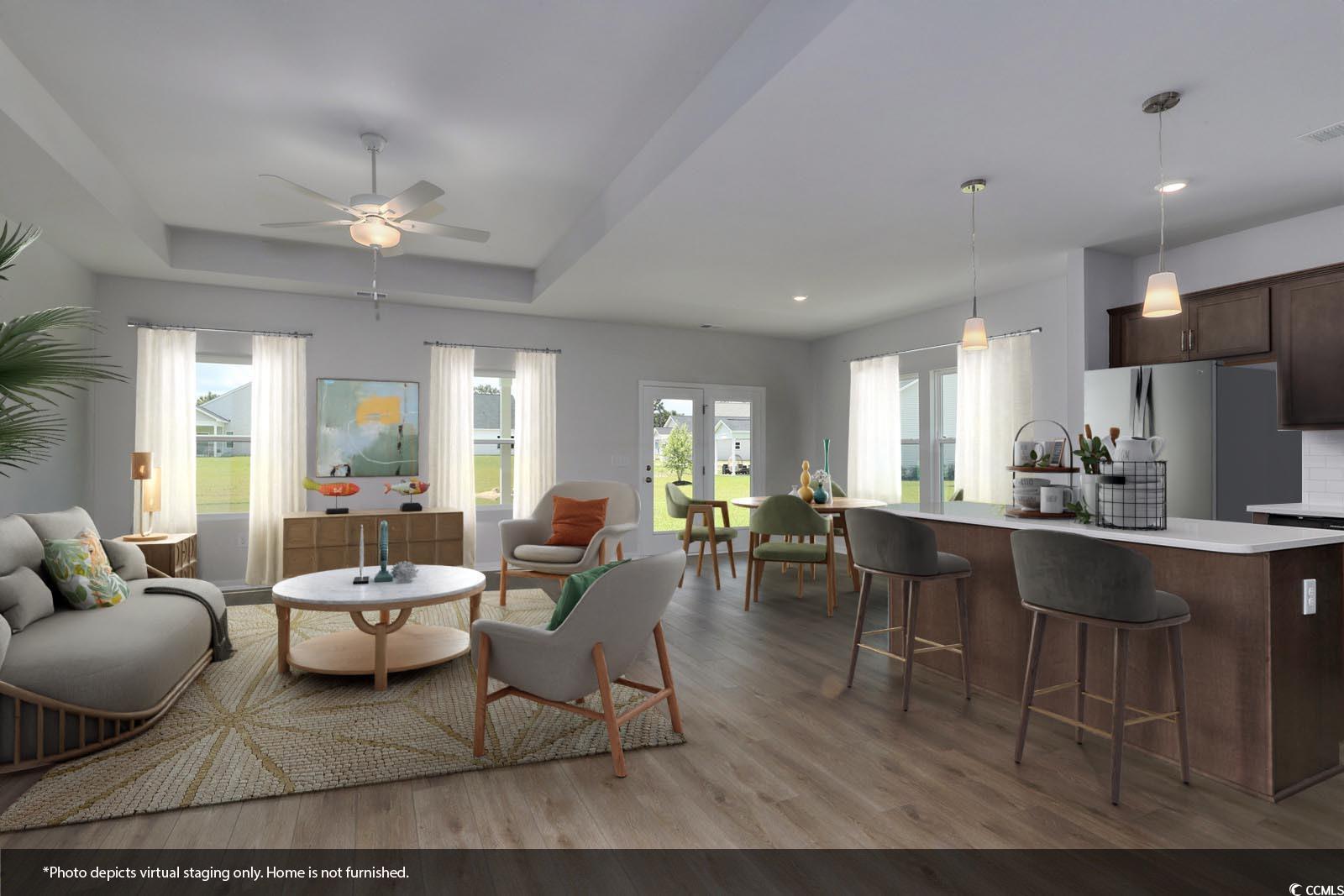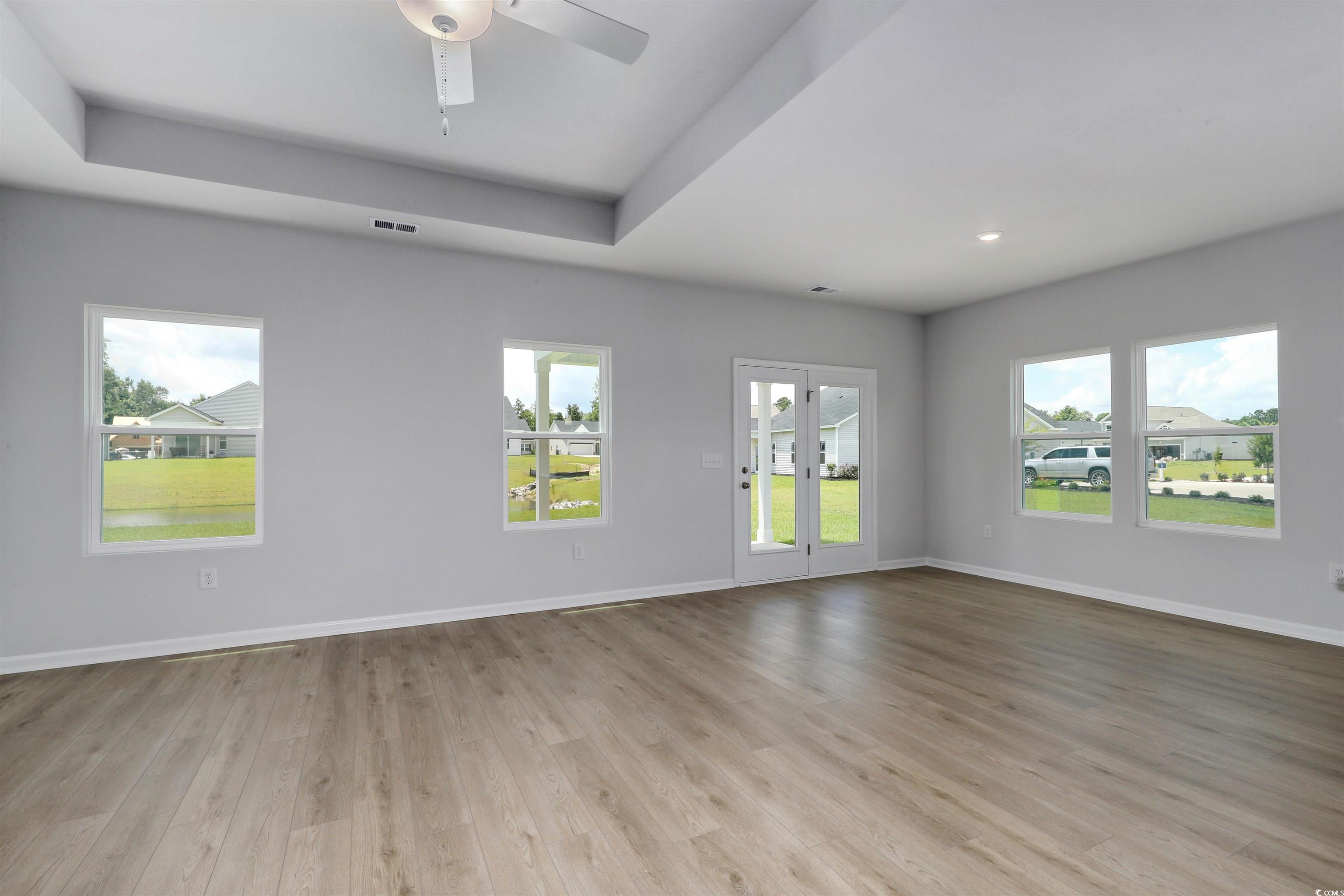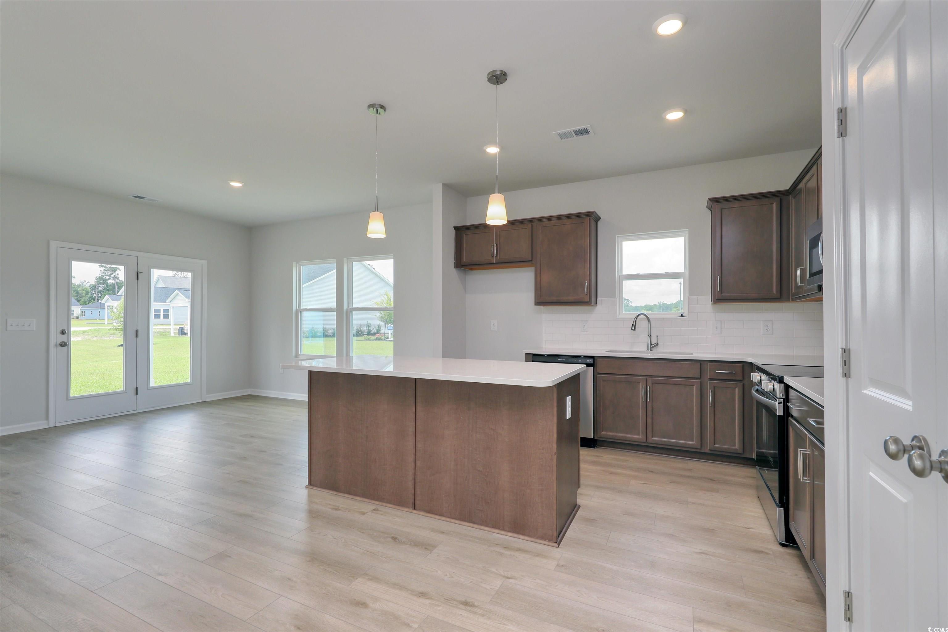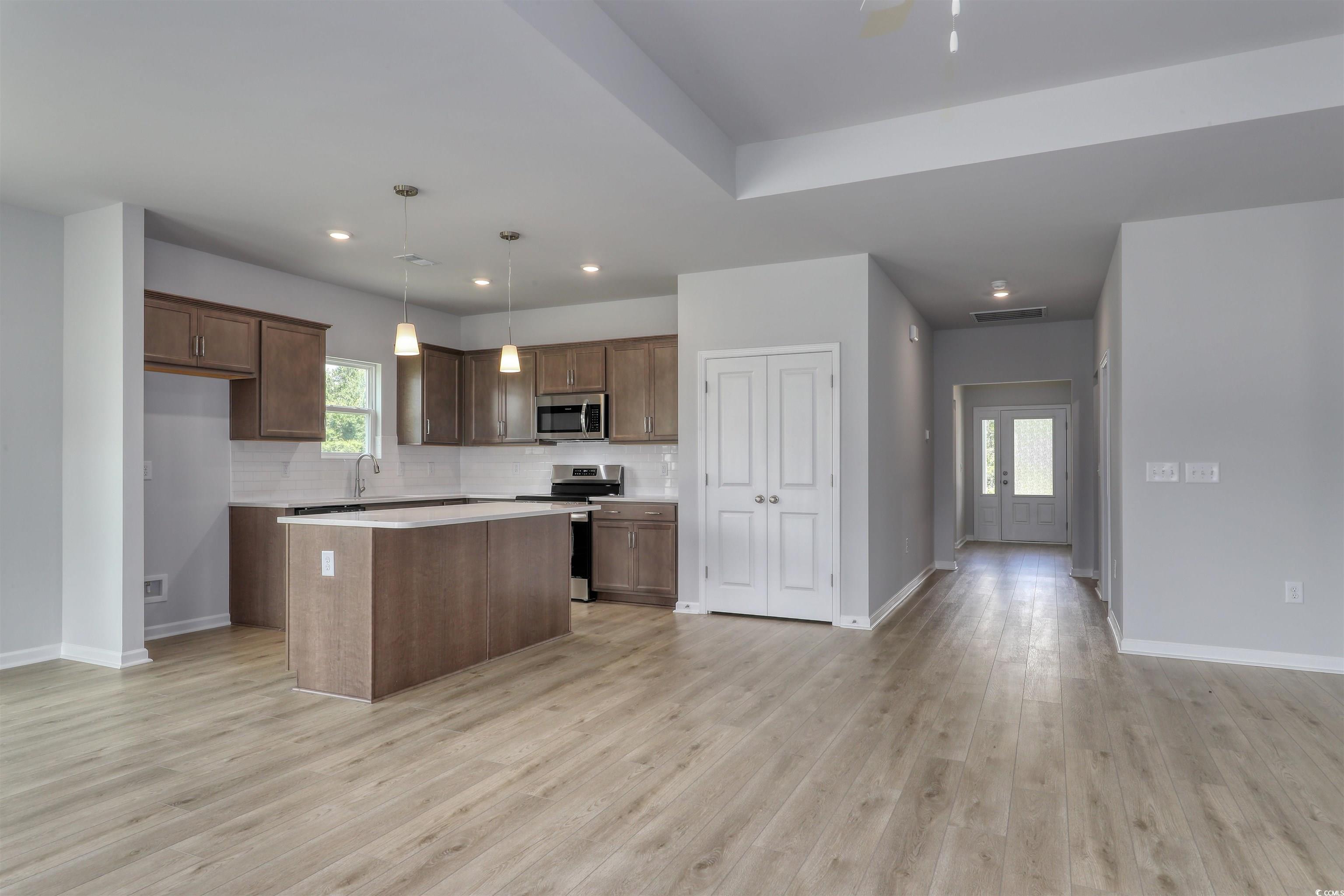 Beautifully Designed 3BR/2BA Home with Open Layout and Pond Views Welcome to this thoughtfully designed 3-bedroom, 2-bathroom home featuring an open, flowing floor plan that combines comfort and style. The spacious living area boasts a boxed ceiling and connects seamlessly to the dining space and modern kitchen—ideal for everyday living and entertaining. The kitchen is equipped with a working island, quartz countertops, and stainless steel appliances, offering both functionality and style. The primary bedroom serves as a private retreat with pond views, a large walk-in closet, and a luxurious en-suite bathroom. Two additional bedrooms provide ample space for family, guests, or a home office, with easy access to a second full bathroom. Enjoy serene outdoor living on the covered back porch, complete with views of a tranquil pond and fountain. Wooded wetlands across the street enhance the sense of privacy and natural beauty. Additional highlights include: Open-concept living and kitchen area Quartz countertops and stainless steel appliances Boxed ceiling for added architectural interest Covered back porch with water views Convenient location in a peaceful setting Schedule your showing today to experience all this home has to offer!