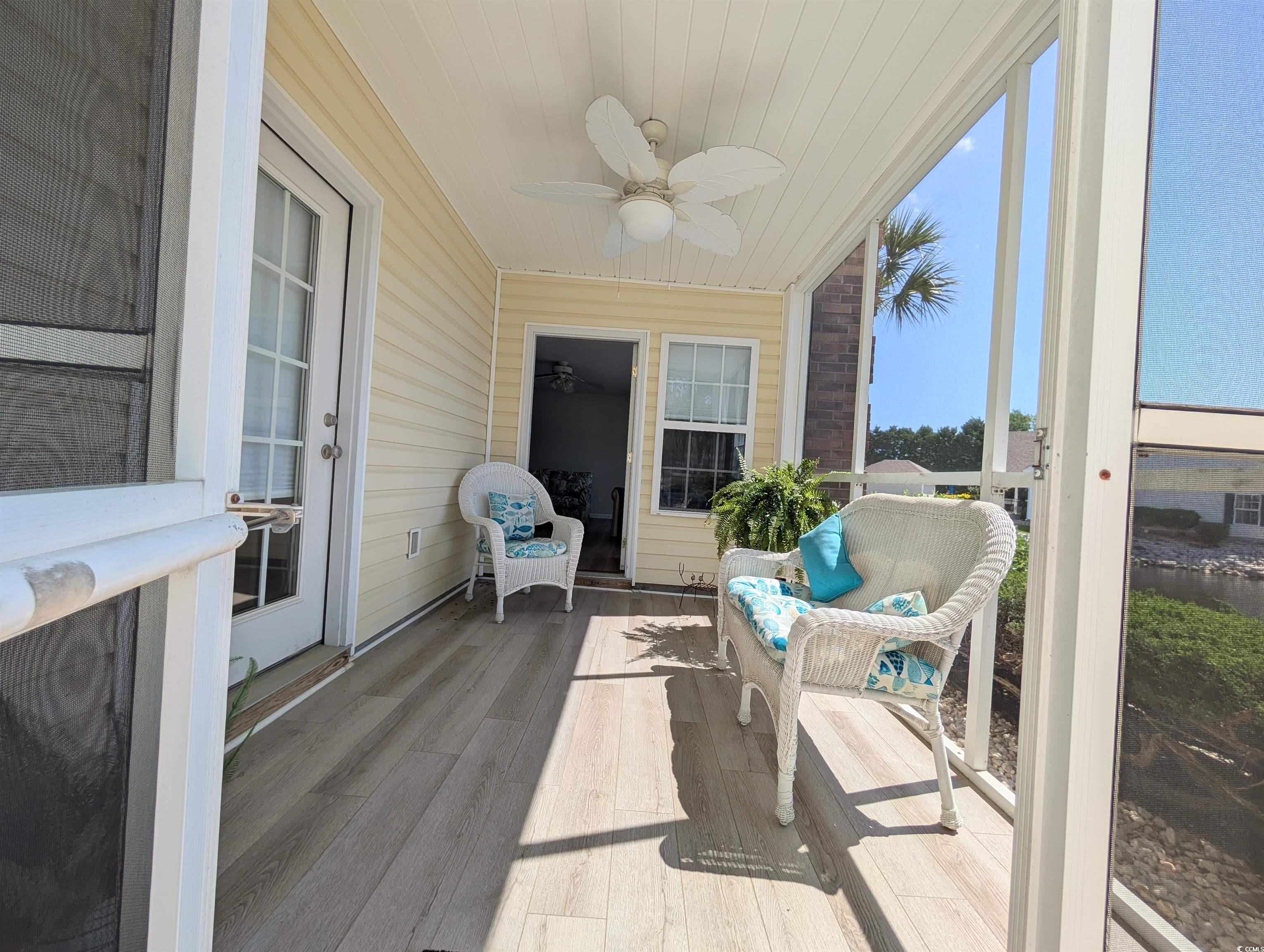 Unit is a first floor end unit filled with natural lighting. Has been freshly painted and has new flooring throughout, new hot water heater, new cellular shades throughout, primary bedroom shades are room darkening. Kitchen has under cabinet lighting and shelfgenie drawers. Location is close to shopping, hospital, restaurants, beach, golf, Murrells Inlet Marshwalk. Enjoy the awesome view from all the bedrooms, Living room and screened back porch. New ceiling fan on porch, dining area and kitchen, hallway and primary bathroom have new light fixtures. Come see this gem before it's gone! Have your agent verify with HOA of monthly fee and what that includes. All measurements should be verified by yourself or your agent.