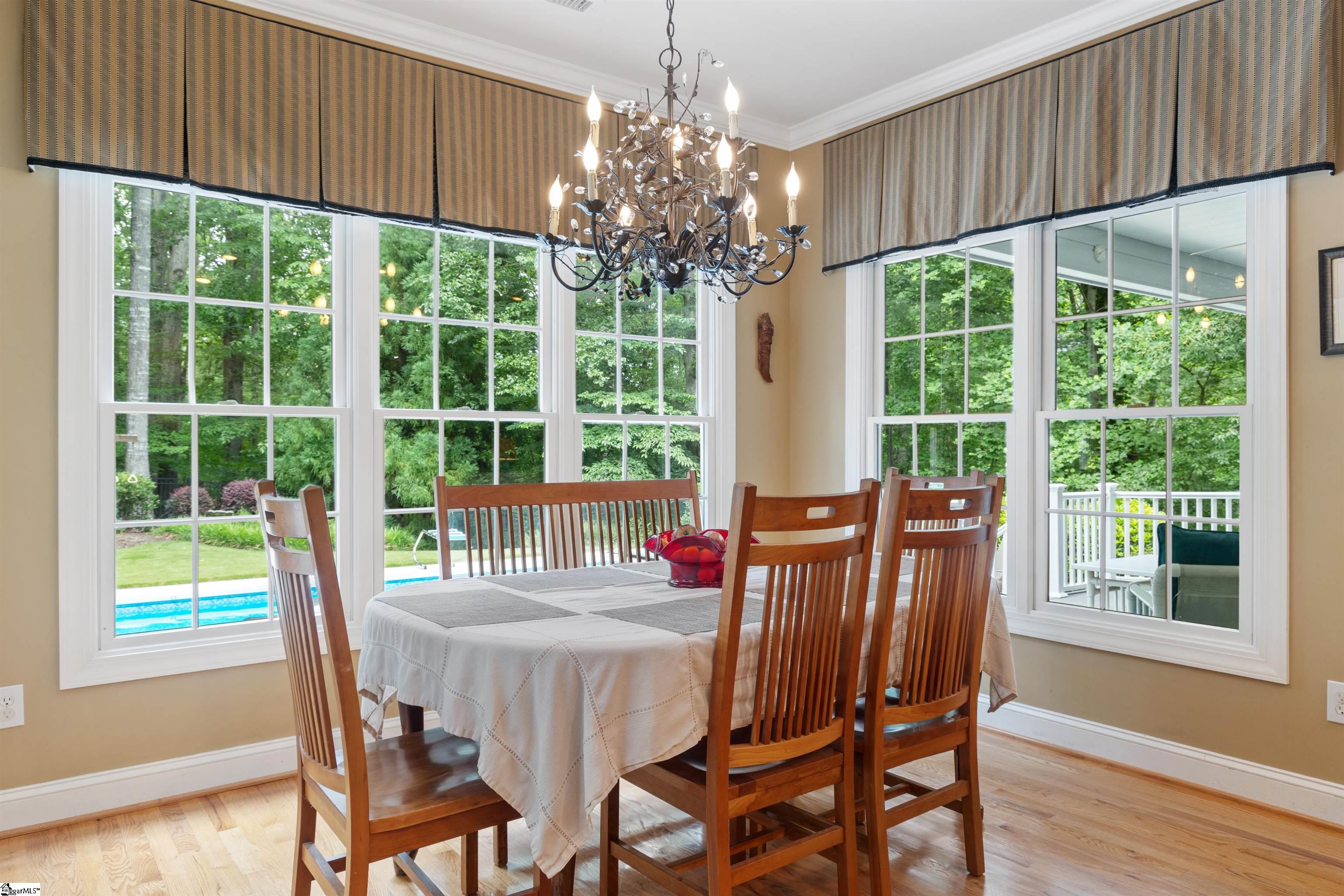 From the moment you drive down the long driveway surrounded by tall trees and greenery, it's almost as if you've left the neighborhood entirely and entered your own private forest oasis... 119 Oak Crest Circle boasts Southern elegance and hints of old-world charm surrounded by lush green woods and well-maintained landscaping. The long drive runs parallel to a separate lot to the left-- an additional 0.72 acres are included in the sale of the home--which ensures the feeling of privacy is kept year round. The main property with the house is 1.03 acres, for a total of 1.75 acres altogether. The driveway ends in a circular loop with a manicured lawn in the center and an extra parking pad by the garage at the side of the house. Through the front entrance beneath the covered porch you will find a classical foyer, with mirroring formal rooms on either side. While the left room may function as the traditional dining room with a galley connection to the kitchen, this home has enough space that options are endless. Through the foyer, the space opens to the den and a magnificent view of the poolside oasis. Left of the den sits the spacious eat-in kitchen with a walk-in pantry in the galley. The kitchen also leads to a mudroom, laundry room with half bath, and small flex space beyond. The den itself features impressive built-in shelving and cabinets with fine wood detailing and a gas log fireplace. To the right side of the house off the den is a half bath, stairs to the basement level, and 2 main-level bedrooms with ensuite baths. The primary bedroom overlooks the backyard and has a walkout sliding door. Double vanities sit inside a separate hallway within the primary bedroom, with extensive closet space, a bathtub, and a standing shower. The elegant stairway in the hall outside the main level bedrooms leads to the basement but fits so seamlessly into the home's design that it lacks the typical "basement" entry feeling. Downstairs you will find another bedroom with ensuite bath immediately to the right. To the left is a massive open recreational area complete with mini-bar, access to yet another full bathroom, and even more flexible finished space and ample storage options. The fourth bedroom is currently used as a lower level office and has a sizable walk-in closet. Beside the bedroom is a workshop area with an exterior walkout. The property also features an 10kvh solar system with 12 kVA battery storage. Please note that the cleaning pump at the pool is disconnected and not used by sellers--they use a pool robot for cleaning. The beautiful home in the Stillwater subdivision is very convenient to amenities such as gas, groceries, lake access, and only a short drive to Clemson. Proof of funds or preapproval must accompany all offers. All numeric representations are estimates and are not guaranteed. Have the buyer take their own measurements if exact measurements are needed. Agents and buyers, please confirm the specifics of interior or exterior home features with a home inspector if need be.