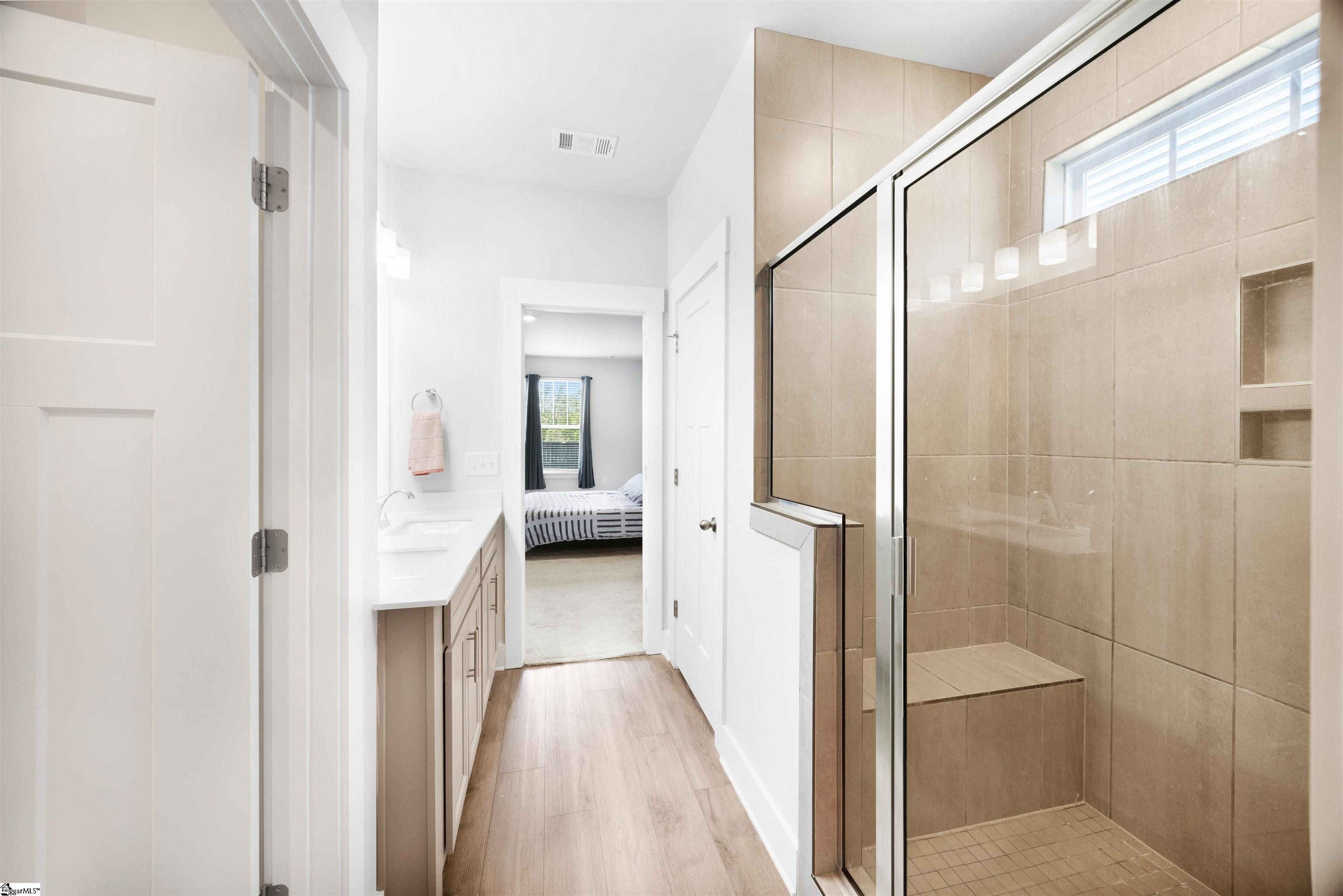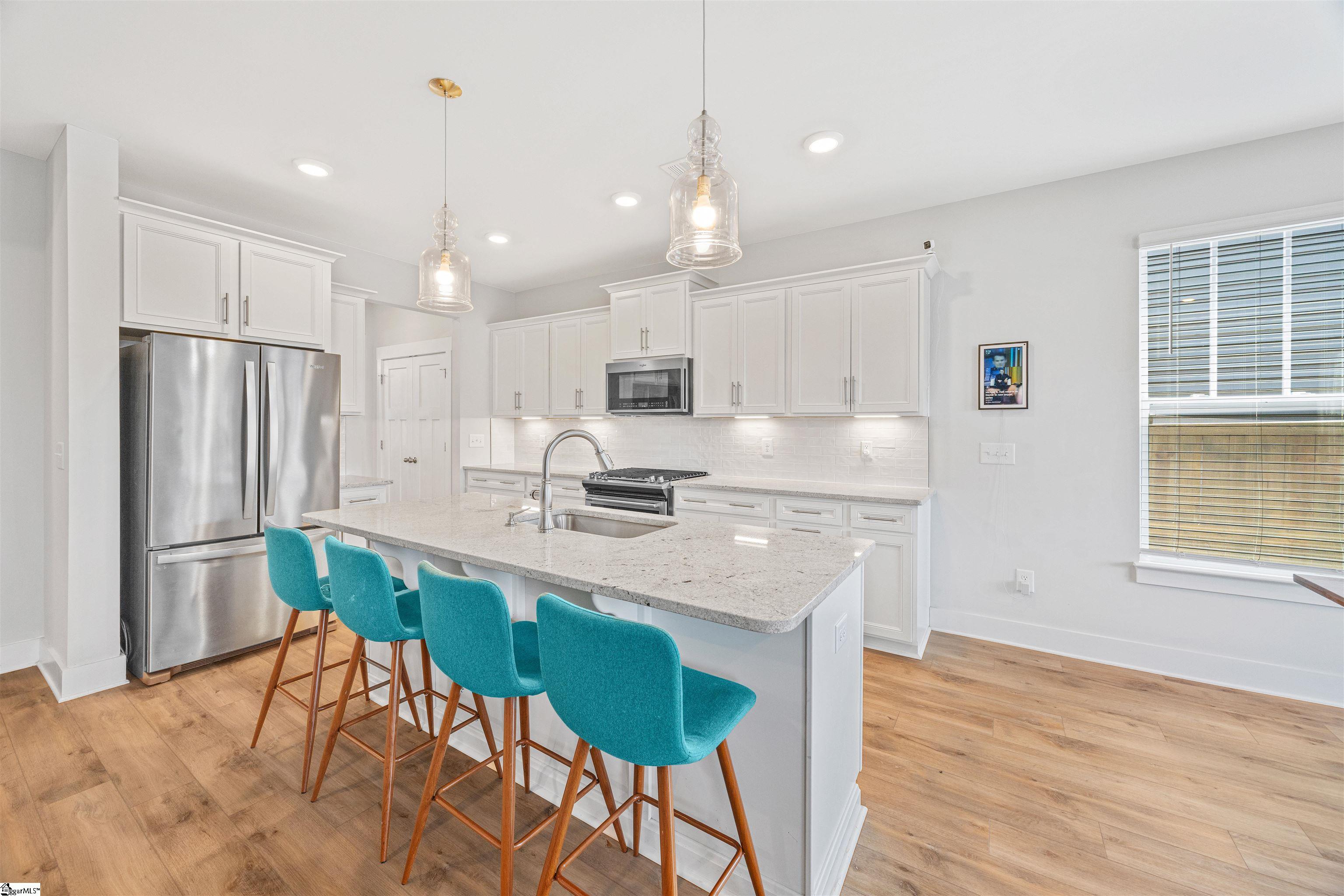Room to Grow, Space to Share—Under $400K! This stylish, move-in ready home is designed for the way families live today—whether you're raising little ones, welcoming grandparents, or simply need space to spread out. The open-concept layout connects a chef’s kitchen, eat-in area, and spacious great room, making everyday life and family gatherings feel effortless. The main-floor primary suite creates a peaceful retreat for parents or grandparents, with laundry just steps away for added convenience. Hosting holidays or Sunday dinners? The formal dining room and butler’s pantry make entertaining a breeze. Upstairs, you’ll find an en suite bedroom—perfect for teens, in-laws, or guests—plus two more bedrooms that share a full bath. A massive flex room with French doors and a closet gives you the flexibility to create a playroom, media lounge, home office, or even a shared study space. Outside, the fenced-in yard is ready for backyard games, pets, or a garden oasis. Located just minutes from Easley shopping and within walking distance to JB Owens Park, this home brings together comfort, convenience, and room for every generation. Some photos have been digitally staged.