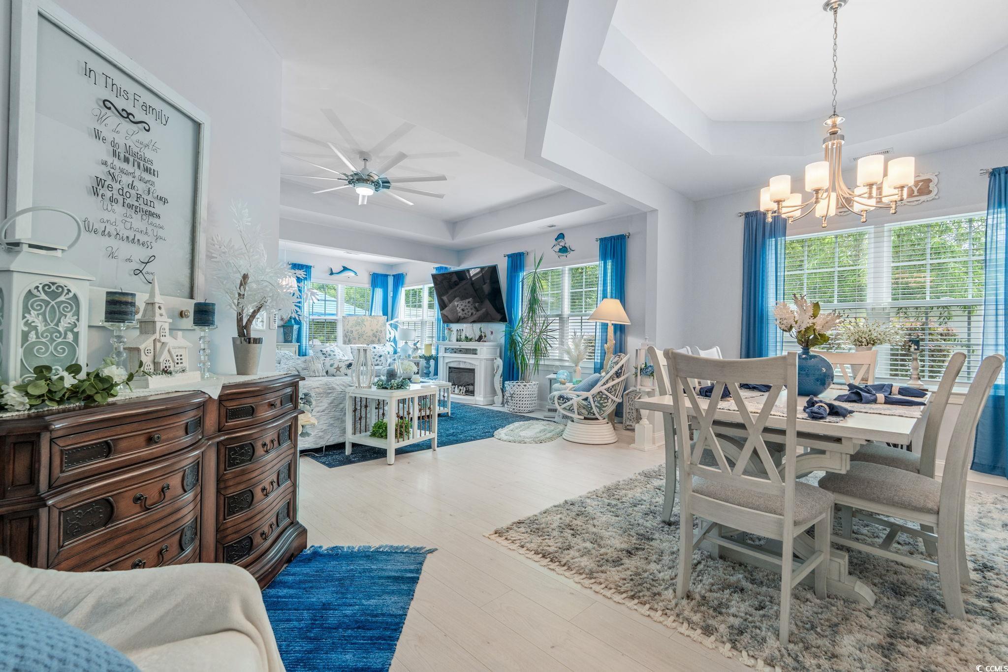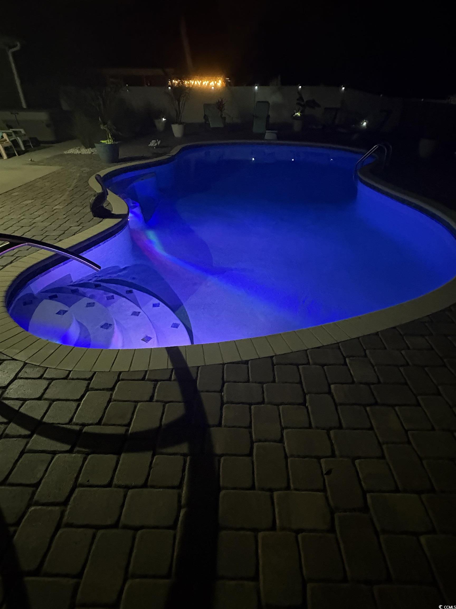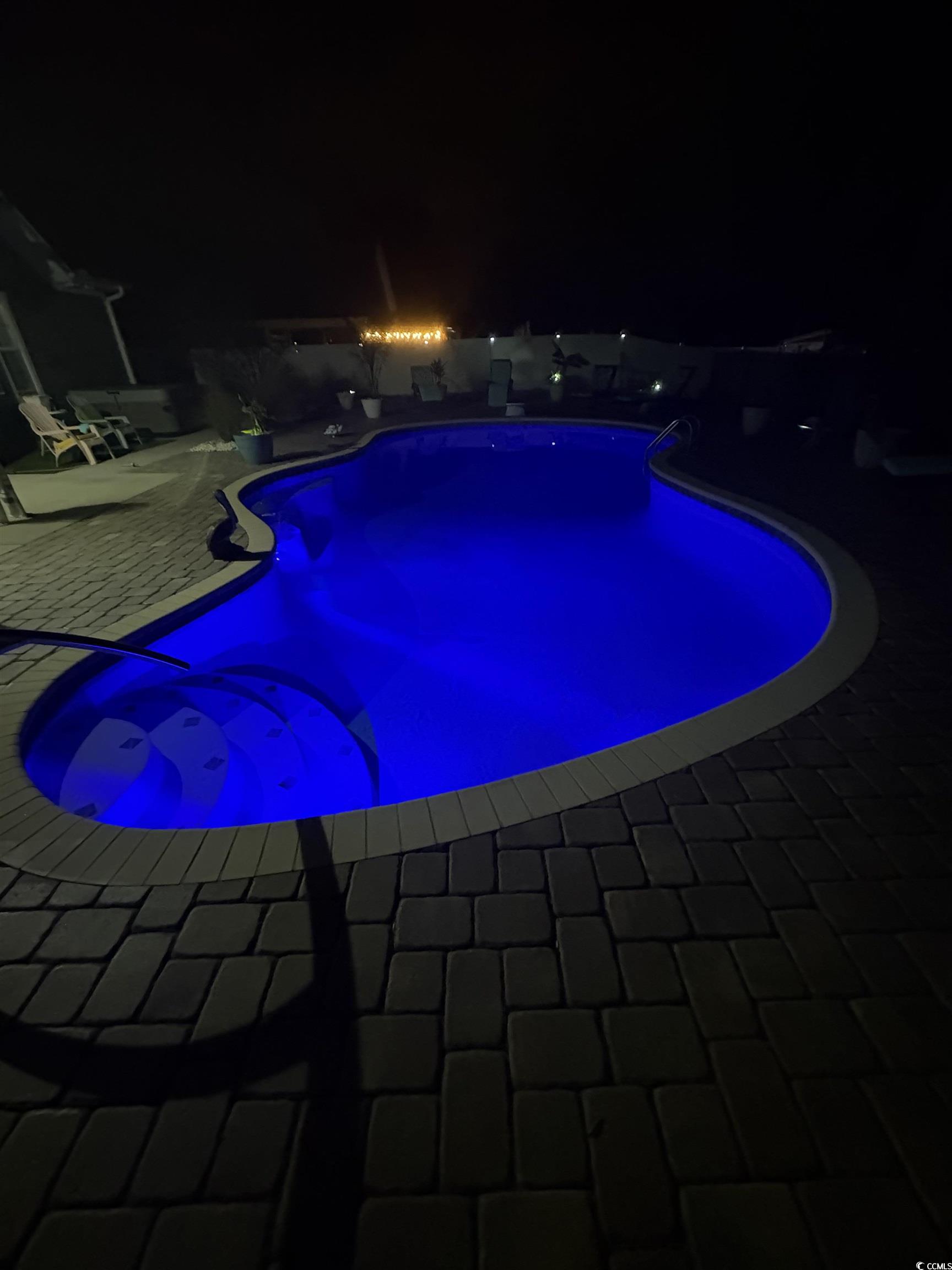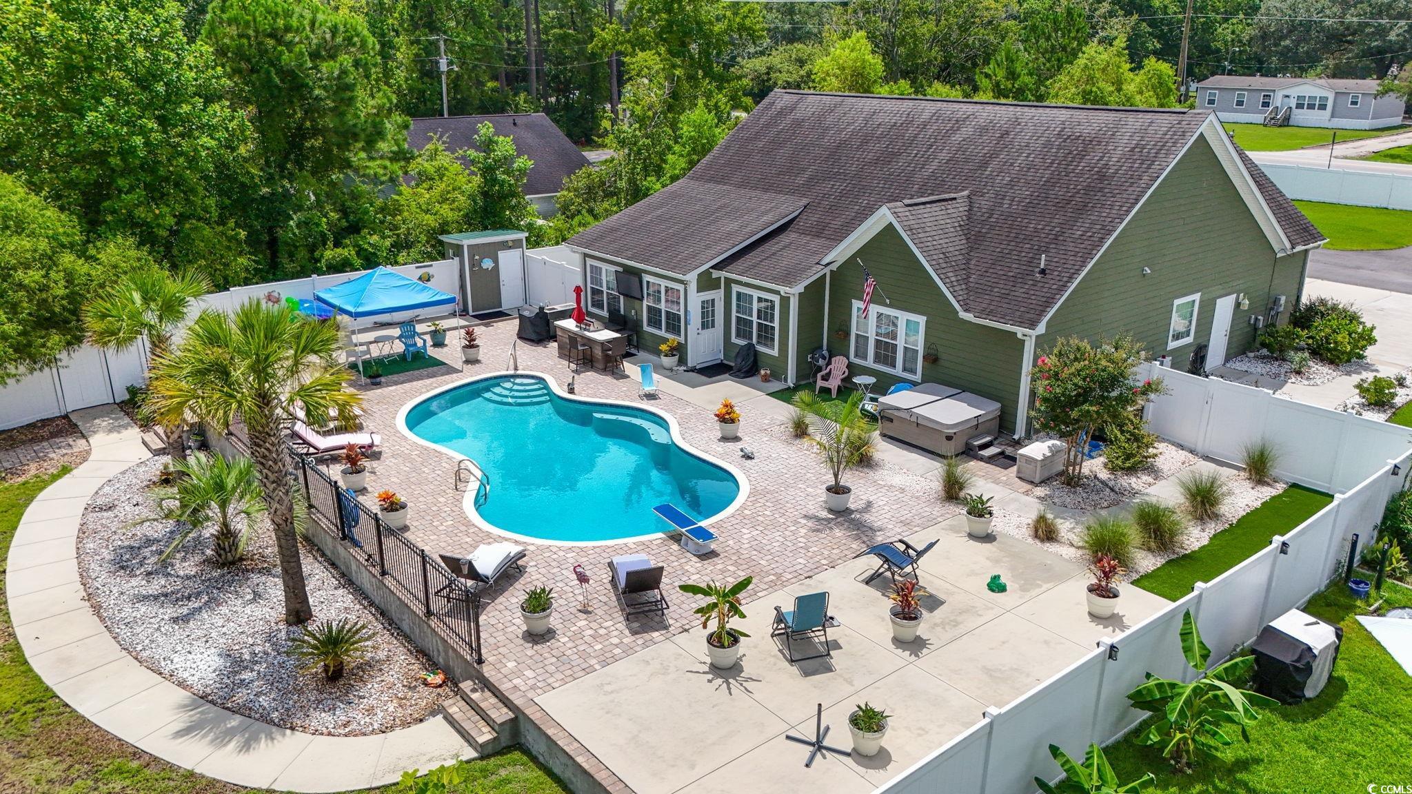 Here is your opportunity to own an incredible home. This meticulously maintained 4-bedroom, 3-bathroom masterpiece features outstanding upgrades made by the owners. Starting with the bedrooms, the spacious first-floor master suite includes a large walk-in closet. The master bath is equipped with a double sink featuring a granite vanity top, a garden tub, and a beautiful walk-in shower. Bedrooms 2 and 3 are also located on the first floor and come with tray ceilings and ceiling fans. Bedroom 4 is situated upstairs and has its own full bath and walk-in closet. Moving on to the gourmet kitchen, you will find all stainless steel appliances, granite countertops, a farmhouse sink, and a lovely laminate floor that extends from the foyer through the kitchen and breakfast nook. The open-concept layout seamlessly connects to the living room, the Carolina Room, and the formal dining room. What makes this home truly special is the outdoor living space. Enjoy your personal paradise with a custom concrete pool that features a heater/chiller, a diving board, and is pre-plumbed for a future slide or fountain. The luxurious outdoor area includes a full kitchen with a built-in grill, refrigerator, sink, cooler, as well as storage and trash bins. Your family and friends will love gathering around the big-screen outdoor TV on game days, and the owner has built an outdoor restroom with shower near the pool. The large beautiful backyard is complete with palm trees and irrigation. The nearly 1 acre lot has enough space to park your RV and Boat and the owner has installed an outdoor building that is 21' x 12' that matches the house. This home is the definition of a Must See. Don't let this one slip through your fingers, schedule your showing today.