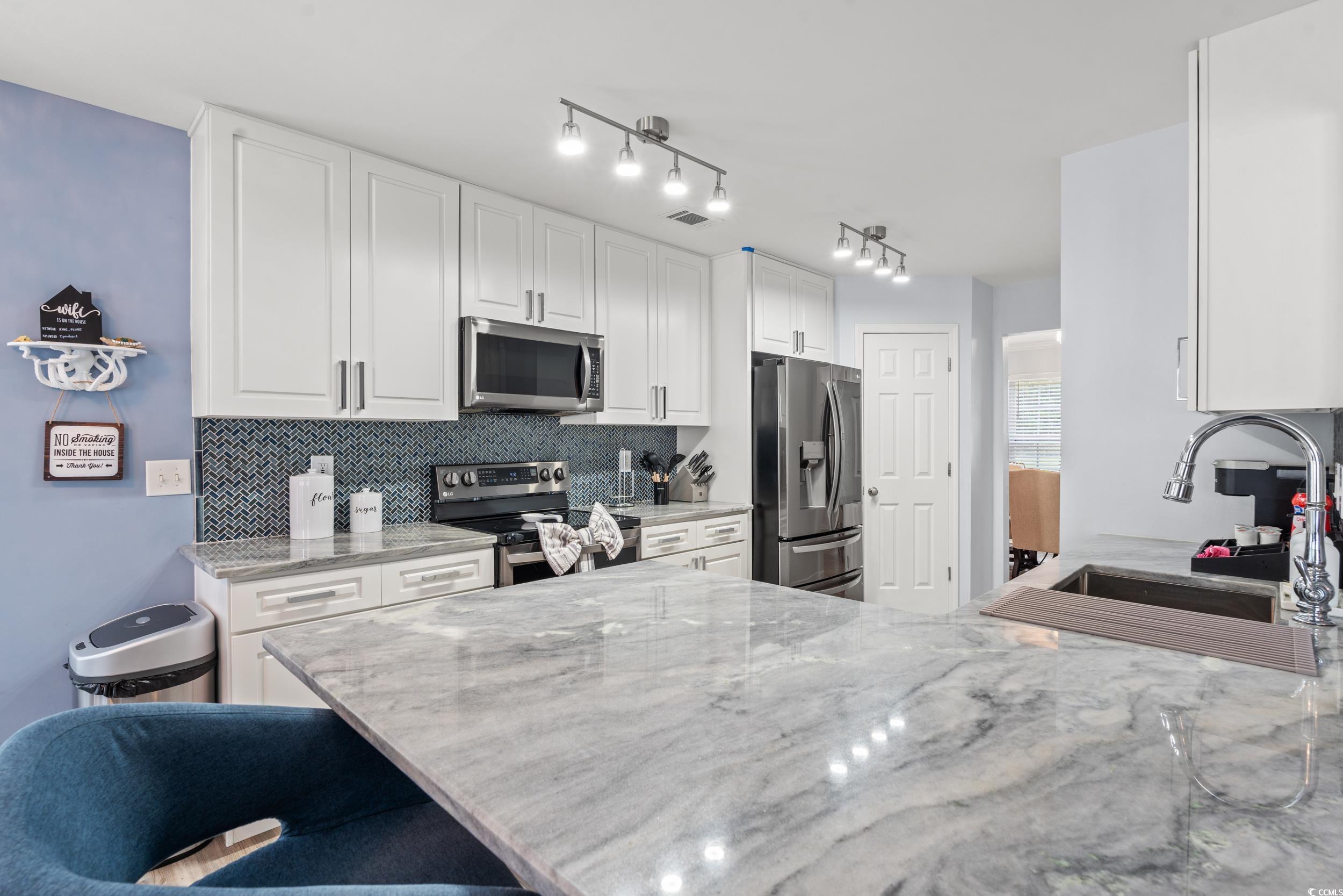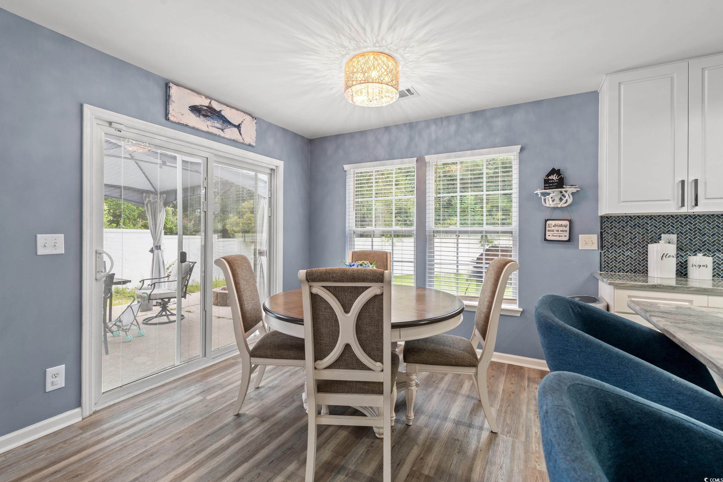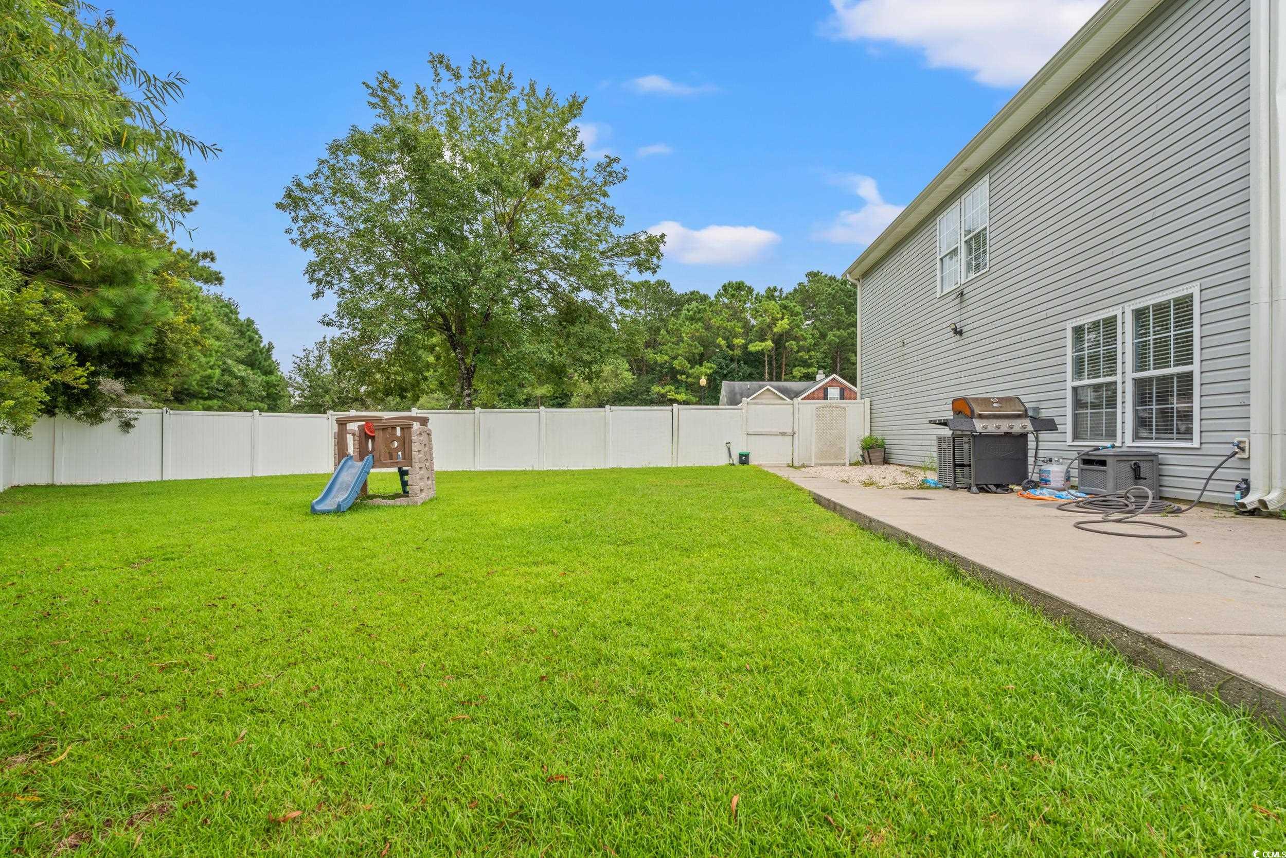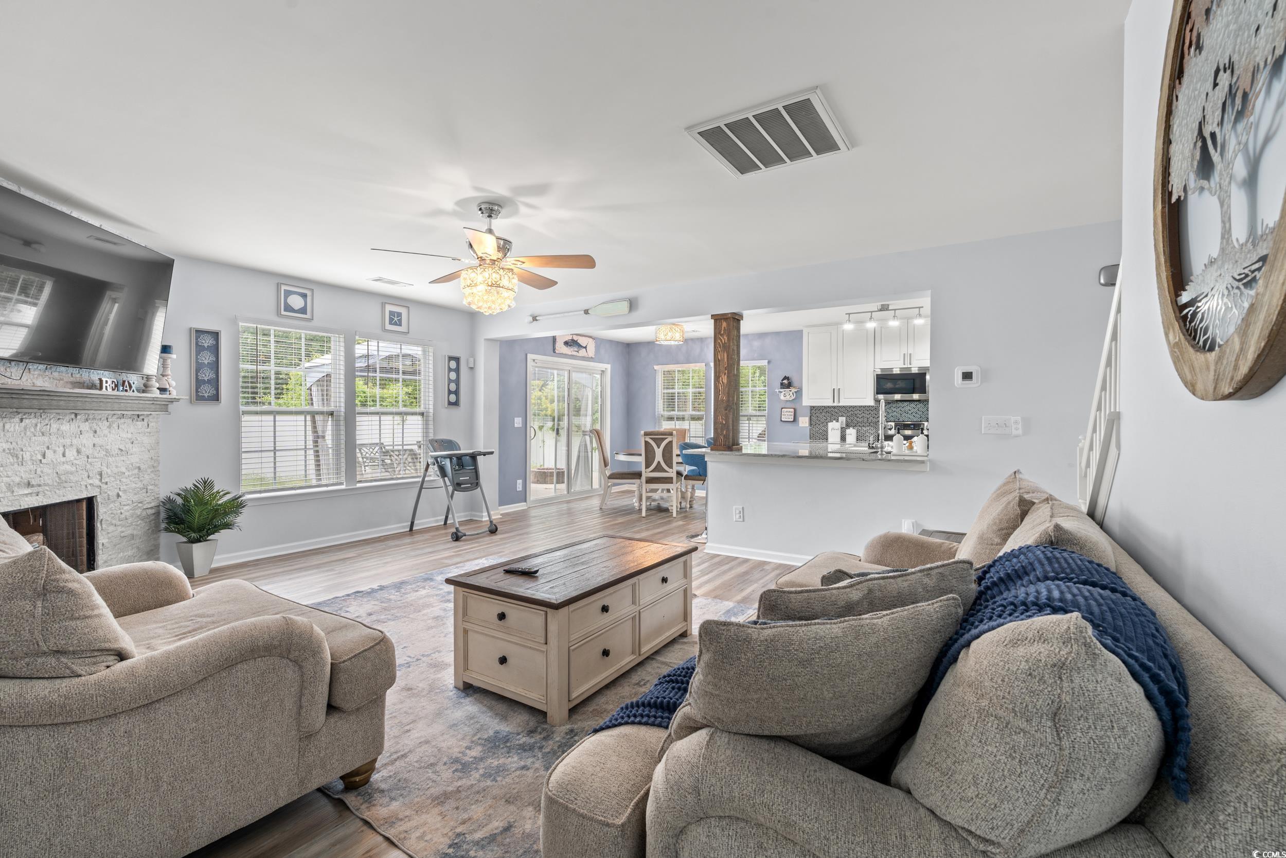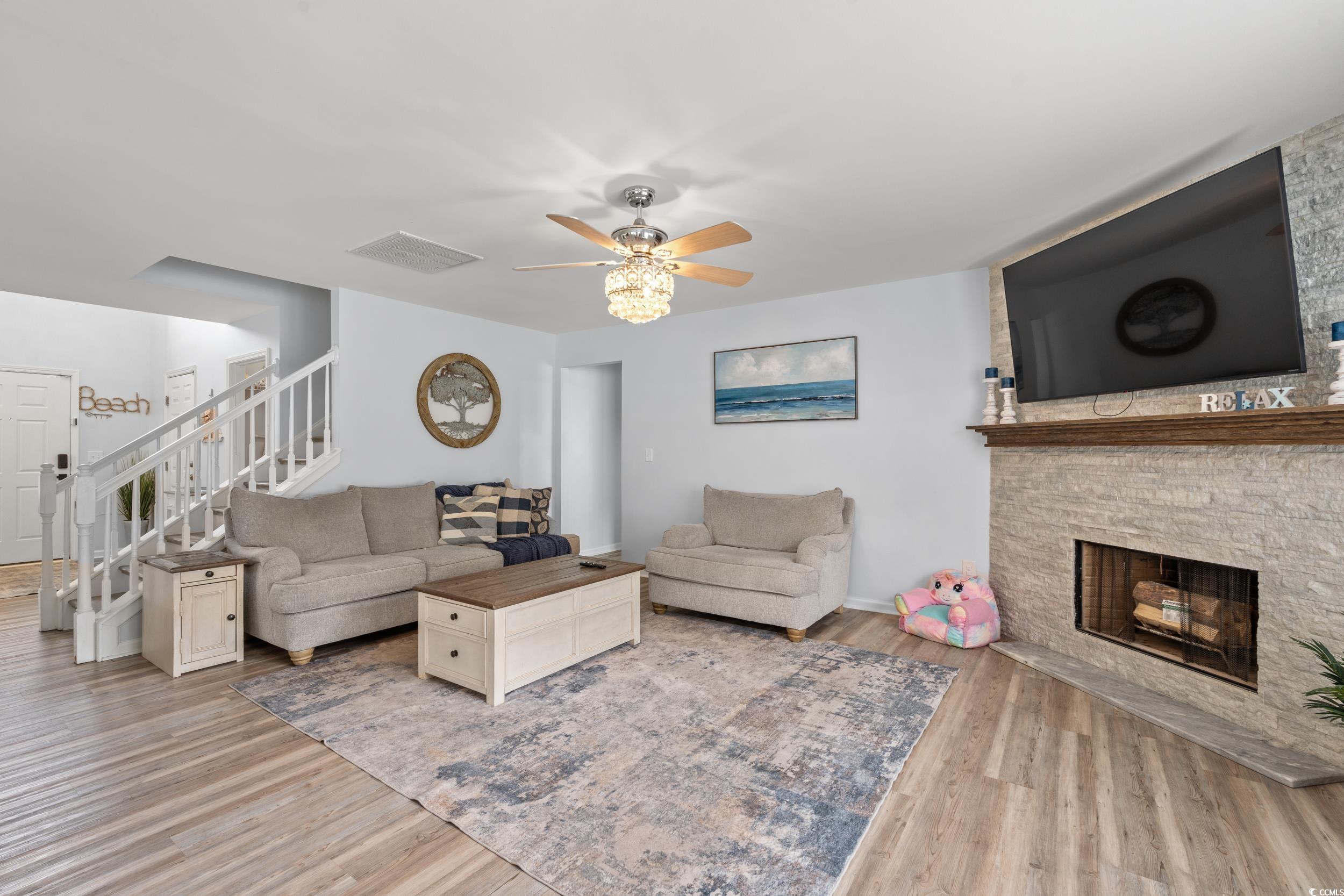 Welcome to this beautifully updated and well-maintained home in the highly desirable Myrtle Beach community of Brighton Woods. Walk into this bright, stunning foyer area as you pass through the cozy dining room into a modern, updated kitchen with plenty of counter space, solid countertops and breakfast nook. The spacious living area, complete with fireplace, creates a warm environment with natural light. Step outside and enjoy your private, fenced-in backyard and patio area, perfect for grilling, relaxing and entertaining. The attached two-car garage is located in the front of the home. The first floor primary suite has its own private full bath and walk-in closet. Laundry and half-bath are also located on the first floor. Upstairs you’ll find your additional bedrooms, a full bath and an open living area that’s great for relaxation, reading, movies and games. This 4 bedroom and 2.5 bath home is perfect for living and entertaining. Conveniently located near shops, restaurants, entertainment, schools, and the beaches–everything the Grand Strand has to offer! This move-in ready home is only missing one thing–You! Schedule your showing today! Buyer is responsible for square footage verification as measurements are approximate.