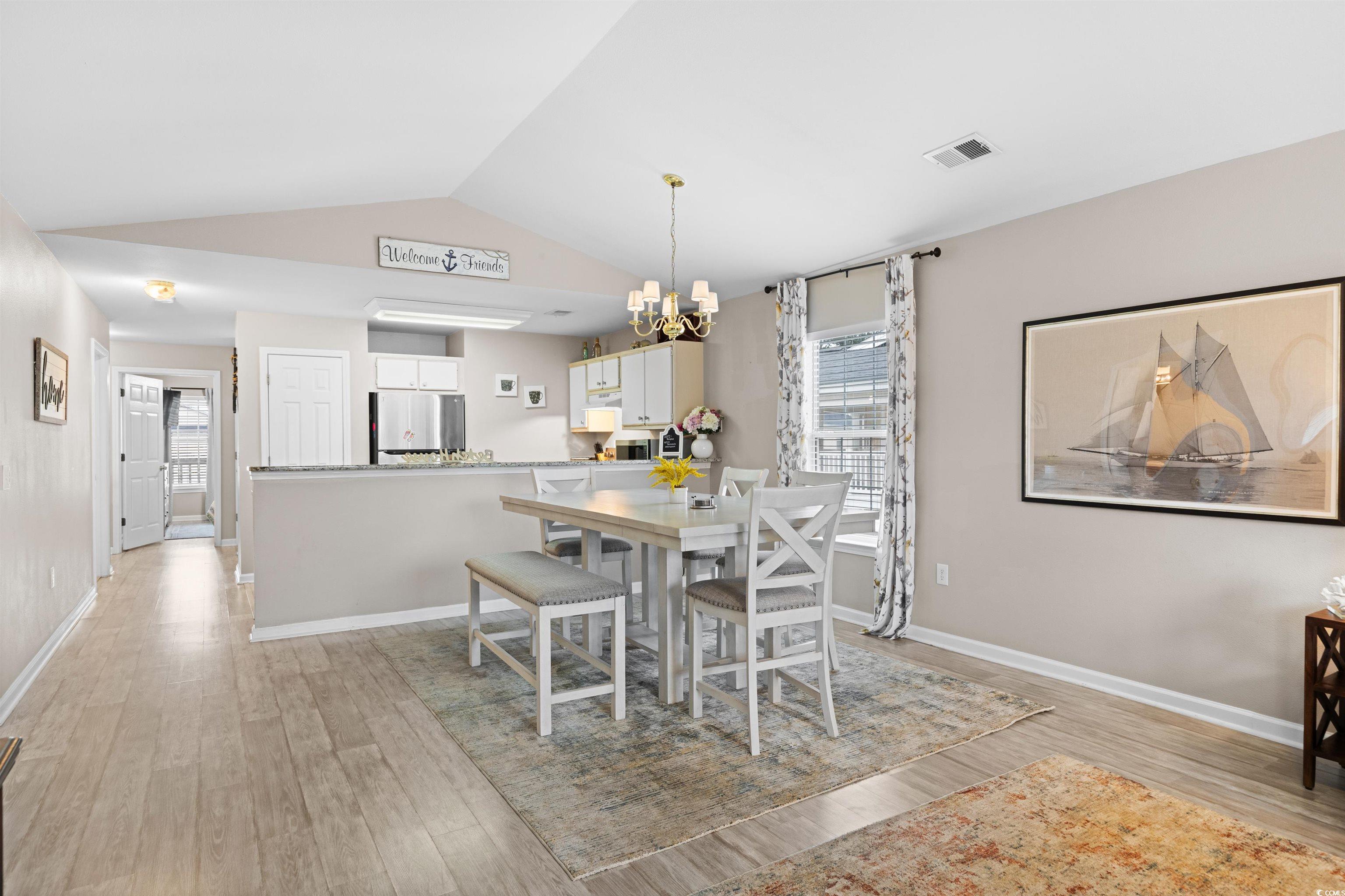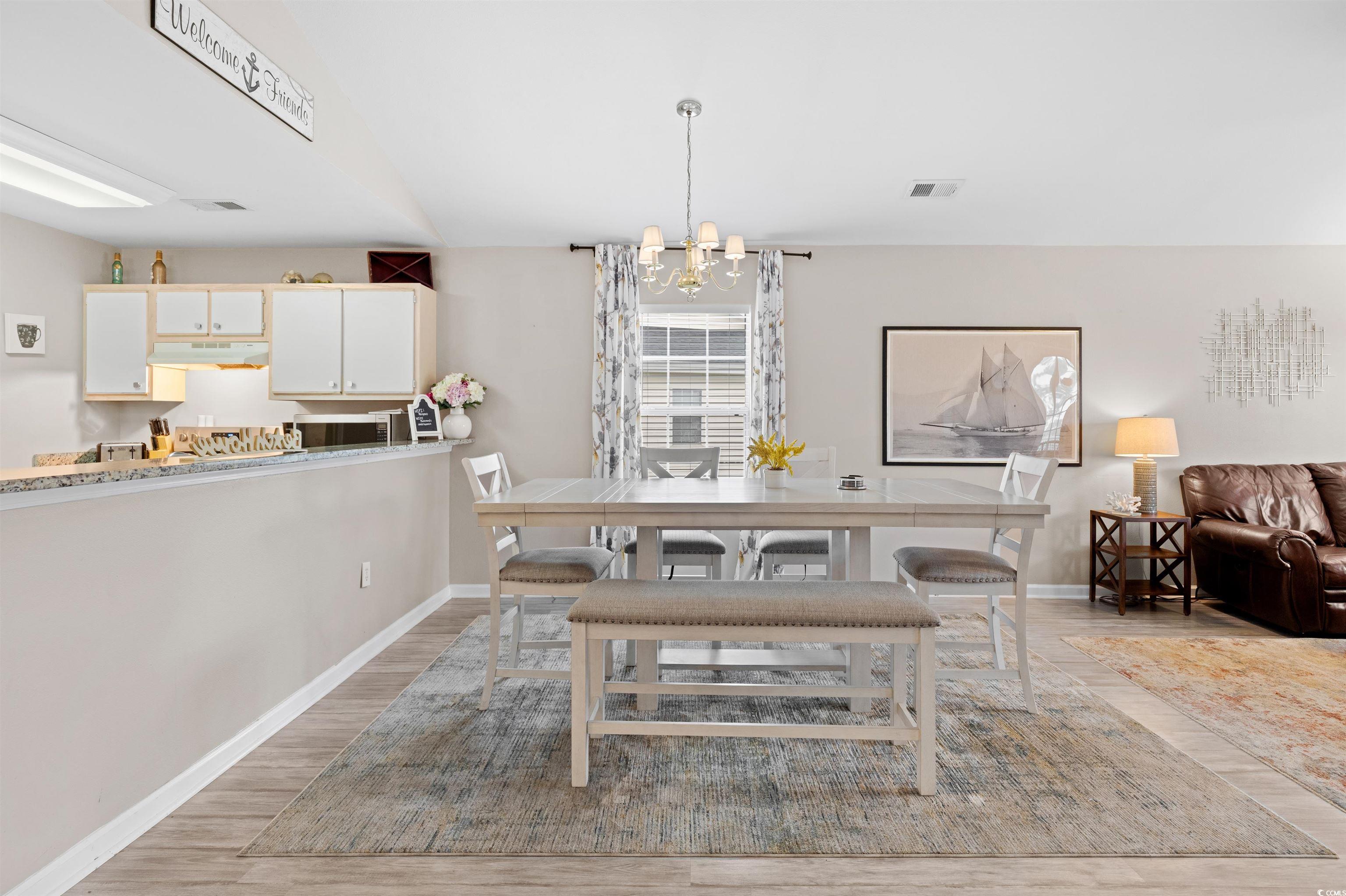 Welcome to this stunning top-floor end-unit condo located in the highly desirable community of The Fairways at River Oaks in Carolina Forest. Fully furnished and truly move-in ready, this beautifully maintained 3-bedroom, 2-bathroom home offers a bright, open layout with soaring ceilings and an abundance of natural light. Enjoy stylish upgrades throughout, including luxury vinyl plank flooring, granite countertops in the kitchen and bathrooms, and stainless steel appliances. The kitchen flows effortlessly into the spacious living area, perfect for entertaining or relaxing. Step out onto your private screened porch, ideal for morning coffee or evening unwinding. This unit also features a brand-new water heater, modern furniture, tasteful artwork, and mounted TVs, everything you need to start enjoying the coastal lifestyle immediately. Residents of The Fairways enjoy access to on-site amenities like a sparkling community pool, grilling stations, and scenic sidewalks. Plus, you're just minutes from the beach, top-rated golf courses, Tanger Outlets, and an array of dining and entertainment options. Don’t miss this opportunity, schedule your private showing today and make this exceptional condo your own!