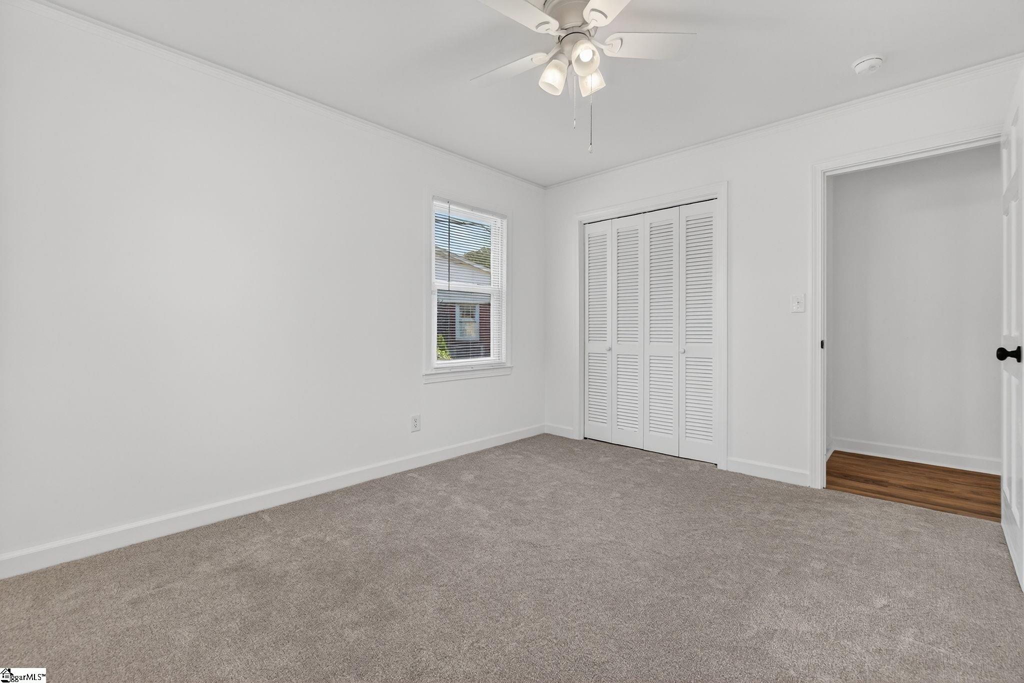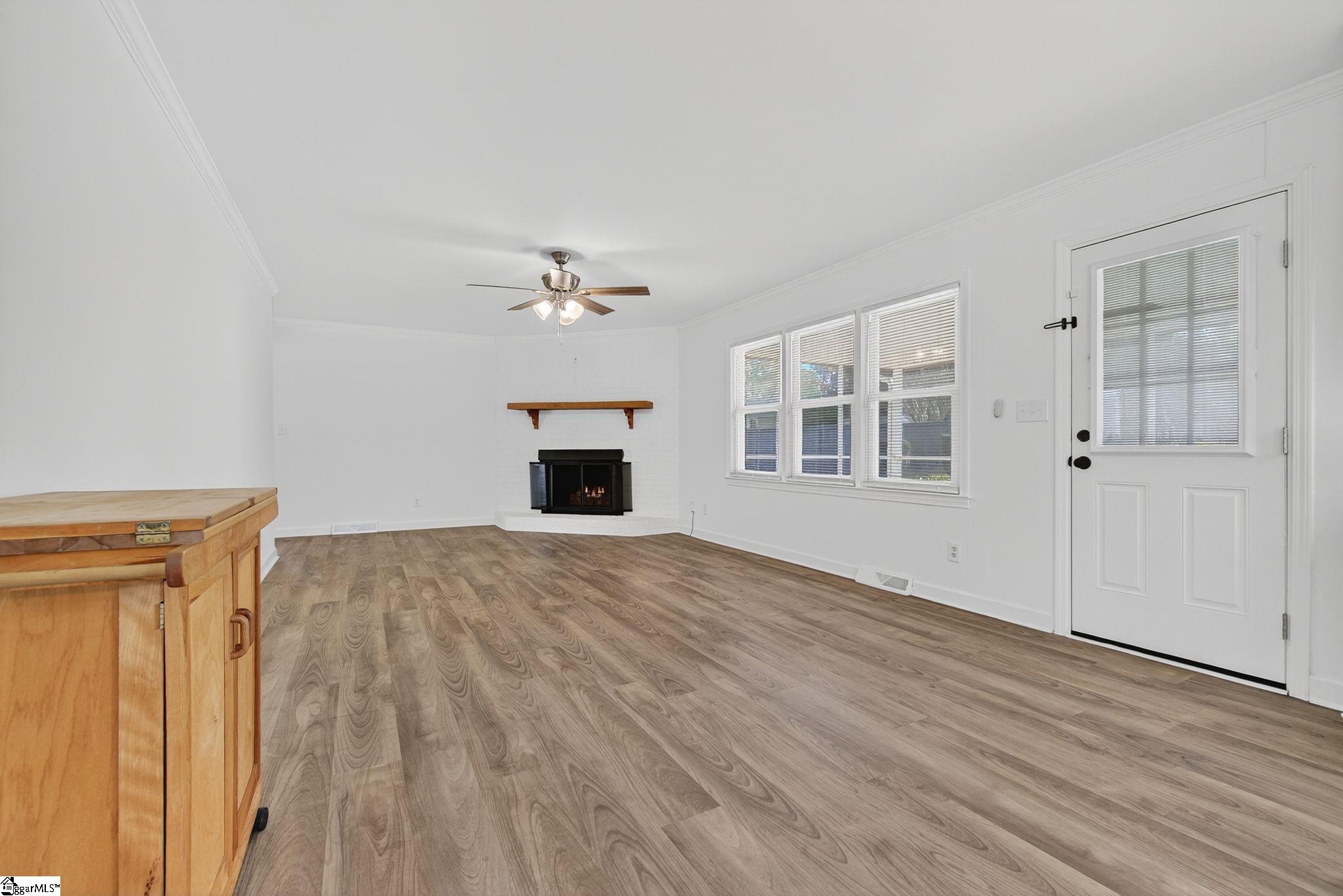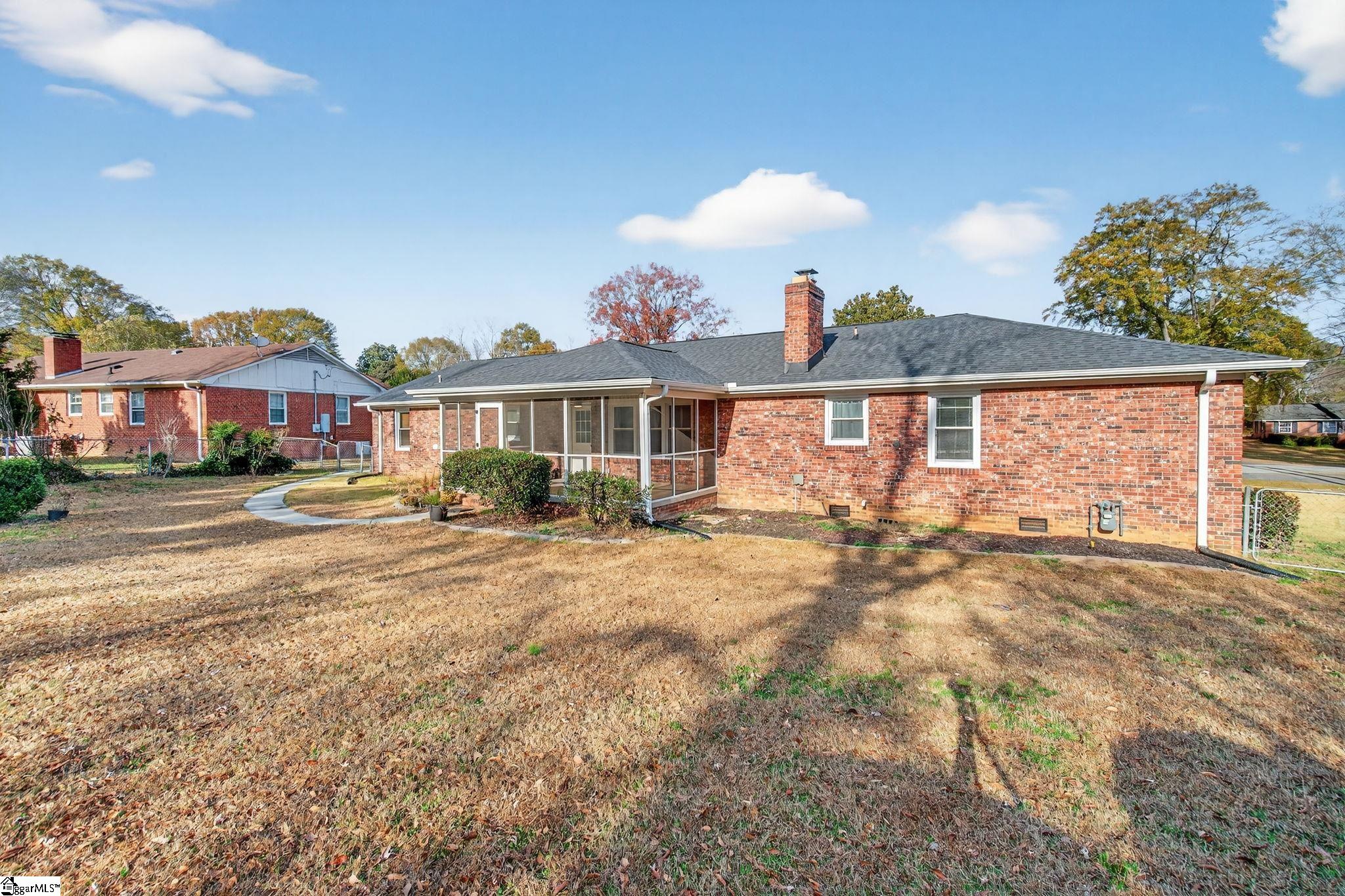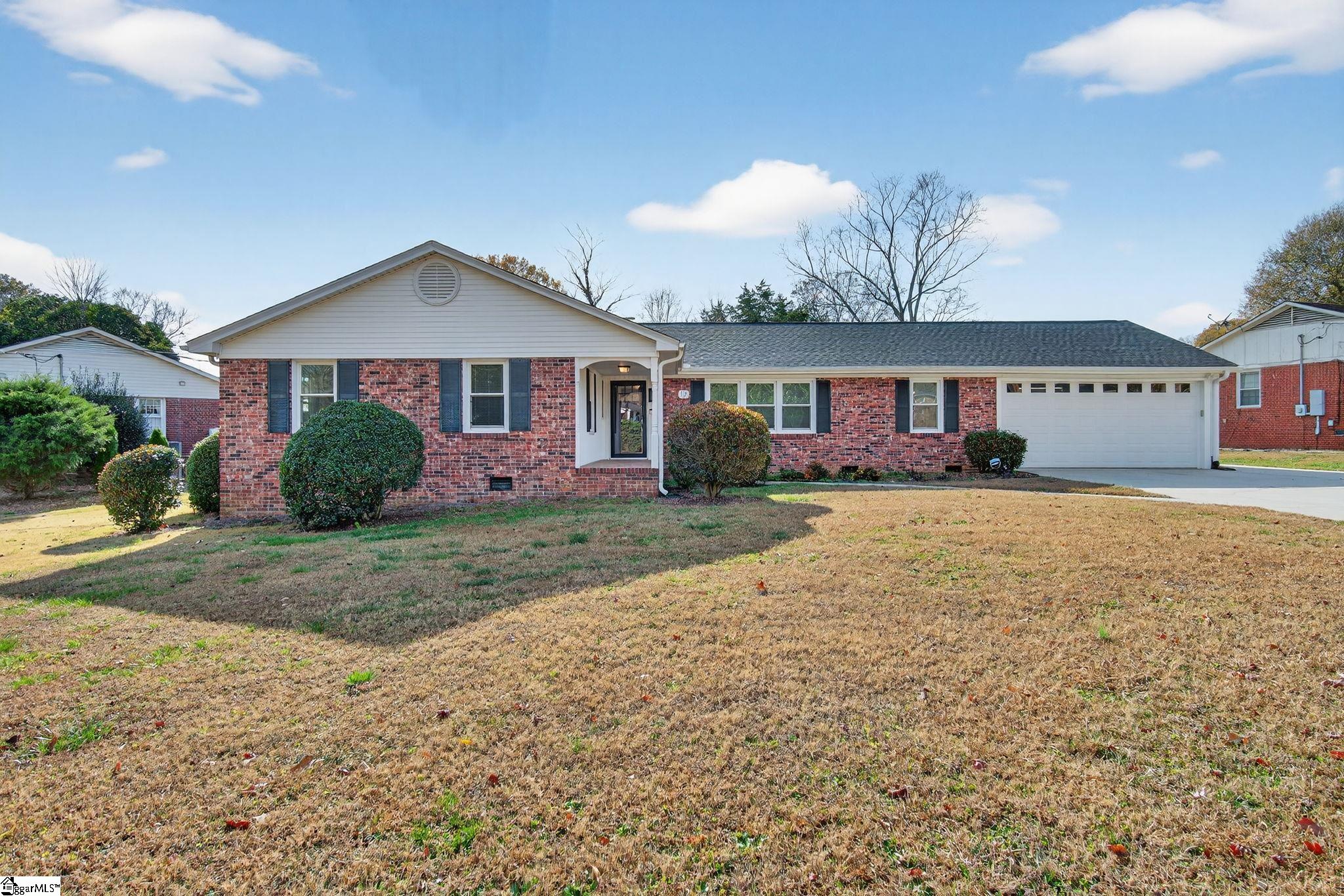 Take a look at this BEAUTY! Located in a highly desirable and convenient area of Greenville, this fully updated 4-bedroom, 2-bath all-brick ranch offers easy single-level living close to shopping, great schools, 15 minutes to downtown Greenville fun and excitement and, best of all, NO HOA. Wellington Green is a well established neighborhood offering a recreation facility and pool if you so desire. The renovated kitchen with quartz countertops opens to a welcoming den and a cozy, corner, gas fireplace while a formal dining room and large living room with abundant natural light provide great spaces for entertaining. The primary suite features two closets and a walk-in shower. Three additional bedrooms provide ample flexibility for guests, home office, or hobbies. A beautiful full bath with double vanities will impress your guests. The stackable washer/dryer pair convey with the sale of this home as well as all the stainless kitchen appliances. The huge screened porch overlooks the partially fenced backyard, perfect for outdoor enjoyment. The converted carport is now enclosed with a garage door that allows potential parking for two vehicles plus extra storage above. This is a wonderful opportunity to own a move-in-ready home in a sought-after Greenville location before the NEW YEAR!