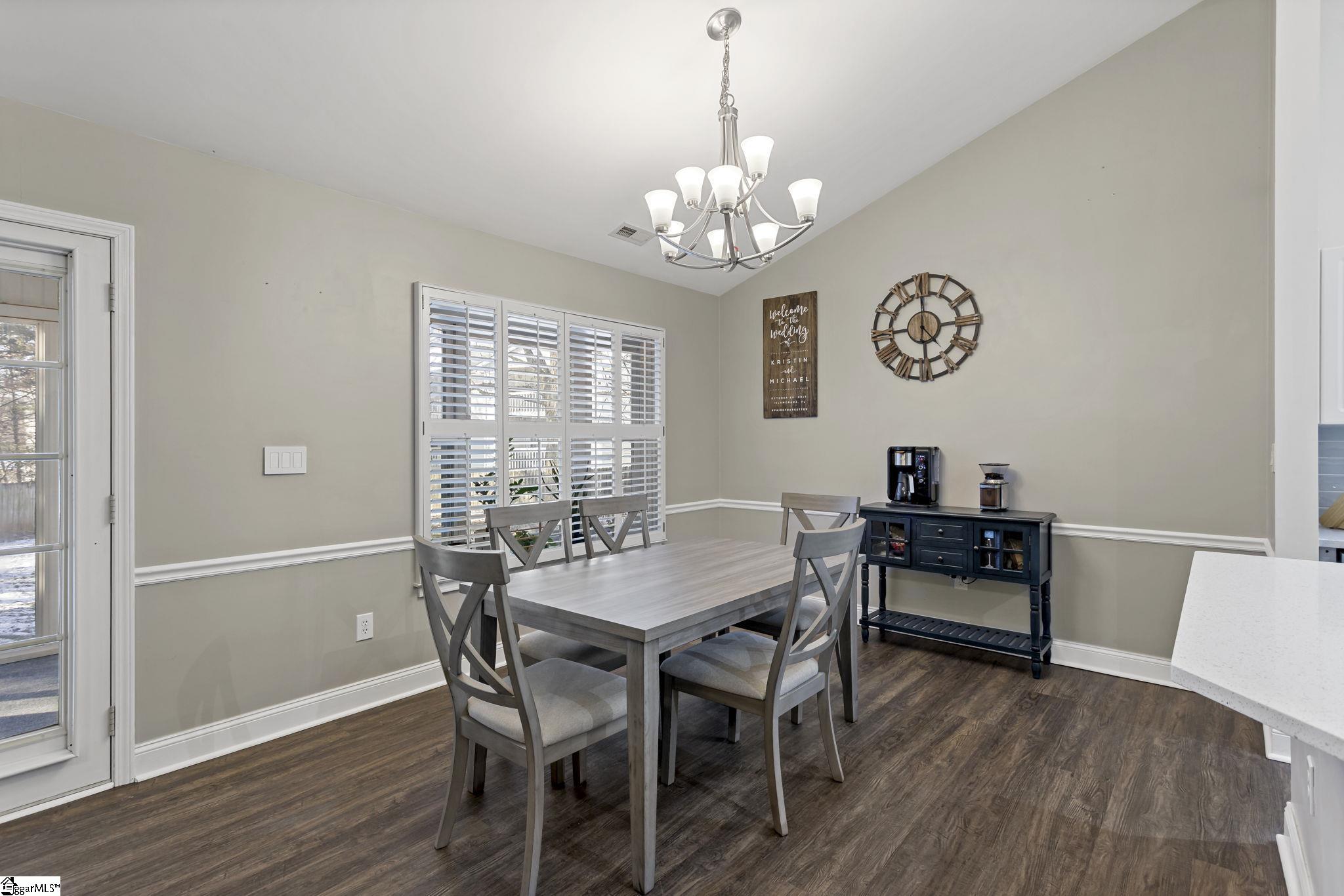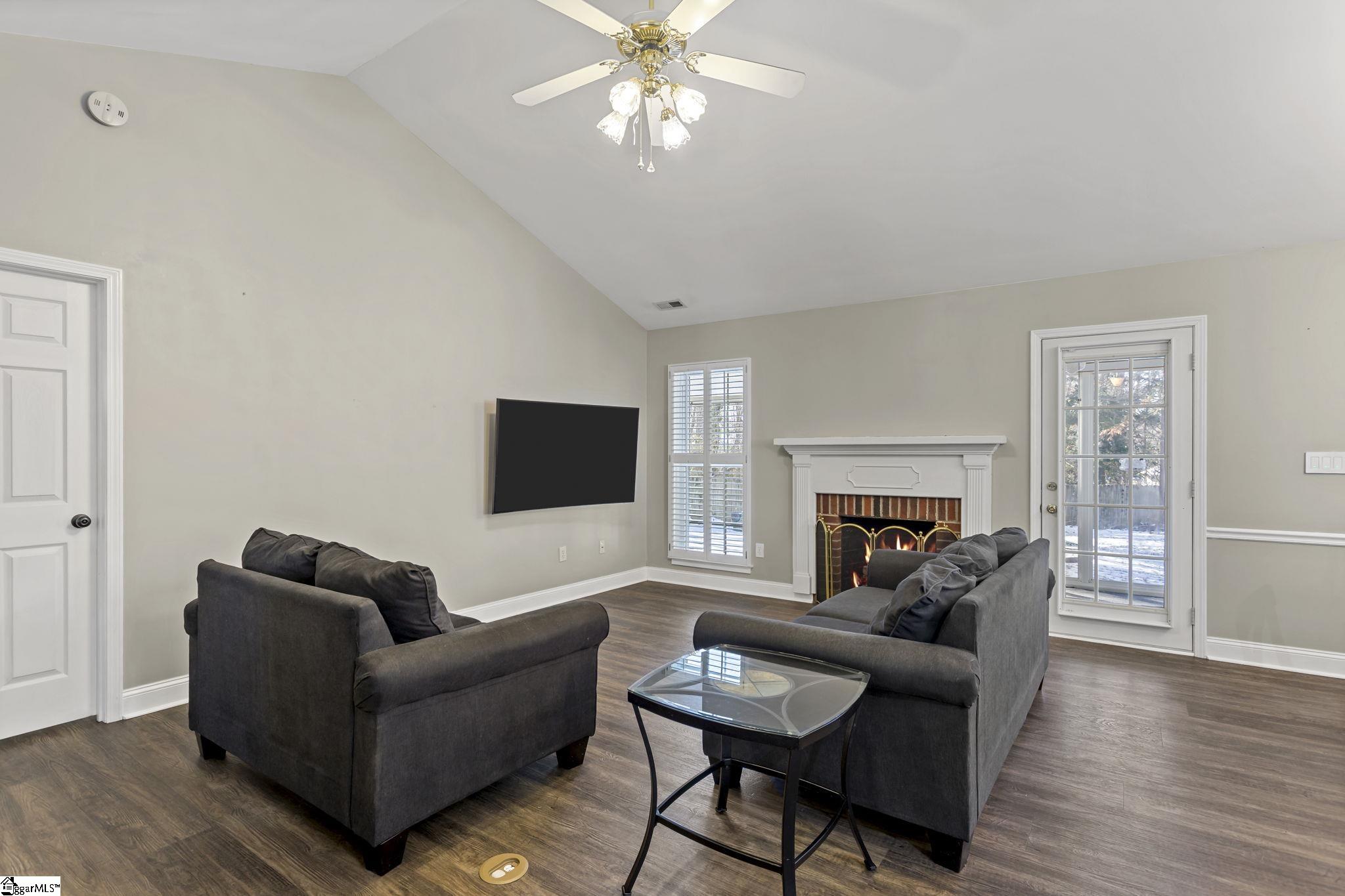 Welcome to this beautiful and well maintained 3-bedroom, 2-bathroom home, nestled in a quiet cul-de-sac in the Raintree Cove subdivision. Offering approximately 1,500 square feet of comfortable living space, this single-story residence boasts a popular split floor plan, providing both privacy and an open, airy feel. Step inside through the foyer into a spacious living room, featuring soaring vaulted ceilings and a cozy gas-starter fireplace, creating the perfect ambiance for relaxing or entertaining. The adjoining dining area flows into a well-appointed kitchen, equipped with a large island of entertaining, solid surface countertops, a dishwasher, disposal, and a stand-alone smooth top range, and ample cabinet space. The primary suite comes complete with a large walk-in closet and an en-suite bathroom that includes a garden tub and a separate shower. Two additional generously sized bedrooms and another full bathroom provide plenty of space for everyone. Enjoy the large, gently sloping backyard, which has trees for added privacy. The large screened porch and the expansive patio are perfect for outdoor dining and recreation. The property also includes a 2-car attached garage, providing convenient parking and extra storage. Conveniently located with easy access to the interstate and Wade Hampton Blvd, this home offers the perfect blend of quiet living and urban convenience. Don't miss the opportunity to make this your new home!