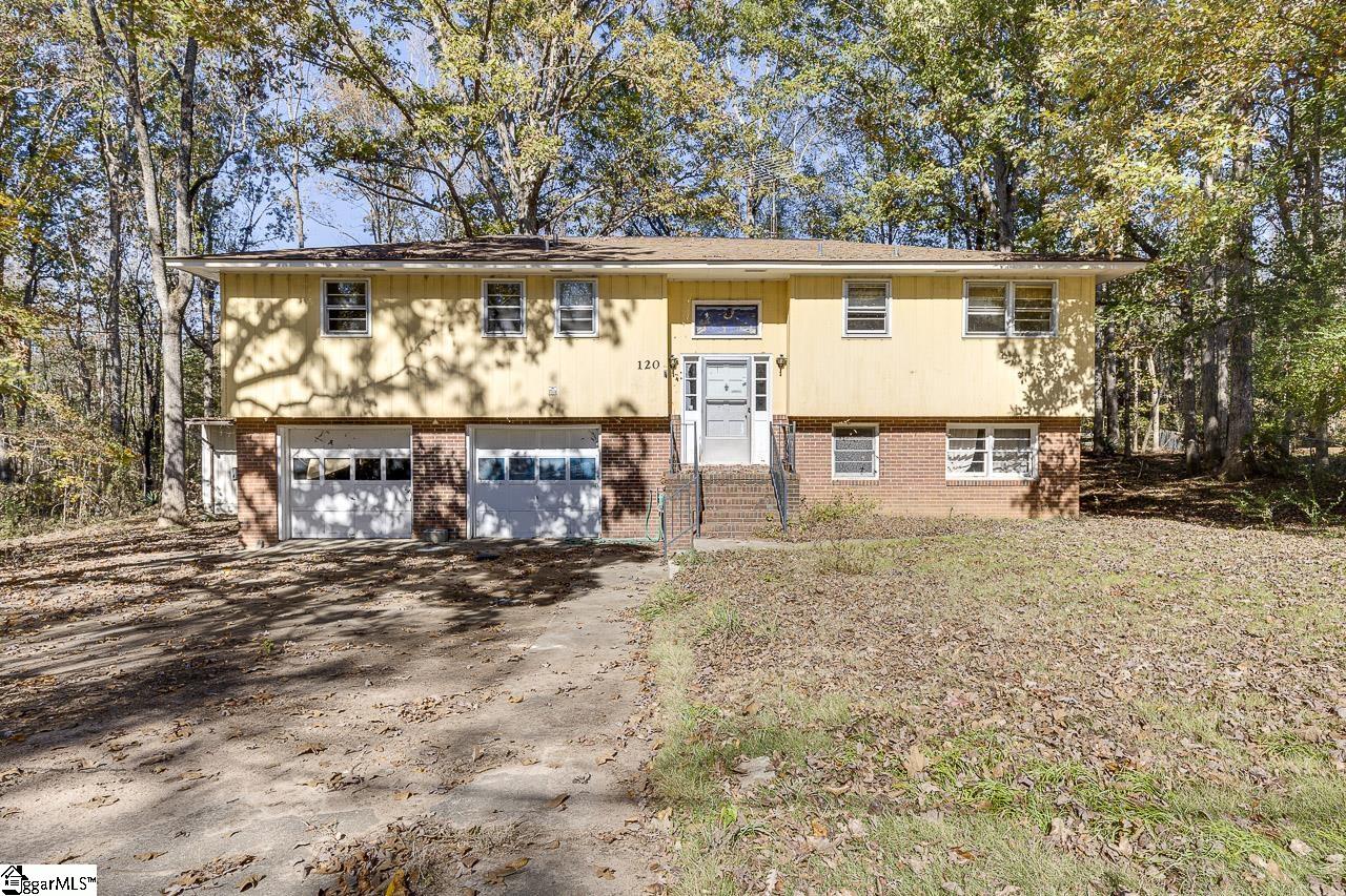 Calling all Investors, Dreamers and DIY’ers! 120 Bismark is ready for your vision! Sitting on a quiet cul de sac lot that is .78 acres, this 3 bed/2 bath home has endless potential! The main floor features a huge living area with wood burning fireplace that opens to a kitchen on one side and a screened porch on the other side. Down the hall are two secondary bedrooms, a hall bath/laundry combo, the primary bedroom with attached bath, storage closets, and an elevator that leads to the basement level! The unfinished basement has a large flex room with woodburning fireplace that could easily be finished for additional living space, access to the attached two car garage and access to the patio and backyard. Here you will find a huge garage/workshop with electricity and room to park an RV, boat or cars. There is a studio apartment attached to the workshop. There is ample driveway parking, and the lot is large, flat and partially fenced. Great location off Old Augusta Road with easy access to the interstate and just 20 minutes from Donaldson Center, Greenville and Simpsonville. With so much potential, this one is too good to pass up! Sold AS IS.