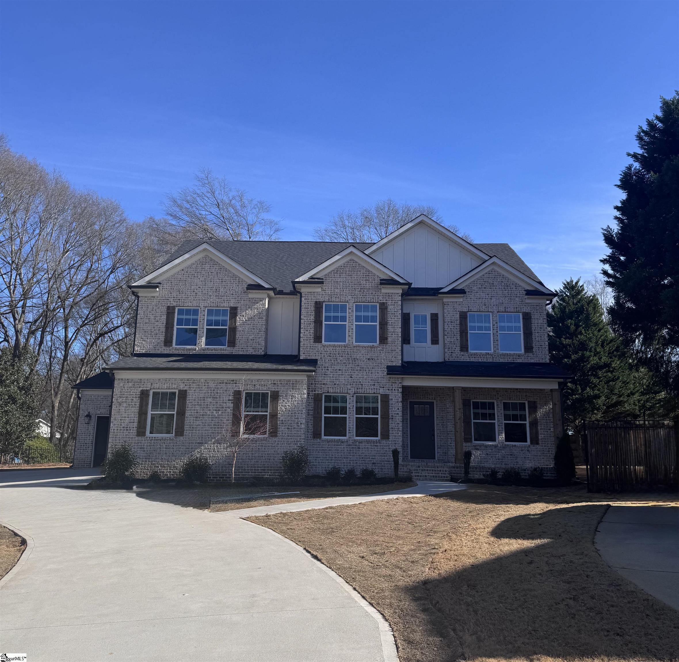 NEW ROCKFORD PLAN by TRUST HOMES TAILORED! Mostly Full Brick Home with 3 Car Side Entry and Tandem Garage sits nestled on close to half acre home-site in cul de sac of established Simpsonville community! Entryway features formal living and dining room, connecting to Chef's Kitchen via Butler's Pantry and Large walk-in Pantry. Kitchen includes stainless built in gas appliances, vented wall hood, quartz countertops, tile backsplash, farm sink and 42" cabinets with crown moulding! Large family room with shiplap fireplace and built in bookshelves looks out onto covered patio! Primary Suite on main floor with large full tile walk in shower, large walk in closet, dual comfort height vanities and linen closet! Mud hall with built in bench and cubbies sits across from spacious walk in laundry with sink and additional storage cabinets. Walk up the hardwood tread staircase with open wrought iron spindles to upstairs loft, following 2 bedrooms with Jack and Jill bath set up, Media room, and a third bedroom with private bath access and walk in closet! Additional features include full in ground irrigation, upgraded light and plumbing fixtures, upgraded trim package, bronze color door hardware, and video door bell/smart switch tech package with structured wiring panel! Rare opportunity for new construction in an established community close to Holly Tree Country Club!