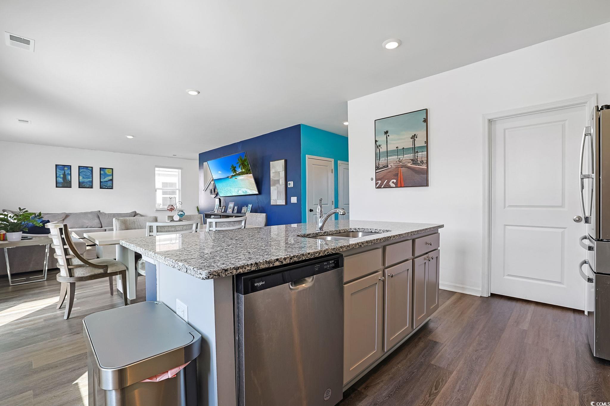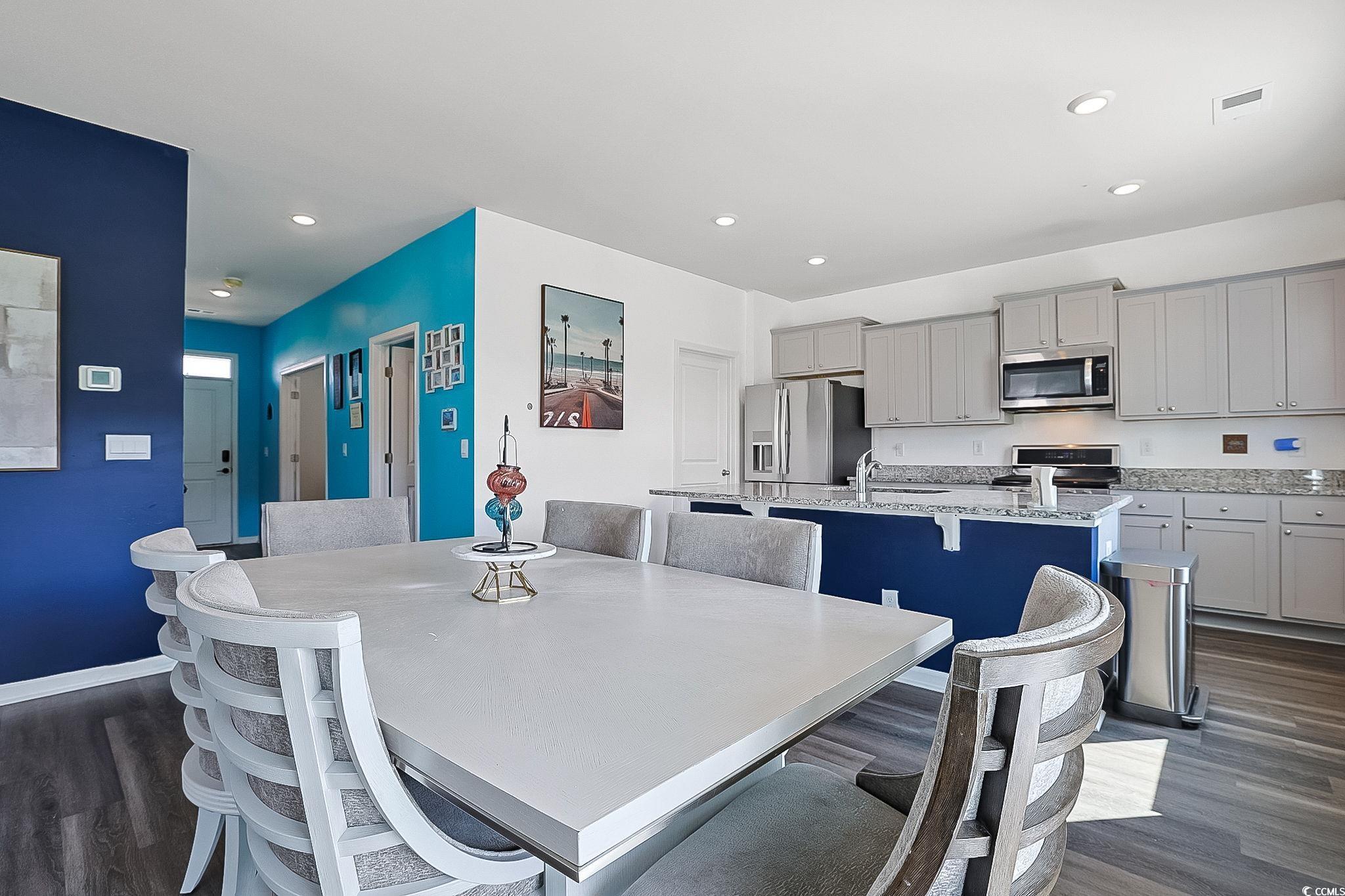 Presenting this spacious 4 bedroom 2.5 bath home located in the very popular Village Oaks section of the Berkshire Forest community. This open floor plan home features laminated wood, tile, & carpet flooring, smooth flat ceilings, French door access to a versatile office/day parlor or 5th bedroom, recessed lighting, a guest powder room, a classic living/dining room combo that showcases a sliding glass door that opens up to the relaxing covered back patio. The family friendly kitchen is equipped with a stainless steel appliance package, granite counter tops, cabinets topped with crown moulding, a breakfast bar, and a practical pantry. Upstairs you will find the primary bedroom offering a large walk-in closet, private access to the primary bath hosting a dual sink vanity, a walk-in closet, a comfort station, and a timeless step-in shower. the upstairs is completed with three additional bedrooms and a full guest bath. This delightful home is finished with a laundry room, gas water heater, fenced back yard, and a two car attached garage with a NEW garage door. This home affords you easy access to the beach and golfing along with all of the other activities and happenings in Myrtle Beach including fun eateries, award winning off-Broadway shows, public fishing piers, and intriguing shopping adventures along the Grand Strand. Conveniently located to your everyday needs, including grocery stores, banks, post offices, medical centers, doctors’ offices, and pharmacies. Check out our state of the art 3-D Virtual Tour.