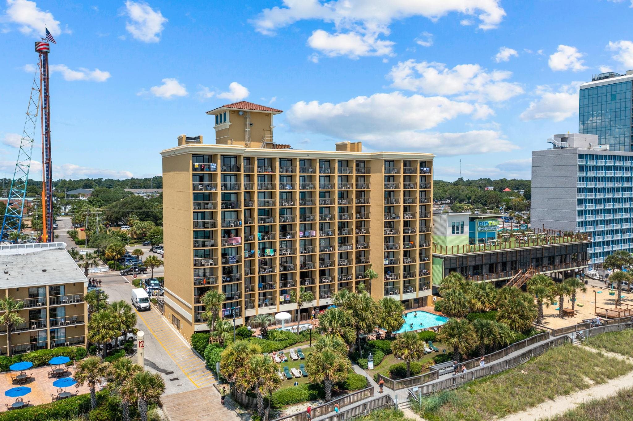 Welcome to this oceanfront 10th floor, direct ocean front efficiency in Holiday Pavilion in the heart of Myrtle Beach. This is a true oceanfront view on the second floor. It is fully furnished with two queen beds, a full kitchen and a tub/shower combo. Holiday Pavillion's amenities include indoor and outdoor pools, lazy river, kiddie pool, hot tub, oceanfront tiki bar, and fitness center. Holiday Pavillion is literally steps away from all of the entertainment of downtown Myrtle Beach, there wouldn't be a reason to drive! It is conveniently located to dining, shopping, golf, recreation, The Sky Wheel, the boardwalk, the airport and of course, the beach! This could be used a vacation spot for you and the family or investment opportunity. Schedule your showing today!