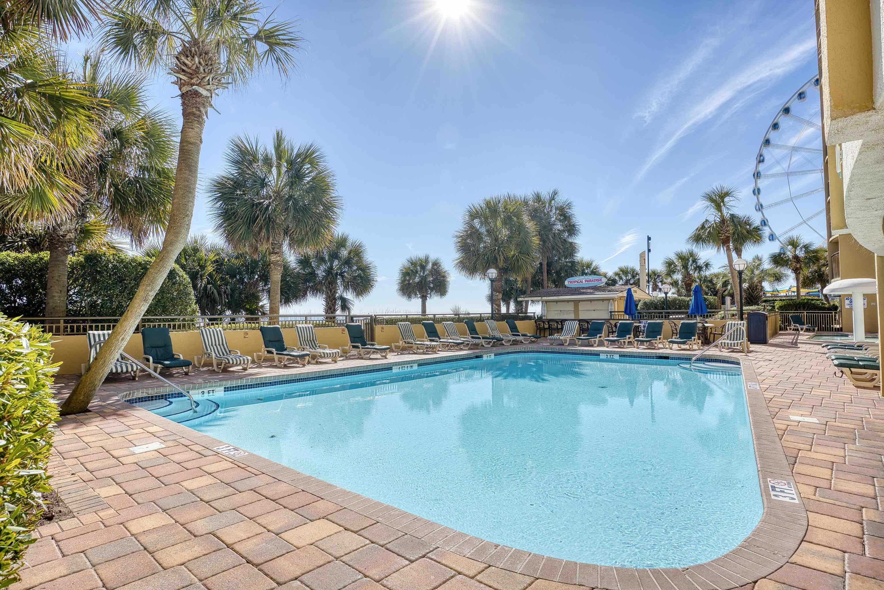 Located in one of the most sought-after spots along the coast, this fully furnished one-bedroom one bath condo offers the ultimate beachside living experience. Wake up every morning to breathtaking views of the sparkling Atlantic Ocean, with panoramic vistas of the 14th Avenue Pier and the iconic Skywheel. Whether you're enjoying a sunrise from your private balcony or relaxing indoors, the serene oceanfront setting provides the perfect backdrop! The Holiday Inn-Pavilion offers so many amenities...Indoor pool and Lazy River, Outdoor pool and hot tub, Business Center, Fitness Center and a 24 hour Front desk to help you or your guests if needed. The HOA covers so much to include all the amenities, water/sewer, trash, parking, elevator service, internet, cable and also your unit electric which is rare. The furnishings are up to date with two Queen sized beds in the bedroom, a Murphy bed and a couch in the living area! The kitchen is very functional with stainless steel appliances and quality wood cabinets. Seller has replaced both split system cooling and heating systems in April 2025! Take a ride down the elevator and you might have to take a break with all the fun you will have at the resort AND all the restaurants and entertainment just steps away. The newer addition of the Myrtle Beach boardwalk is right at your door to enjoy! Square footage is approximate and not guaranteed. Buyer is responsible for verification.