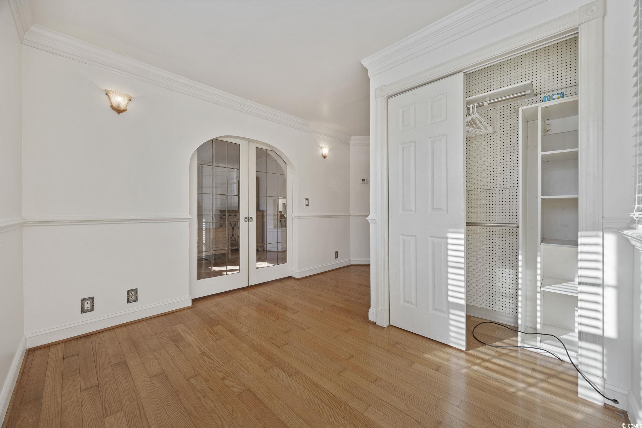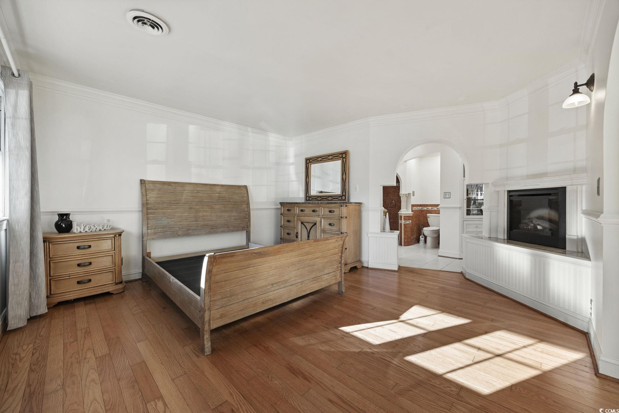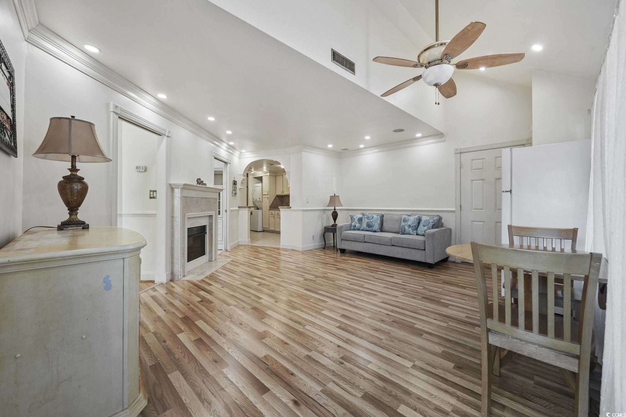 Welcome to Sterling Village where a timeless design meets coastal living and the feel of luxury is truly unparalleled. From the moment you step inside this beautifully updated 2-bedroom, 1-bath condo, you’re wrapped in warmth and character with every detail curated to elevate your lifestyle. New laminate flooring flows alongside fresh paint throughout. Enjoy the charm of crown molding and wainscoting paired with custom lighting, along with graceful arched doorways that add a touch of elegance. The living space invites you to linger, complete with a cozy fireplace, while a second fireplace in the primary bedroom adds an unexpected touch of romance and comfort. The spacious kitchen is both stylish and functional, offering an abundance of cabinetry, a custom backsplash, a new refrigerator, and a new garbage disposal, perfect for hosting or quiet nights at home. A separate laundry area with a washer/dryer combo adds everyday convenience without sacrificing space. Unwind in the spa-like bathroom, featuring a custom tile shower designed for relaxation after a day at the beach. French doors open to the second bedroom, ideal for guests or a home office. Step outside to your private patio, the perfect spot to enjoy sunset skies and coastal breezes. Residents of Sterling Village also enjoy a community pool and an inclusive HOA that covers many conveniences, making carefree living a reality. All of this, less than one mile from the beach, where sun, sand, and salt air await. Book your showing today as this condo welcomes you home to Myrtle Beach.