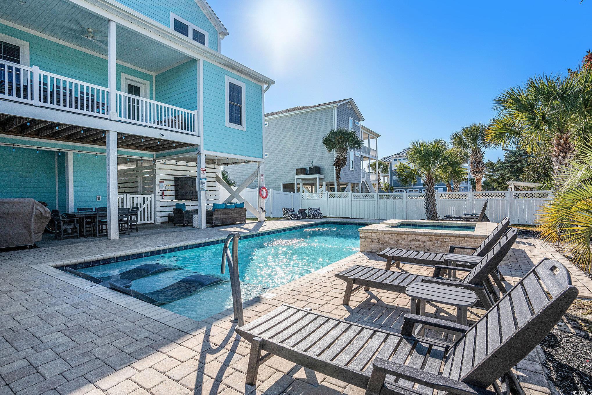 Welcome to 1203 N Ocean Blvd, a stunning 5-bedroom, 5.5-bath raised beach home perfectly situated in the heart of North Myrtle Beach. Built in 2019 and meticulously maintained, this coastal retreat combines luxury, comfort, and prime location for the ultimate beachside lifestyle. Just steps from the sand, this second-row home offers direct, unobstructed ocean views that can be enjoyed from multiple porches. The outdoor oasis is a true showstopper, featuring a 14'x28' heated saltwater pool with an 8'x8' spa, a spacious fenced yard, and ample room for lounging or entertaining. Inside, you'll find two expansive living areas that provide plenty of space for family and guests to relax. The open-concept kitchen and dining area are perfect for gatherings, complete with custom cabinetry, granite countertops, and stainless steel appliances. Each of the five bedrooms includes its own private bathroom with granite vanities, tiled showers, and elegant finishes throughout. An elevator adds ease of access to every floor, making this home as functional as it is beautiful. Sold fully furnished, this property is truly turn-key and ready for immediate enjoyment or rental income. Two oversized front porches offer panoramic ocean views, while the rear porch overlooks the sparkling pool--ideal for outdoor dining and entertaining. Downstairs, a covered patio and game room create the perfect space for fun and relaxation. Whether you're seeking a luxurious vacation getaway, a high-performing rental, or a private coastal residence, this home checks every box. Located just blocks from Downtown Ocean Drive, you'll be close to world-class dining, shopping, and entertainment. Enjoy daily walks on the beach, take a dip in your private pool, or unwind while watching the waves from your porch. Opportunities like this rarely come along--schedule your private tour today and start living the North Myrtle Beach dream!