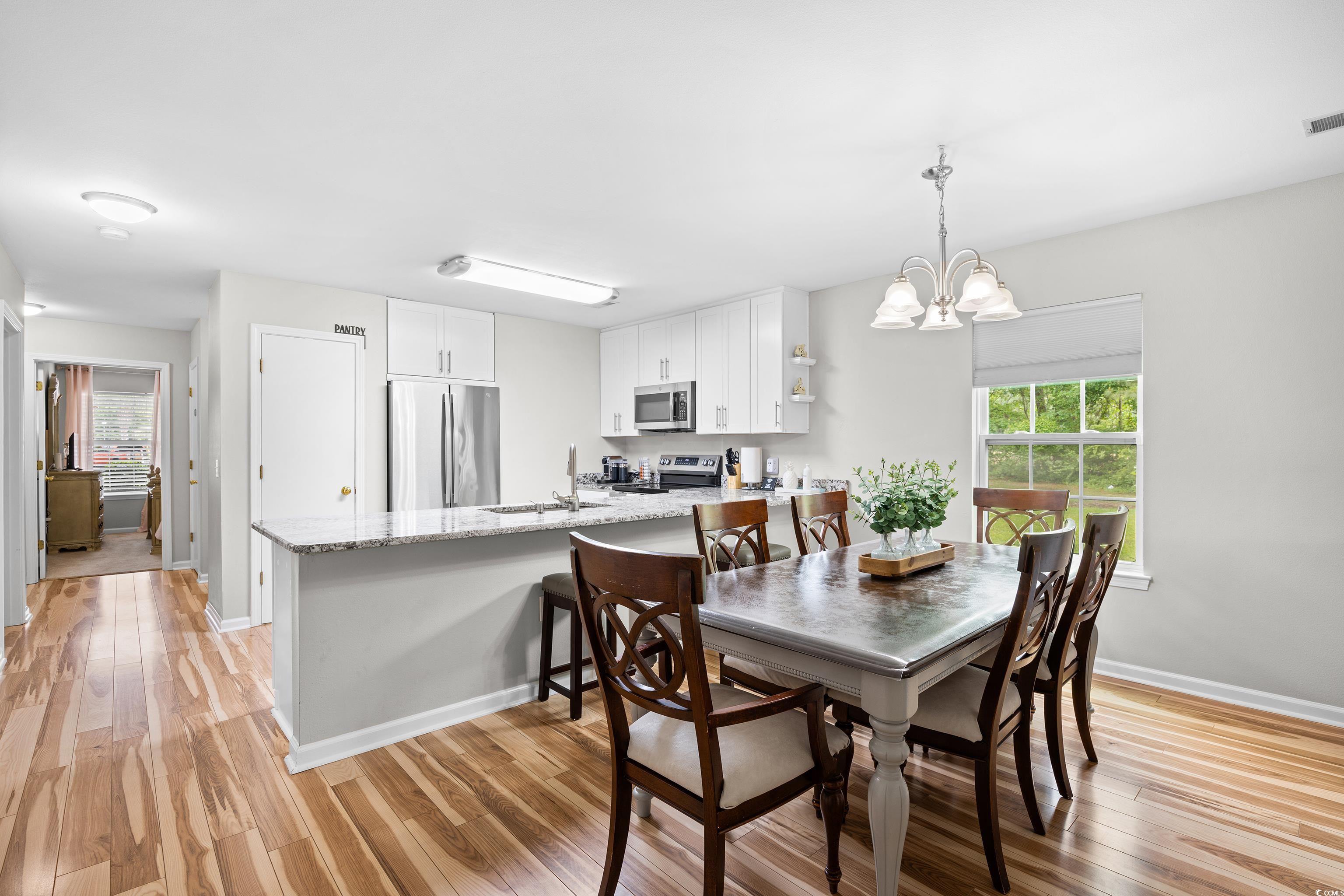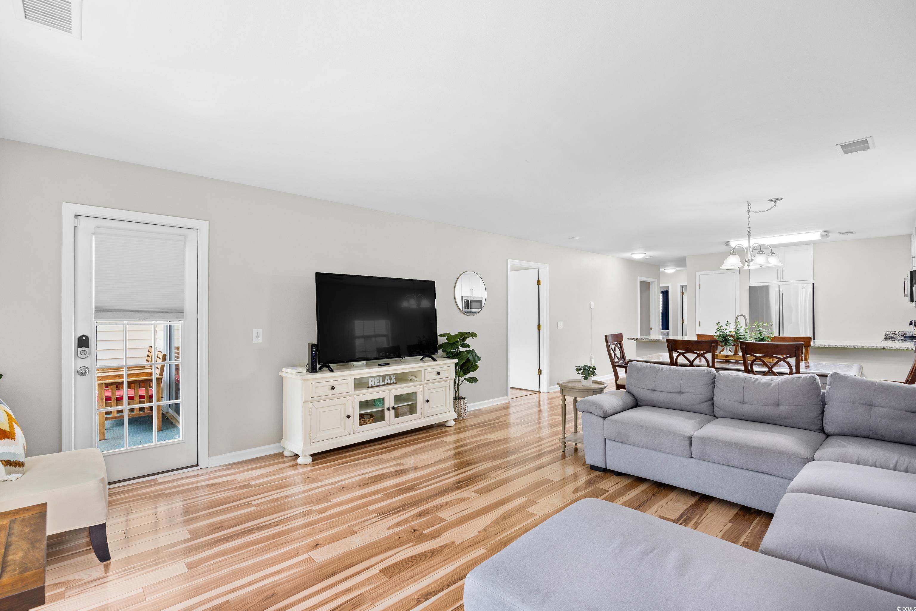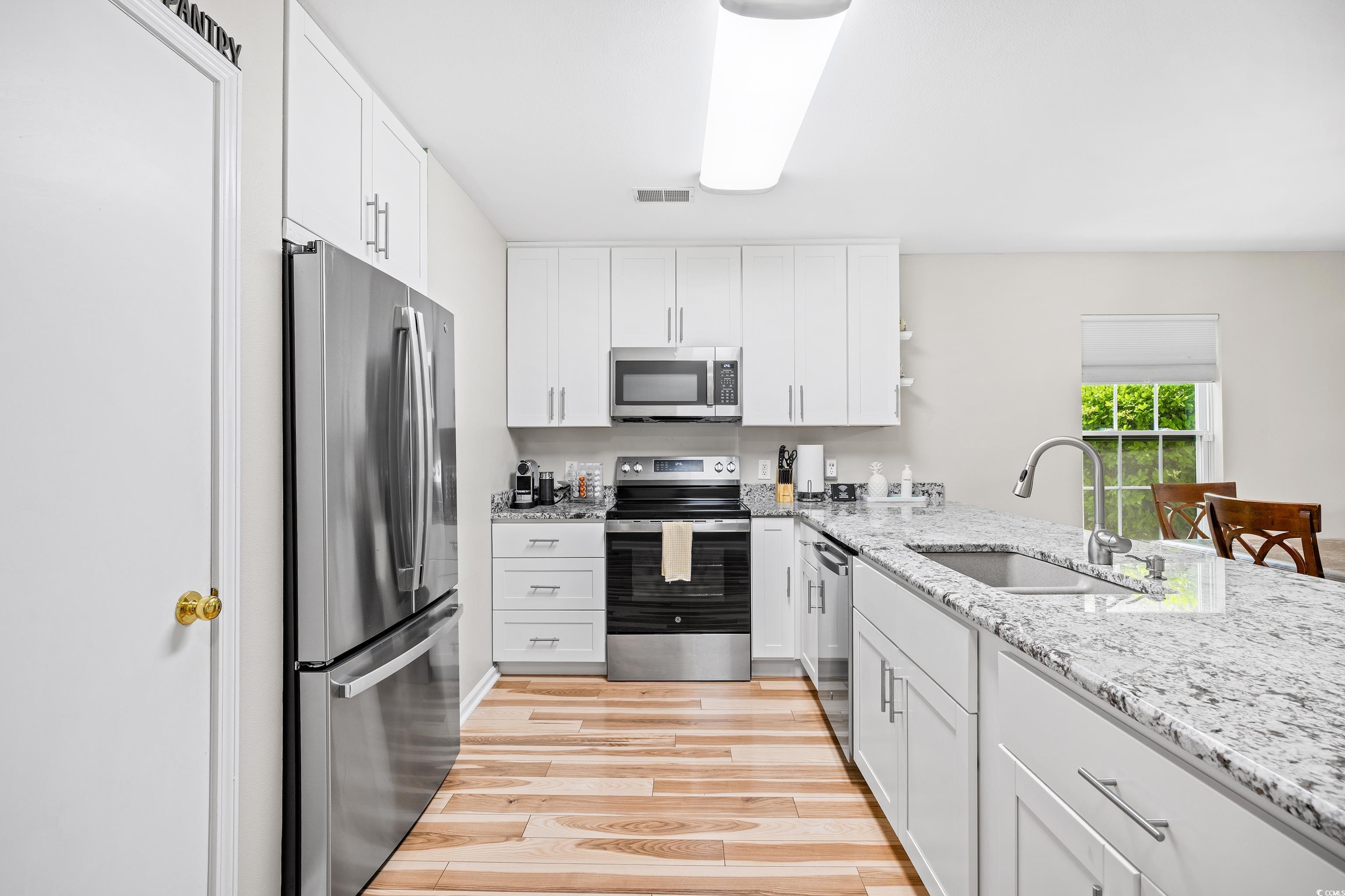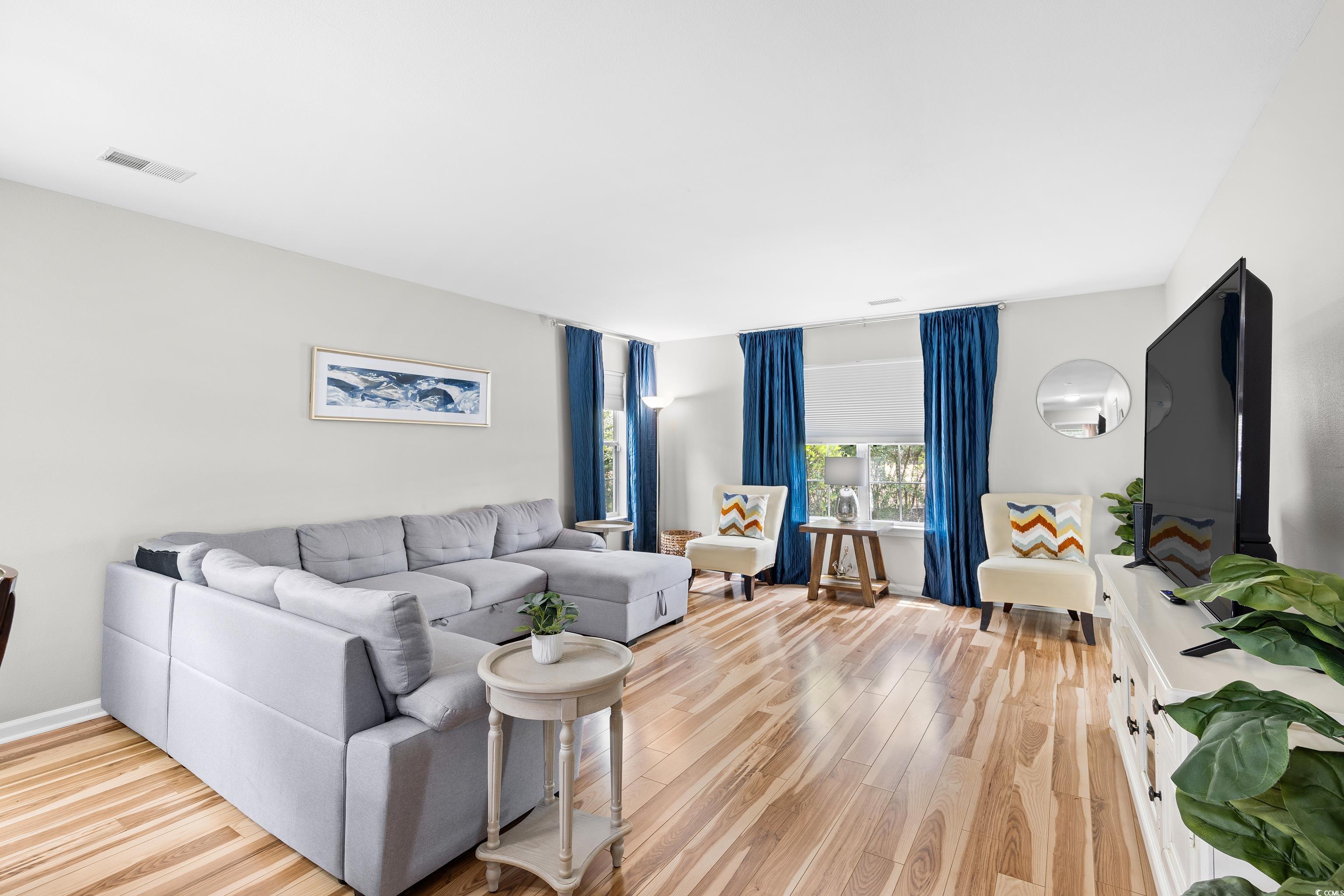 Discover the perfect blend of comfort, style, and convenience beautifully updated 3-bedroom, 2-bathroom first-floor condo in the highly sought-after Fairways at River Oaks community. Ideal as a primary home, vacation retreat, or investment opportunity, this 1st floor end unit is bright, airy, and designed for easy coastal living. Step inside to find a spacious open floor plan featuring luxury wood-style flooring, neutral coastal colors, and a seamless flow between the living, dining, and kitchen areas. The kitchen is a chef’s delight gleaming with crisp white cabinetry, stainless steel appliances, a breakfast bar for casual meals, and ample storage. The dining area is perfectly placed beside a large window, filling the space with natural light and offering a relaxing spot for gatherings. The primary suite provides a peaceful escape with sliding glass doors leading to your own screened-in patio, a generous walk-in closet, and a beautifully updated en-suite bathroom with a modern vanity and walk-in shower. Two additional bedrooms offer flexibility for family, guests, or a home office, while a second full bathroom is conveniently located nearby. The private screened porch is perfect for sipping morning coffee or winding down after a day on the beach. Residents and guests of The Fairways enjoy fantastic amenities, including a sparkling outdoor pool, hot tub, and clubhouse, all set among beautifully maintained grounds. Located just minutes from River Oaks Golf Course, Myrtle Beach’s world-renowned beaches, Tanger Outlets, dining, shopping, and entertainment, this condo offers unbeatable access to everything the Grand Strand has to offer. Whether you're looking for a low-maintenance primary home, a second home getaway, or a rental property, this condo checks all the boxes. Short-term and long-term rentals are allowed, making it an excellent investment in one of Myrtle Beach’s most popular golf and beach destinations. Schedule your private showing today and start living the beach life you've always dreamed of! Buyer is responsible for verification.