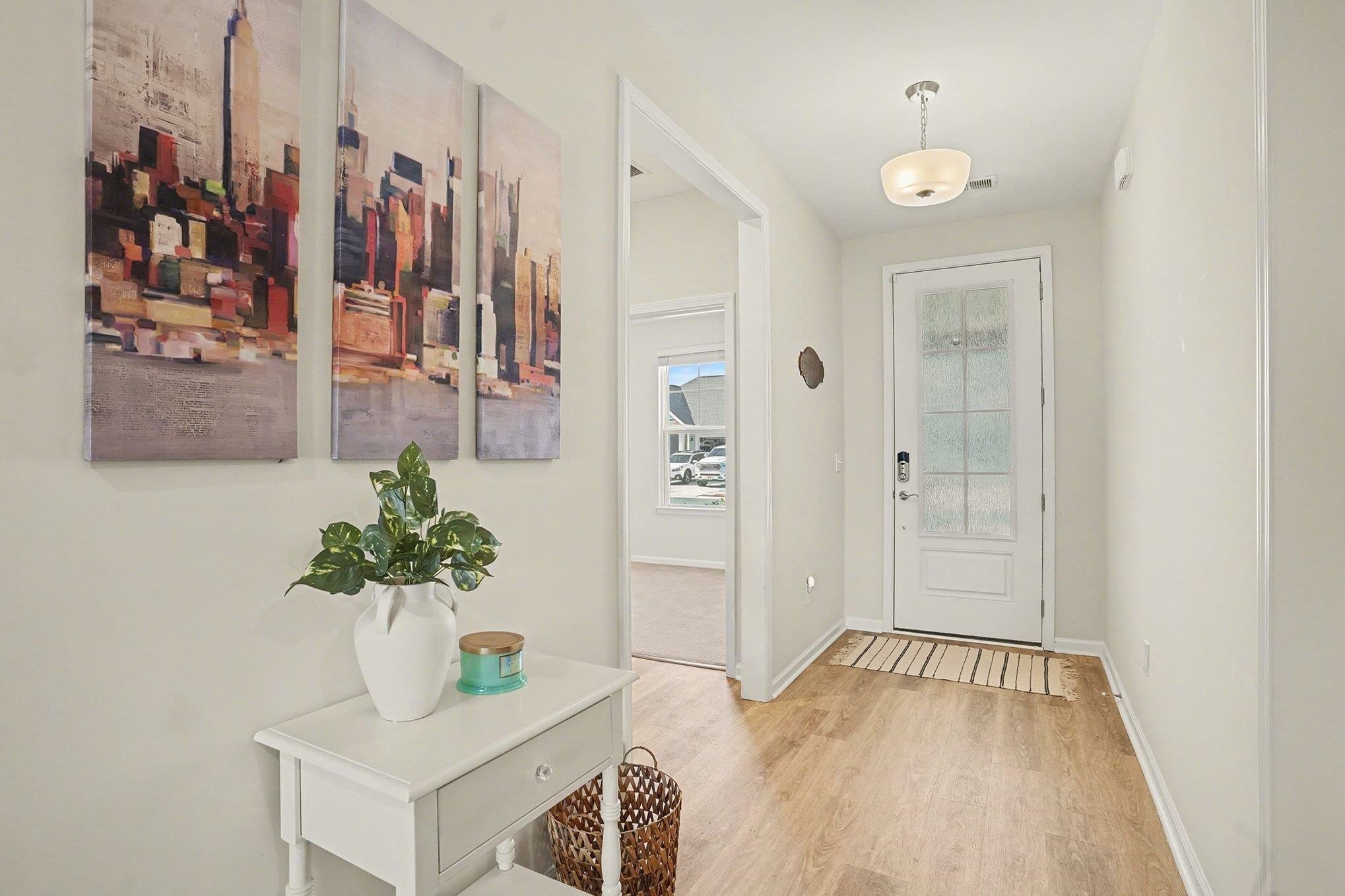 Coastal comfort meets everyday luxury-Just 13 miles from the Beach! Welcome to your own slice of coastal living, where serene pond views, thoughtful upgrades, and resort-style amenities come together beautifully. This stunning 4-bedroom, 3-bath home sits on a premium pond lot, offering peaceful views and an inviting atmosphere that feels like a daily retreat—without sacrificing convenience. Step onto the covered patio and enjoy tranquil mornings overlooking the water, then head inside to a bright, open layout designed for both comfort and entertaining. The gourmet kitchen is a standout, featuring a double oven, flat electric stove with a gas hookup, and stylish finishes that make cooking a pleasure. Durable LVP flooring, upgraded carpet and padding, gas heat, and a tankless hot water system ensure modern efficiency and comfort throughout the home. All appliances convey. The first-floor primary suite is a true sanctuary, complete with calming pond views and easy main-level living. Upstairs, you’ll find an additional bedroom and bath with a spacious loft including an extra 71 sq ft, compared to current build plans-perfect for a home office, media room, or flex space. Best of all, you’re within walking distance to exceptional community amenities, including:Resort-style pool, Pickleball courts, Bocce ball & Dog park. Whether you’re seeking a coastal escape, a full-time residence, or the perfect blend of relaxation and activity, this home delivers. Drop anchor here—your coastal lifestyle awaits.