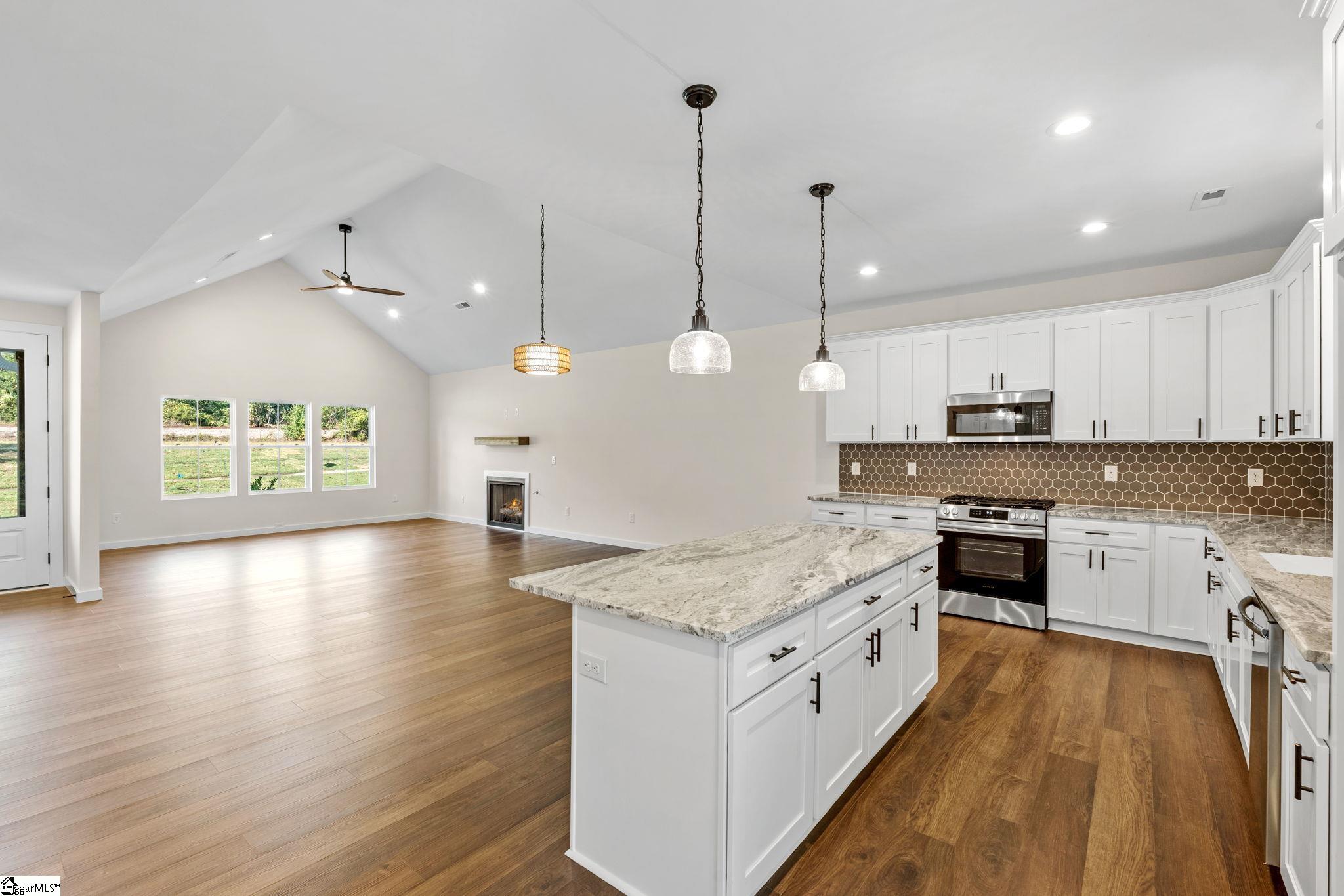 Welcome to this beauty conveniently located on S Main St in the quaint town of Fountain Inn, SC. This 3 bedroom, 2.5 bath home features huge vaulted ceilings, open floor plan, and TONS of designer selections!!! As you walk into this home, you will find a large open concept with a kitchen over looking a dining and great room with a fireplace. The kitchen is absolutely gorgeous with upgraded granite countertops, gas stove, and white cabinets with soft-close doors and drawers. The kitchen includes a slider glass door leading out to the over-sized, fenced-in, back yard. Off to the side of the home, you will find 3 bedrooms and 2 full baths. The master is stunning with a large walk-in closet, a soaker tub and tile shower in the bathroom, and LVP flooring throughout. There is also a walk-in laundry that is connected to the 2-car garage. You simply just have to see this beauty!!