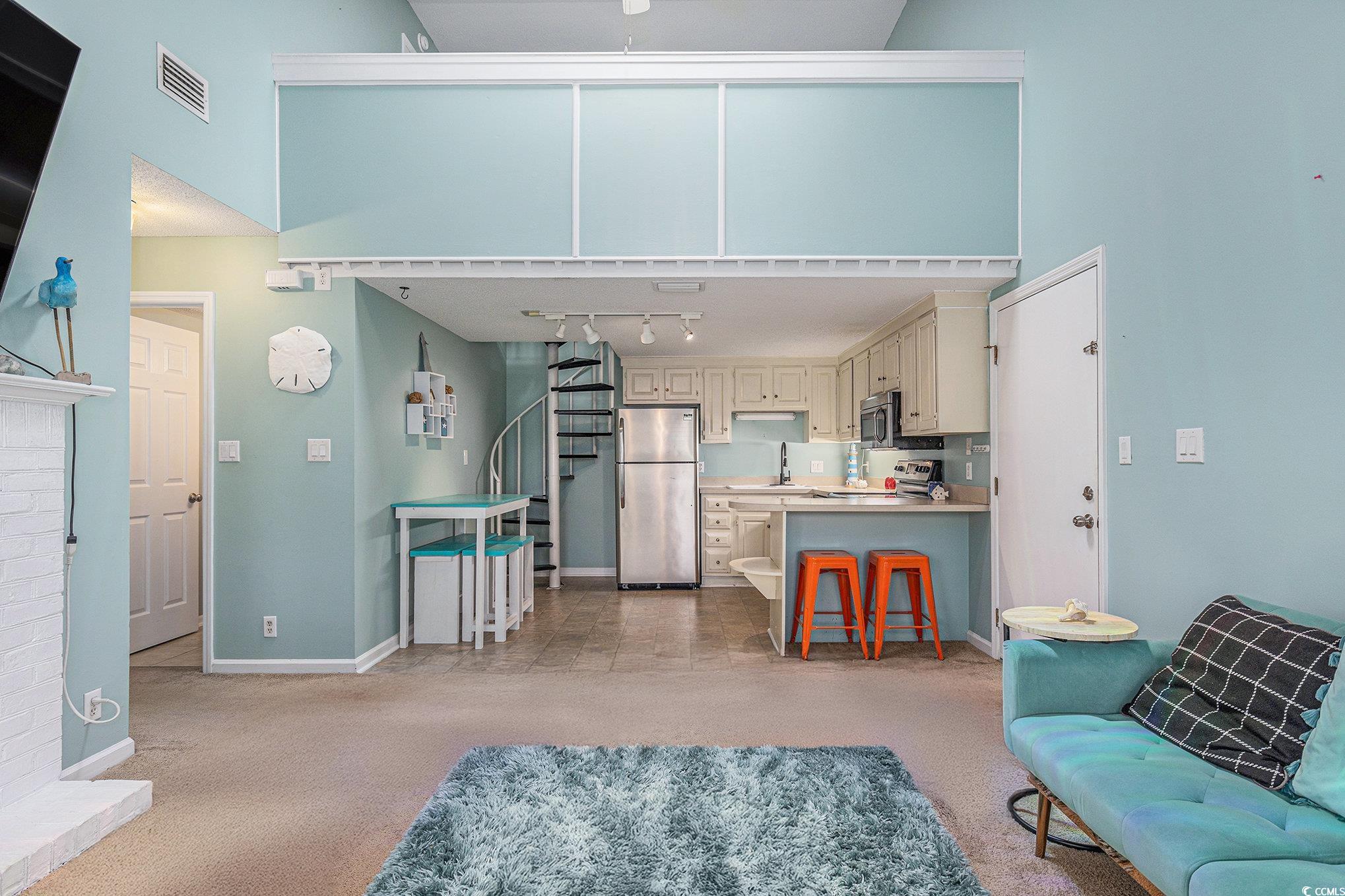Only a mile from the beach, this delightful 2 bed 1.5 bath condo in the desirable Sterling Village II community is a must see! This beautiful unit boasts vaulted ceilings, a skylight and abundant windows that allow wonderful natural light throughout and an open floor plan that is perfect for entertaining. Features include a spacious living room with a brick fireplace and a cozy wall-to-wall window seat where you can curl up with your favorite book. Meal preparation is a pleasure in the fully equipped kitchen that features stainless appliances, a double sink, abundant cabinet and counter space, a breakfast bar and dining area with seating for four. The master bedroom, located on the main level, is a true oasis with direct access to the private balcony where you can enjoy your morning coffee and an oversized walk-in closet that provide tons of storage space. Just off the master is a full bath with vanity and tub/shower. Upstairs, there is a half bath and a loft/bedroom which could also be used as an office or media room. Sterling Village is a quiet, established community with amenities that include an outdoor pool and gazebo. Great central location in the heart of Myrtle Beach and just minutes from shopping, restaurants, golf courses, the airport, Market Common, Broadway at the Beach, attractions, entertainment and everything the Grand Strand has to offer. Whether you are searching for a primary home, your dream vacation getaway or an investment property, this is a fabulous opportunity! Make an appointment to view this charming condo today!