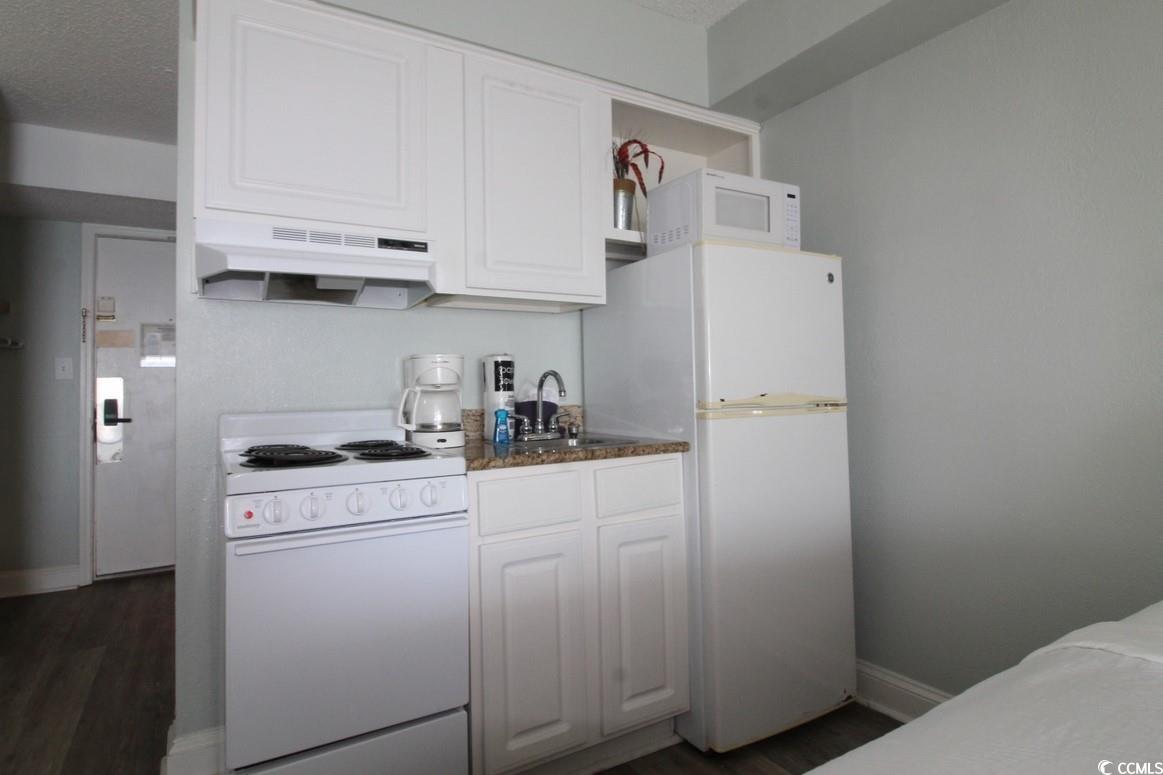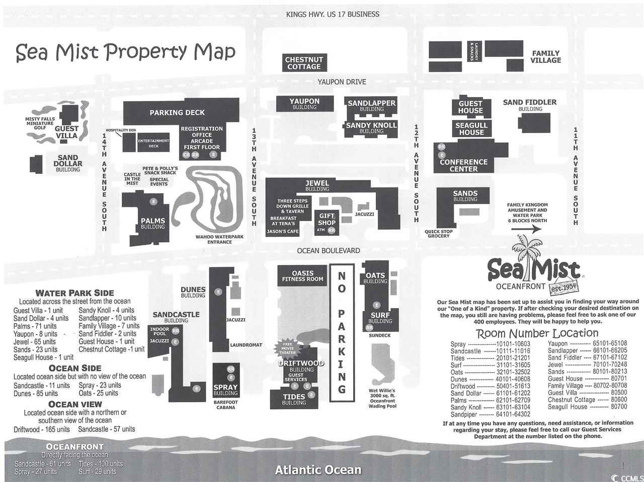 This Ocean Front studio condominium is located in the Tides building at the Sea Mist Resort in Myrtle Beach. The Sea Mist Resort is a Family Friendly oceanfront resort in the middle of Myrtle Beach, close to the airport and all the attractions the Coastal Carolinas has to offer. This is an income generating property with the on-site rental management company. The kitchen has a stove, refrigerator & microwave.