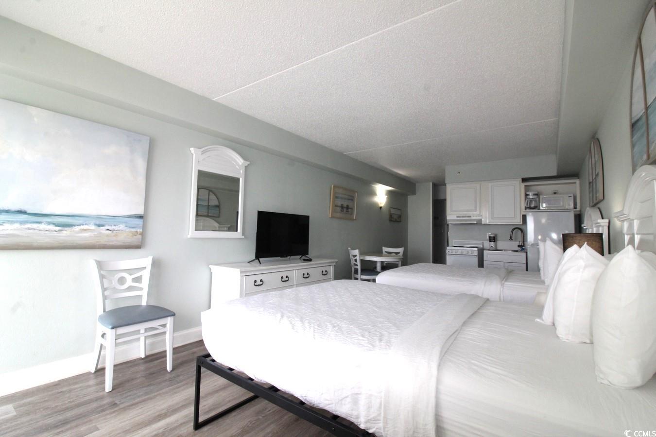 This Ocean Front studio condominium is located in the Tides building at the Sea Mist Resort in Myrtle Beach. The Sea Mist Resort is a Family Friendly oceanfront resort in the middle of Myrtle Beach, close to the airport and all the attractions the Coastal Carolinas has to offer. This is an income generating property with the on-site rental management company. The kitchen has a stove, refrigerator & microwave.