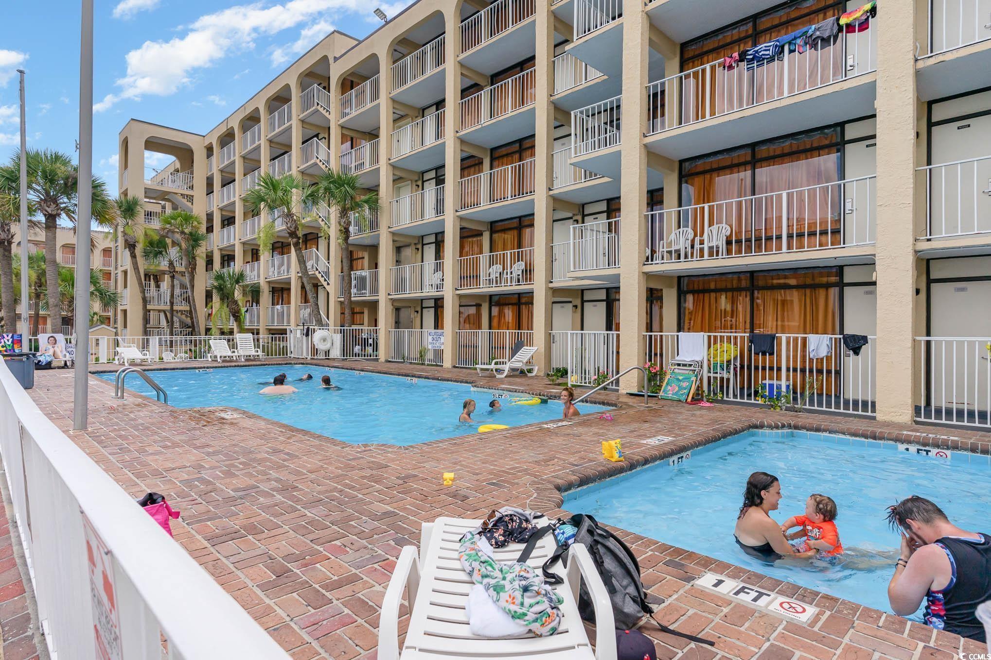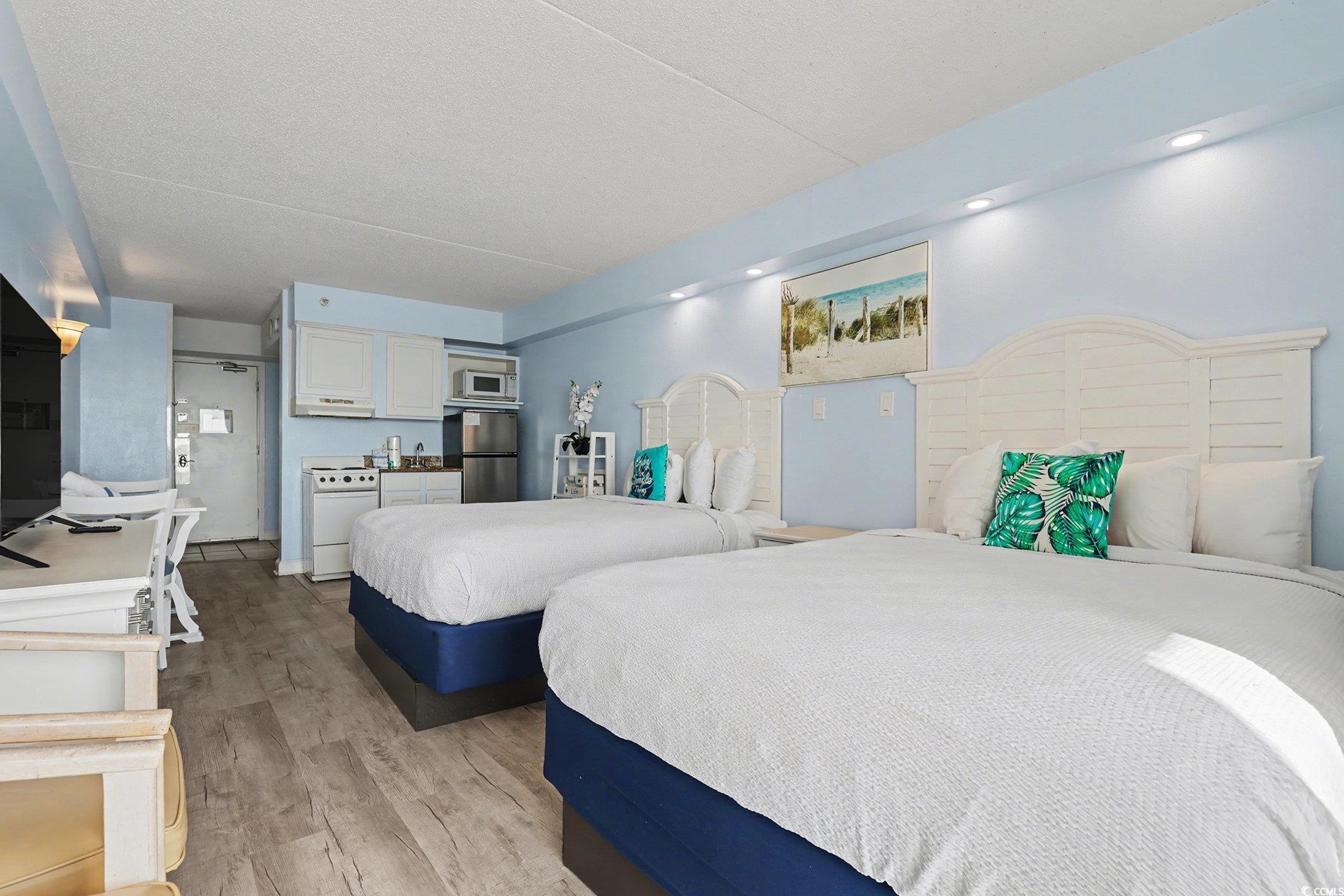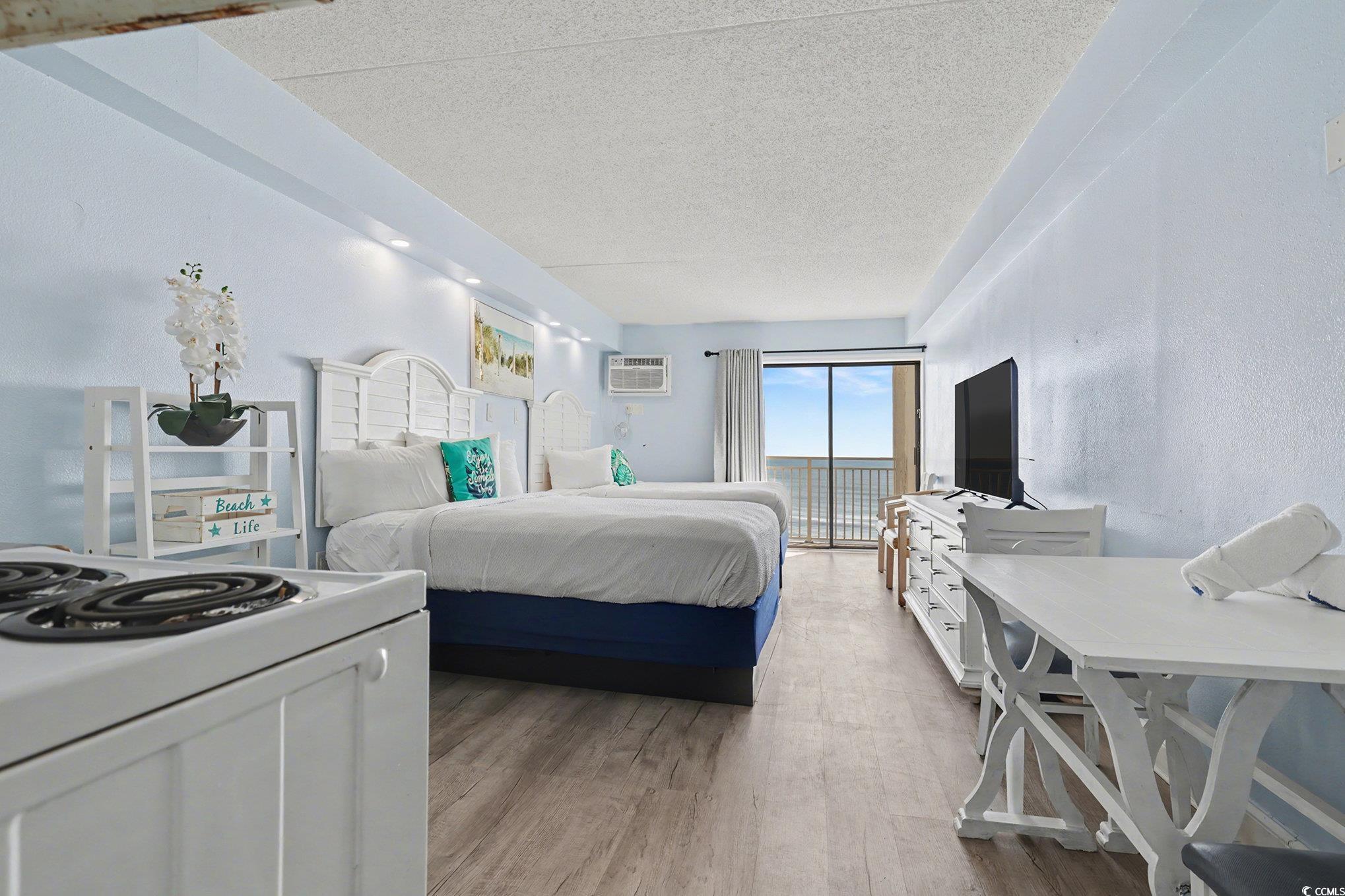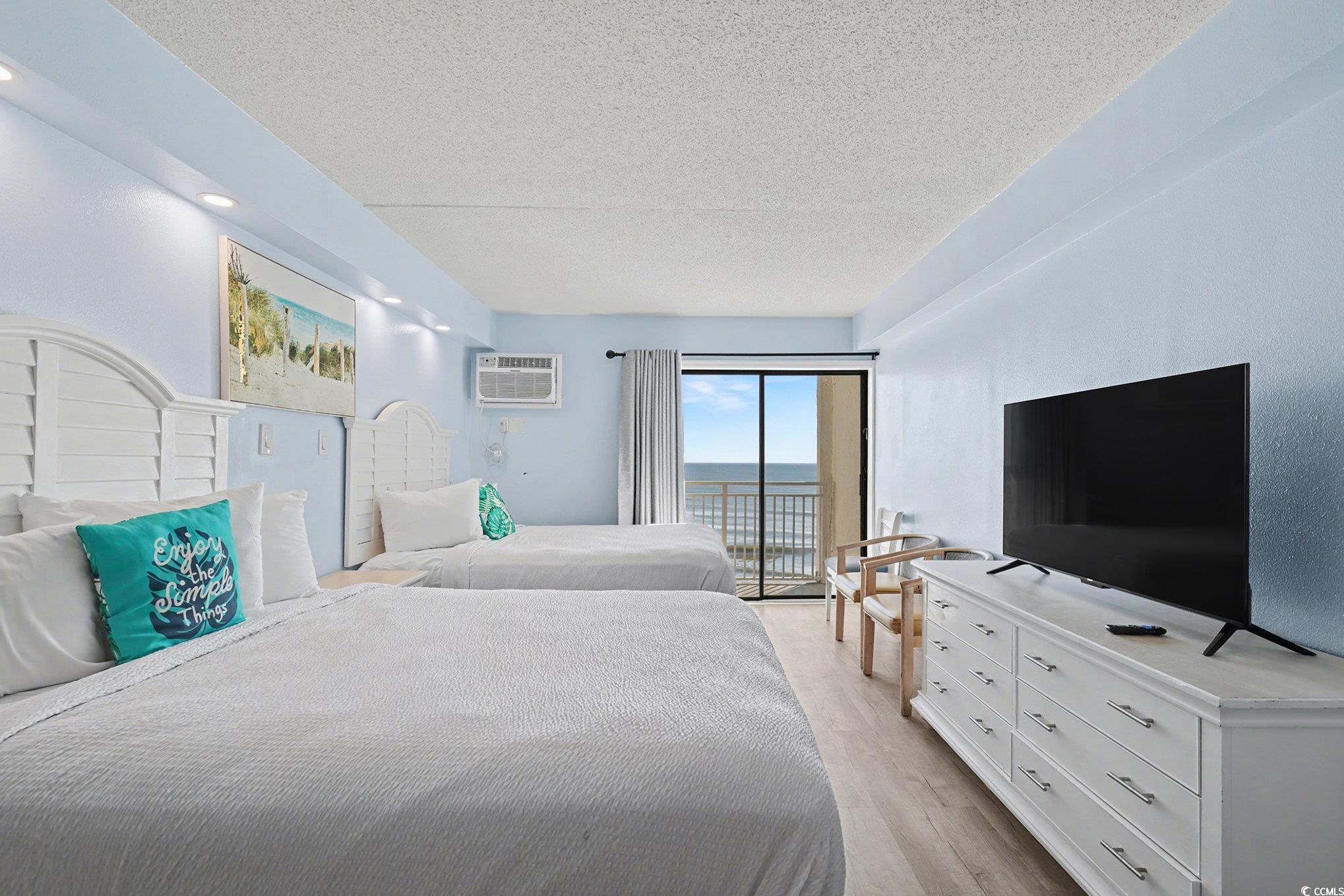 Wonderful opportunity to own a fully furnished, Direct Oceanfront efficiency at Sea Mist Resort. This well-maintained condo includes 2 queen beds, bathroom, kitchen w/stove/oven, new refrigerator, new microwave, new flooring in the main living area, fantastic ocean and sunset views from the private balcony. The spectacular amenities include 8 outdoor swimming pools, 2 indoor swimming pools, several jacuzzies, arcade/game room, beach bar, ice-cream bar, volleyball courts, on-site laundromat, and the Wahoo Water Park. Convenient to Broadway at the Beach, Market Common, Airport, shopping, dining, championship golf, and steps to the ocean.