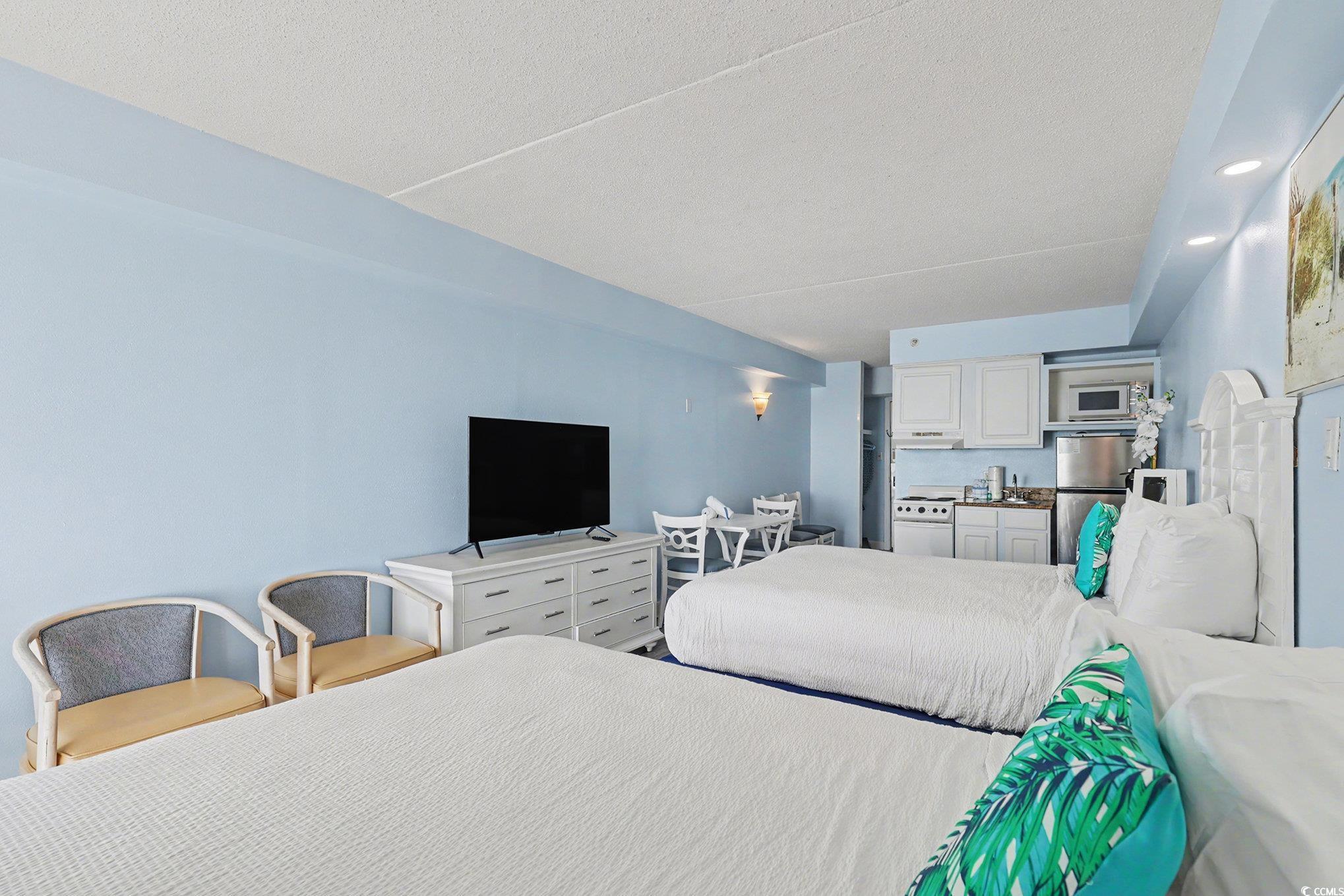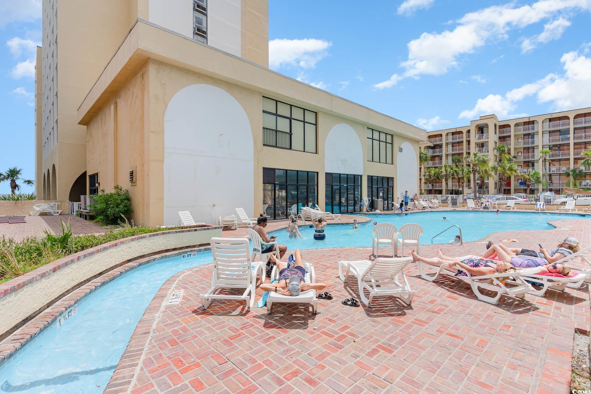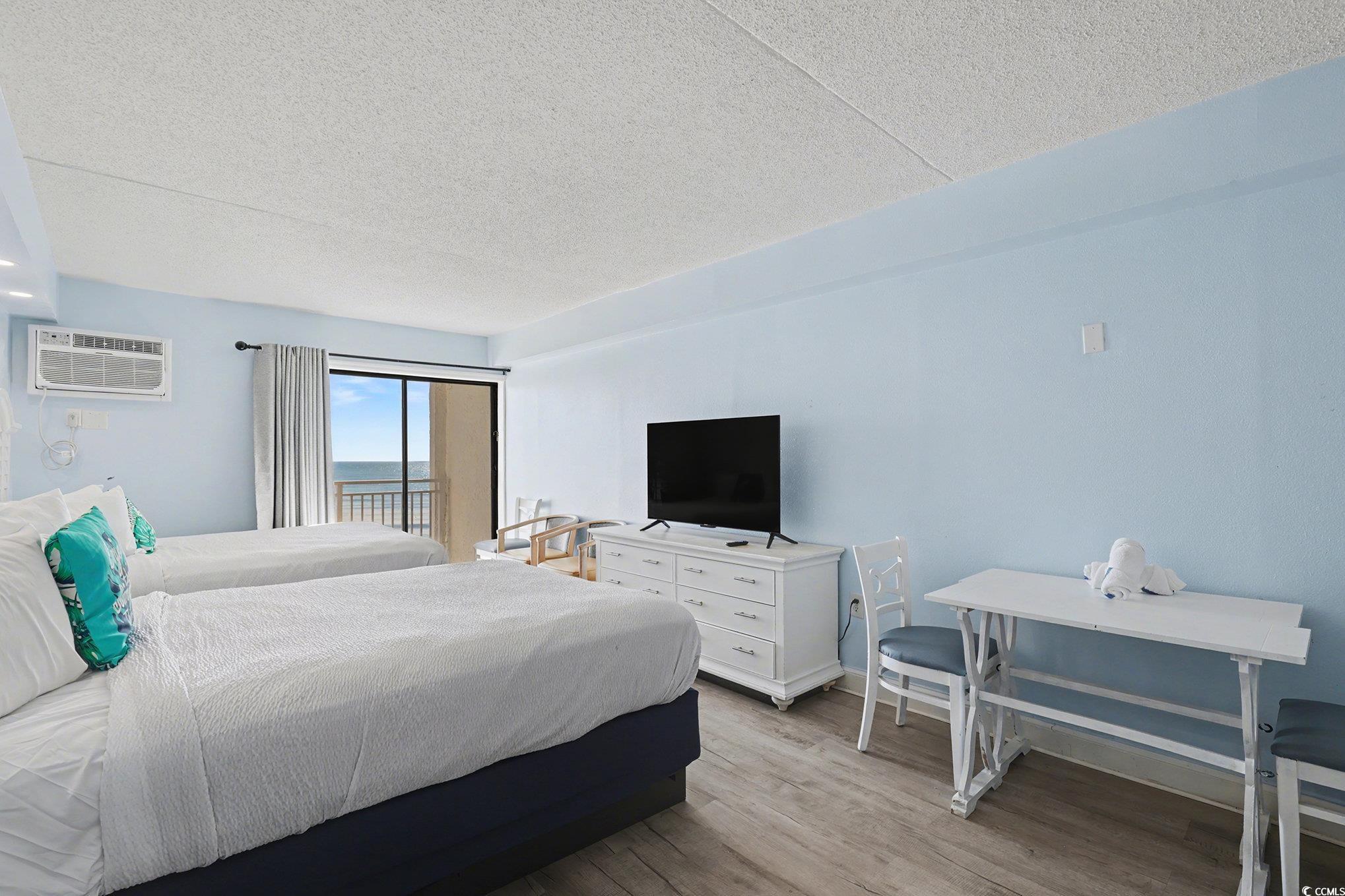 Wonderful opportunity to own a fully furnished, Direct Oceanfront efficiency at Sea Mist Resort. This well-maintained condo includes 2 queen beds, bathroom, kitchen w/stove/oven, new refrigerator, new microwave, new flooring in the main living area, fantastic ocean and sunset views from the private balcony. The spectacular amenities include 8 outdoor swimming pools, 2 indoor swimming pools, several jacuzzies, arcade/game room, beach bar, ice-cream bar, volleyball courts, on-site laundromat, and the Wahoo Water Park. Convenient to Broadway at the Beach, Market Common, Airport, shopping, dining, championship golf, and steps to the ocean.