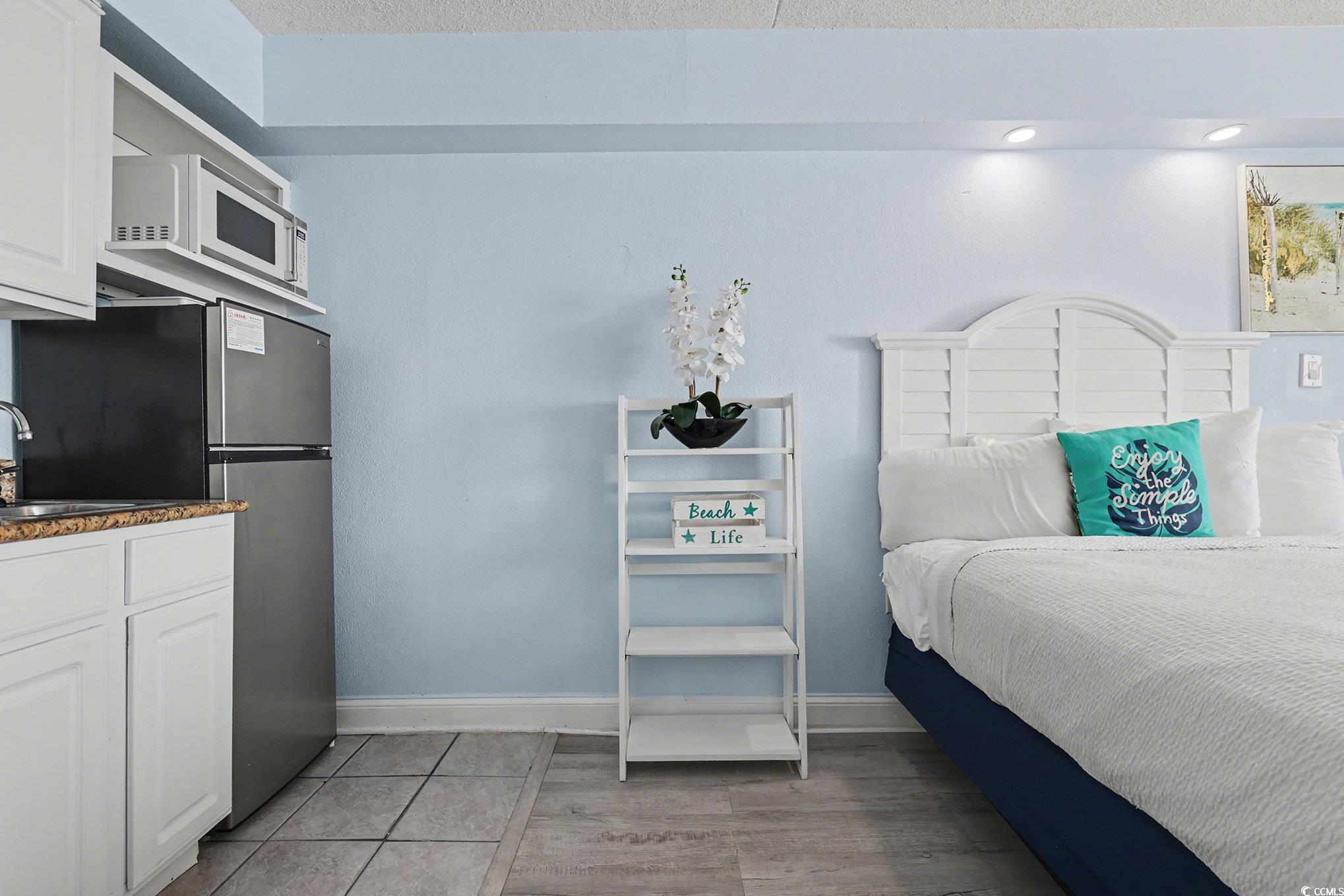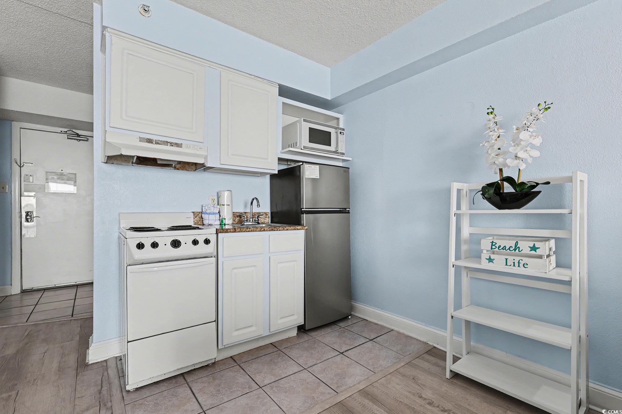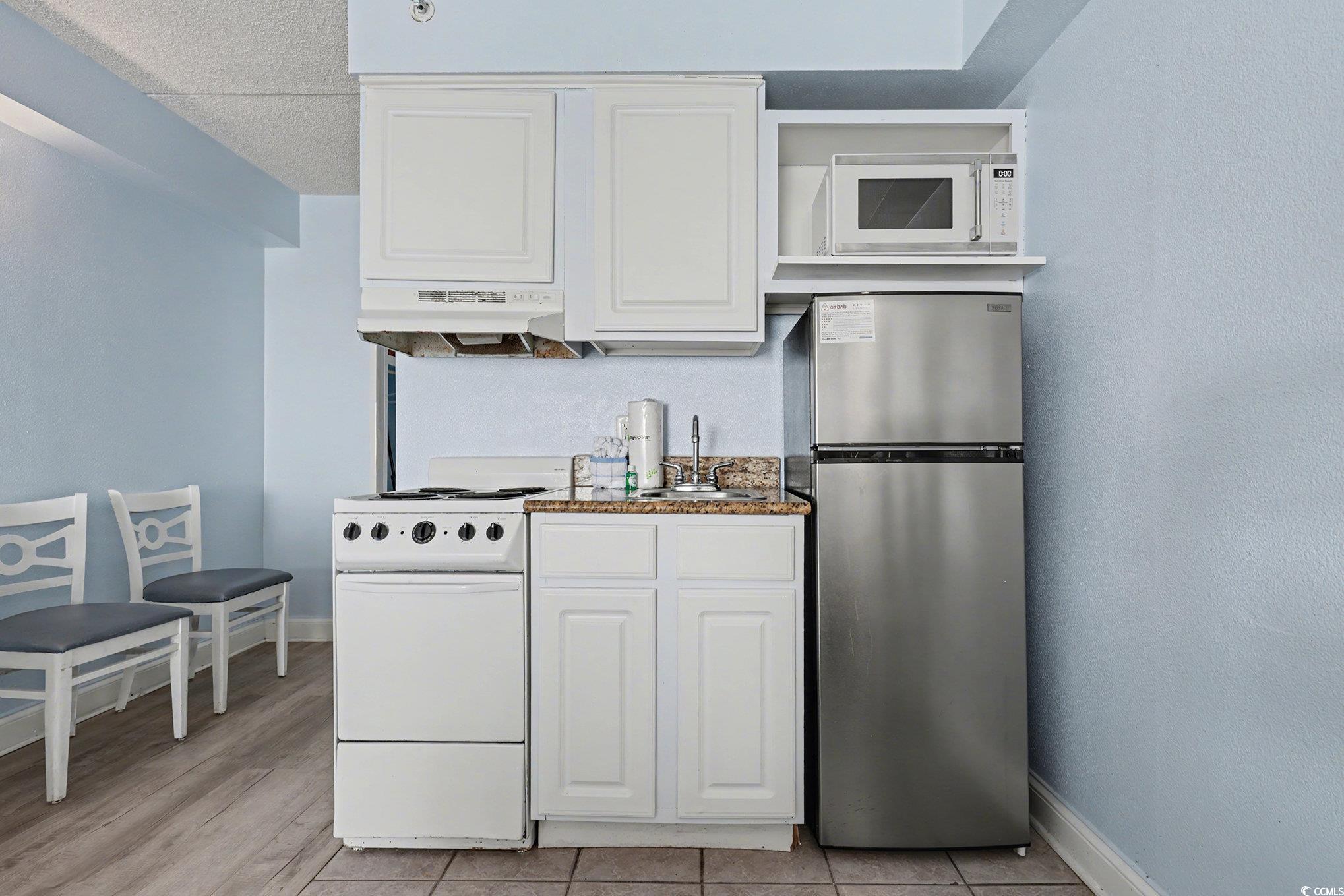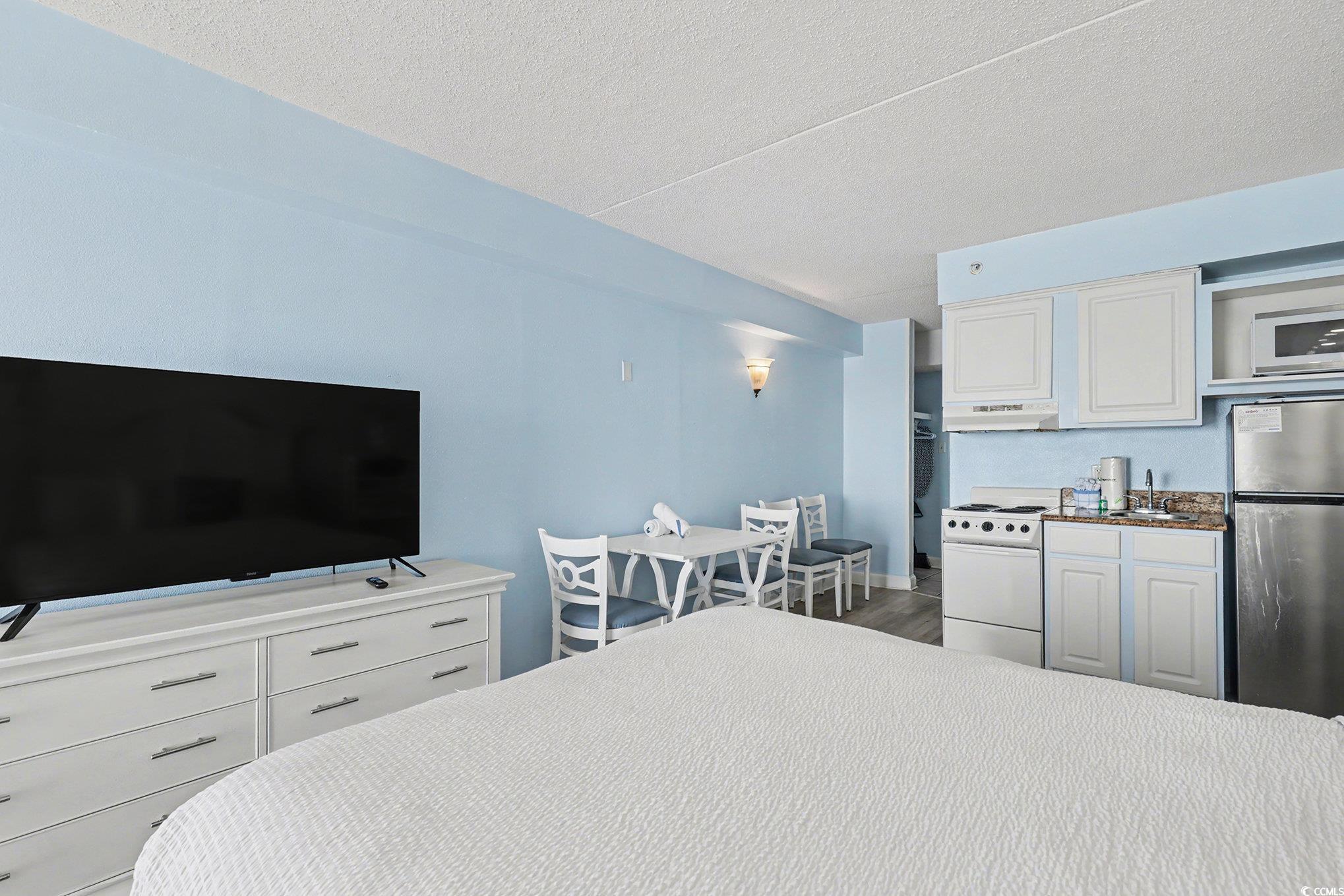 Wonderful opportunity to own a fully furnished, Direct Oceanfront efficiency at Sea Mist Resort. This well-maintained condo includes 2 queen beds, bathroom, kitchen w/stove/oven, new refrigerator, new microwave, new flooring in the main living area, fantastic ocean and sunset views from the private balcony. The spectacular amenities include 8 outdoor swimming pools, 2 indoor swimming pools, several jacuzzies, arcade/game room, beach bar, ice-cream bar, volleyball courts, on-site laundromat, and the Wahoo Water Park. Convenient to Broadway at the Beach, Market Common, Airport, shopping, dining, championship golf, and steps to the ocean.