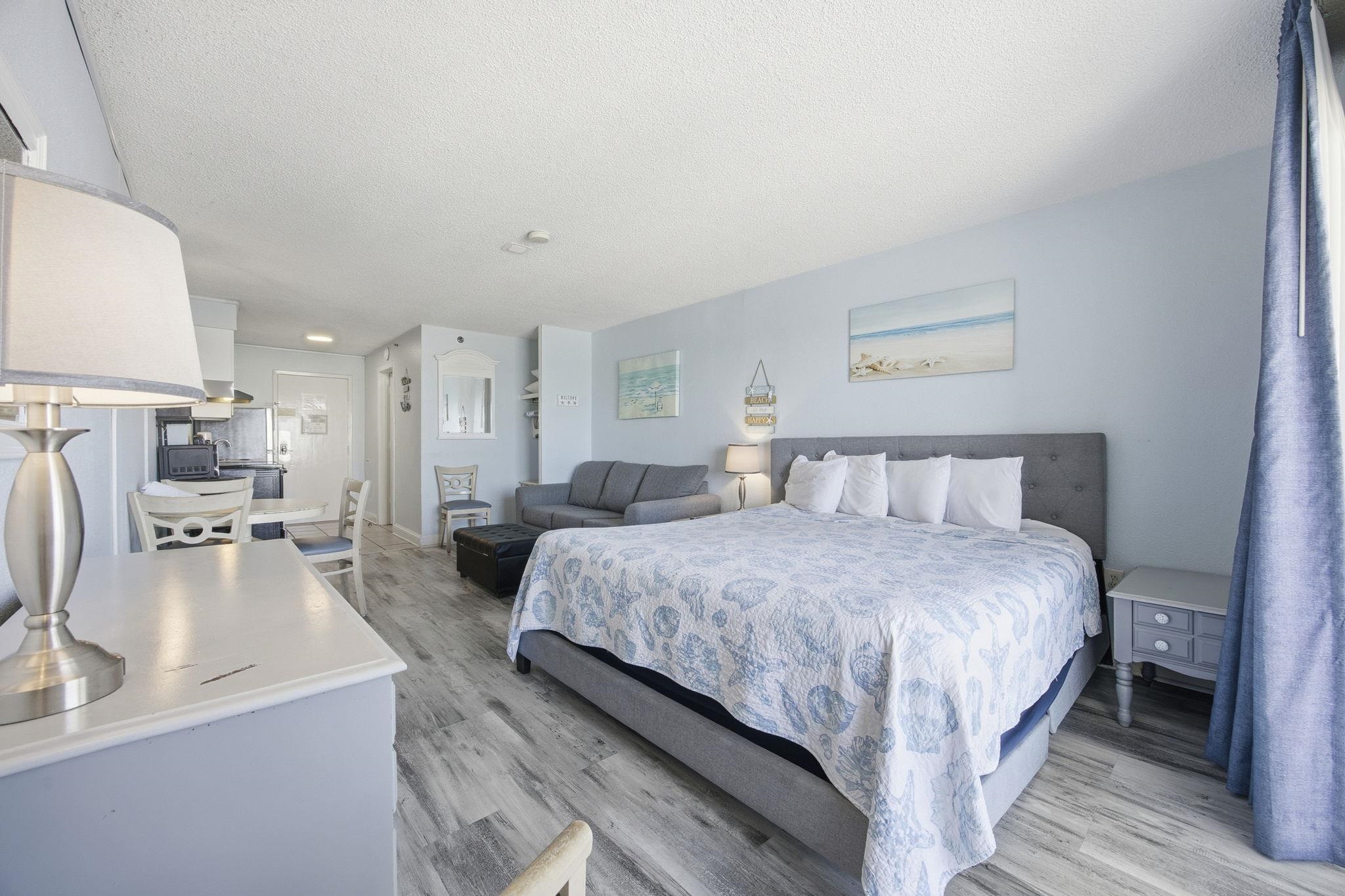 Oceanfront living at its best! This charming ocean-view efficiency at Sea Mist Resort offers stunning Atlantic views, easy beach access, and an unbeatable resort lifestyle. Recent upgrades include tile and LVP flooring and stainless-steel appliances, adding modern coastal style and durability. The light-filled interior features a comfortable living area, convenient kitchenette, and a private oceanfront balcony, perfect for morning coffee, salty breezes, or glowing sunset views. With excellent rental potential or the option for a personal seaside retreat, this is your chance to live the beach life year-round.