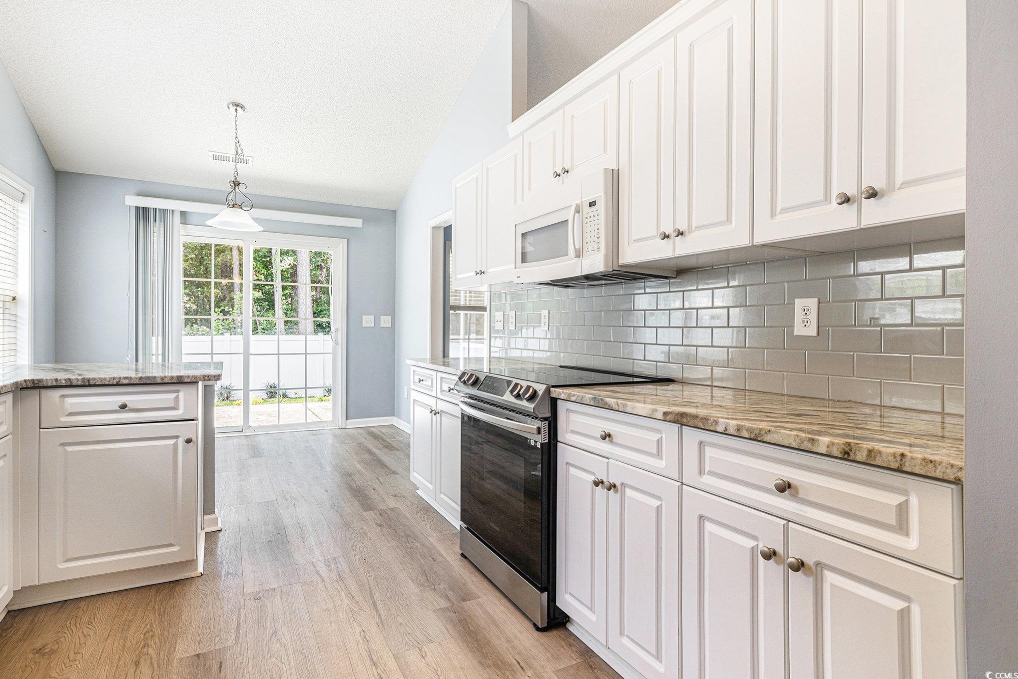 Discover comfort and convenience in this delightful 3-bedroom, 2-bath single-level home, nestled in a well-established and peaceful community. A charming paver-lined front entrance welcomes you in, setting the tone for the thoughtful upgrades throughout. Inside, luxury vinyl hardwood floors span the home, offering both durability and style. The spacious kitchen is a standout with stainless steel appliances, granite countertops, ample cabinetry, a pantry, and a sunny breakfast nook—ideal for everyday living or entertaining. Both bathrooms also feature granite counters for a cohesive, polished look. The formal dining area off the living room adds flexibility for hosting guests. Enjoy the privacy of a fully fenced backyard, complete with a patio and screened porch—perfect for relaxing evenings or casual gatherings. Lightly lived in and meticulously maintained, this home is ideally located with easy access to the beaches, local shopping, dining, the scenic Marsh Walk, Myrtle Beach attractions, and the charm of historic Pawleys Island. Don’t wait—schedule your private tour today!