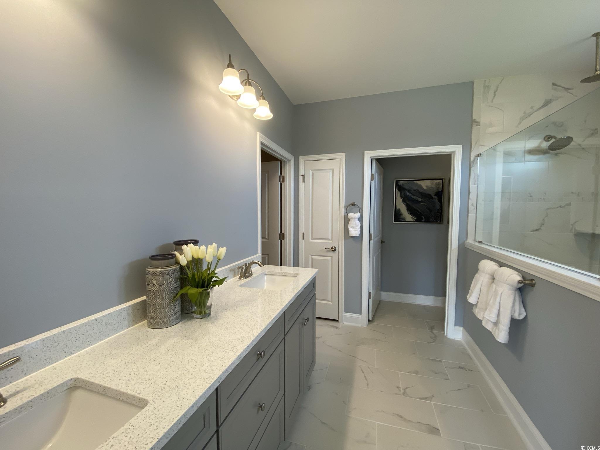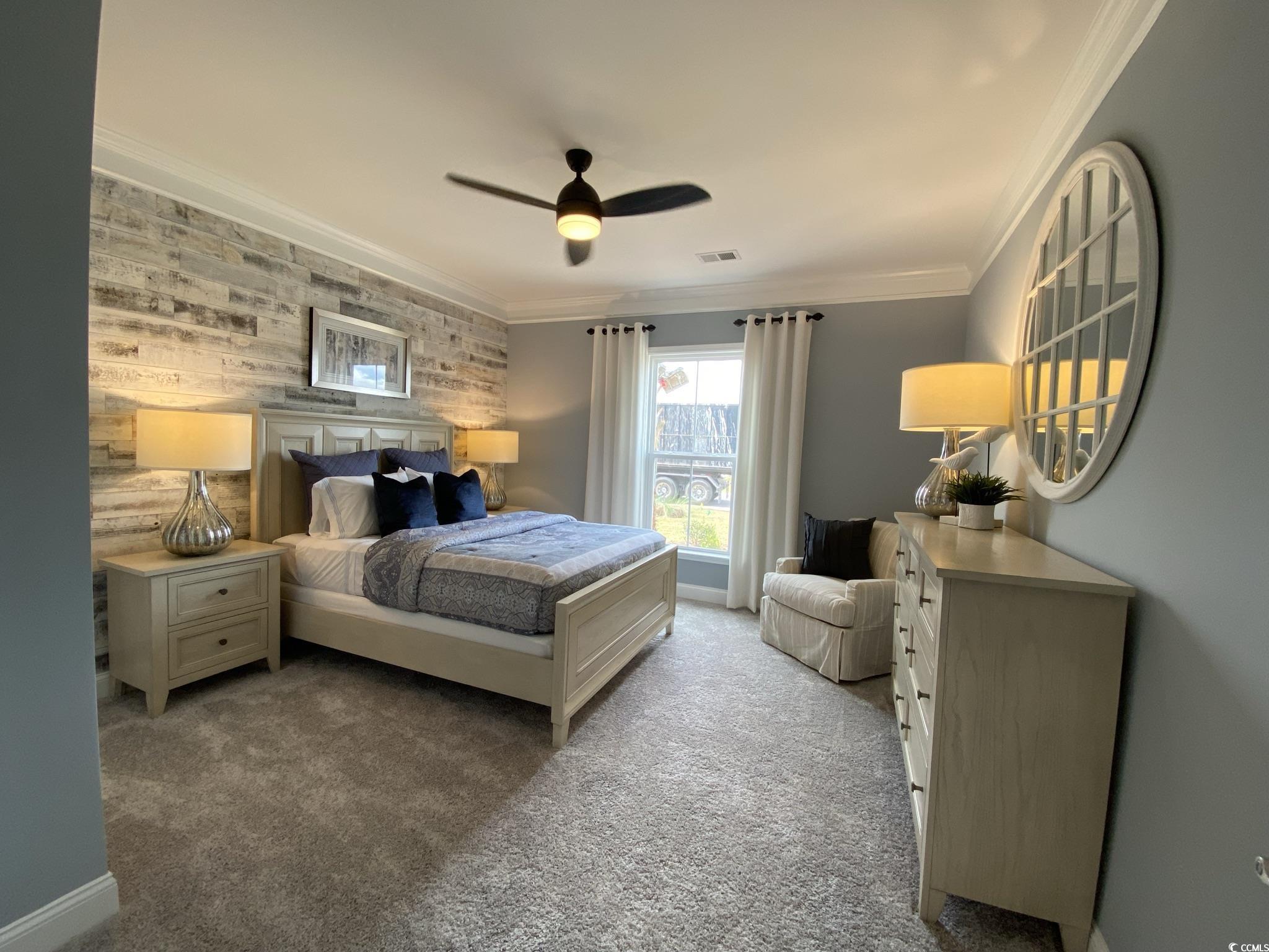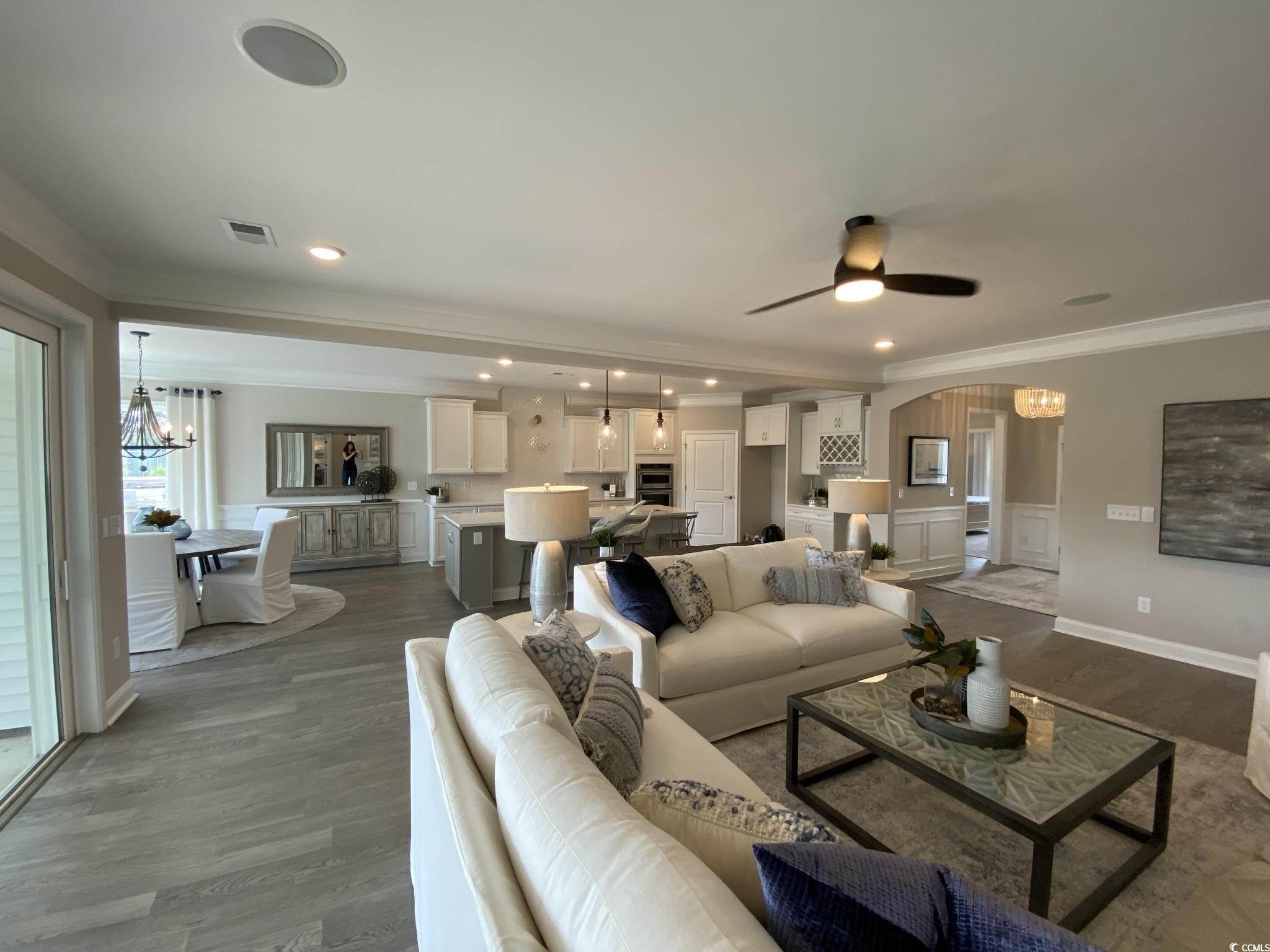MODEL HOME FOR SALE—the last chance to own our most popular floorplan, no longer offered in future communities! This stunning Dunwoody Way model home, built in 2021, is loaded with designer upgrades, 2 car plus golf cart size garage and sits on a beautiful homesite backing up to Crow Creek Golf Course. Enjoy 3 bedrooms, 3 baths (located in opposite corners of the home for privacy), open floor plan featuring spacious living, dining and kitchen areas with beautiful trim upgrades throughout- The living area overlooks a fireplace and beverage center perfect for entertaining! The huge gourmet kitchen features upgraded stainless appliances , quartz counter tops, massive island with farm-house-style sink . Inside, enjoy open-concept living with a rare 3-panel slider that opens from both ends, creating a seamless flow to the spacious paver patio with built-in fire pit—perfect for entertaining. The home also features a dual primary suite with a luxurious en-suite bath, ideal for comfort and privacy. Solid stairs in the garage leads to walk up attic storage. With gas appliances powered by a buried propane tank and thoughtful finishes throughout, this home truly stands out. Complete with a full yard irrigation system, full sod and landscaping! Municipal water/sewer, X flood zone.The community has great amenities, including a 2200 sq ft +/- salt water pool, 2 pickleball courts, a wood burning fire pit by the water, and a pavilion with restrooms for your use. Pulte is an esteemed builder who stands behind their homes with an industry leading 10 yr in-house warranty included at no extra cost. With so many amazing features and perks of owning a Pulte home, make this one yours! Eagle Run is located within 30 minutes of 60 golf courses, 10 minutes from multiple beautiful beaches and 5-10 minutes from all your shopping needs..