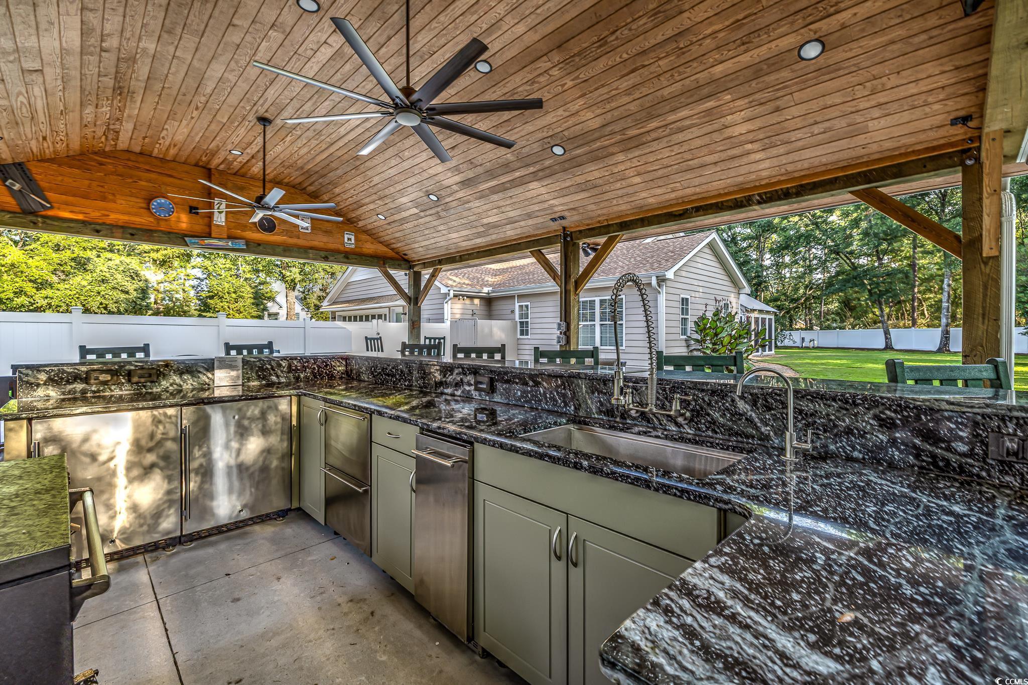 This extraordinary 1.25-acre property in Pawleys Island offers the perfect setting for multi-generational living, work-from-home flexibility, and resort-style outdoor living—all with no HOA and just a short drive from beach access. The main home features two spacious master suites, including one with its own private living room and fireplace, ideal for a separate retreat or in-law suite. A flex room with a built-in Murphy bed adds even more versatility, perfect for a guest bedroom, office, or playroom. The beautiful kitchen includes granite countertops, stainless steel appliances, and a large island—designed for both function and style. Additional features include a custom butler’s pantry and luxury vinyl plank flooring. The detached two-story guest house expands the possibilities even further. The upper level is a private 1-bedroom apartment with a full kitchen, laundry, and separate entrance—perfect for extended family, guests, or even rental potential. The ground floor offers two dedicated office spaces and extra storage, currently used as a professional work-from-home setup, but easily convertible into another private suite or additional living area. Step into the backyard and you’ll find a true showstopper: a fully custom pavilion with a state-of-the-art outdoor kitchen, featuring Werever (weatherproof, marine-grade) HDPE cabinets, granite countertops, a Kamado Joe cooker, gas grill, flattop, and multiple built-in refrigerators and appliances. Whether you're entertaining or unwinding, this outdoor space is second to none. Other standout upgrades include a Generac generator, tankless water heaters, newer HVAC and roof, updated bathrooms, irrigation system, and RV hookups—all meticulously maintained and thoughtfully designed. This is a rare opportunity to own a truly exceptional and flexible property in the heart of Pawleys Island. Schedule your private tour today and experience this one-of-a-kind lifestyle for yourself.