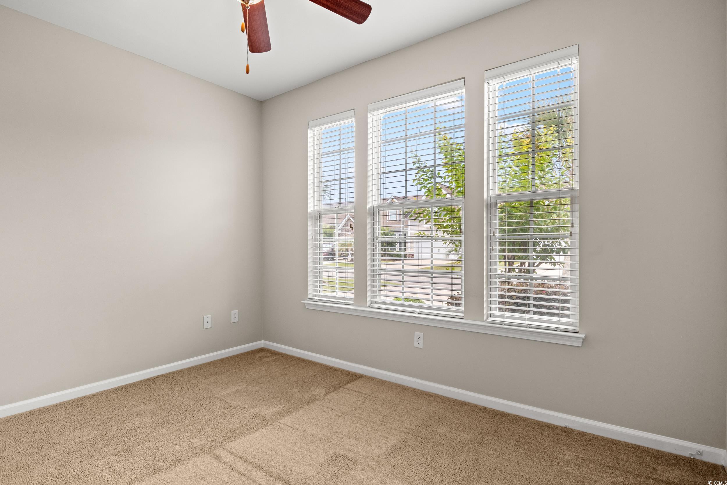 SPECTACULAR WATER VIEWS FROM EVERY LEVEL IN THIS SPACIOUS TOWNHOME! — including the kitchen, dining area, family room, screened-in porch, primary bedroom, and upstairs back bedroom! Step inside to a welcoming foyer with wainscoting detail and fresh paint throughout the downstairs. At the front of the home, you’ll find a versatile bedroom with a large closet — perfect for guests or a home office — and a full bath with a tub/shower combo just across the hall. There's also a convenient coat closet off the foyer. From the foyer to the kitchen and family room, the approximately 15-foot ceilings create a spacious, bright, and airy atmosphere that welcomes you the moment you walk in The kitchen features stylish two-tone cabinets (white & gray), granite countertops, a breakfast bar, and stainless-steel appliances. The open-concept dining and family room offers great space for entertaining, with a ceiling fan and a wall bracket ready for your TV. Step through the family room French door to a 14’ x 10’ screened-in porch with beautiful ceramic plank tile flooring — the perfect place to enjoy your morning coffee or unwind in the evening with sunset views over the pond and its tranquil water feature. There’s also an adjacent patio for your grill. The primary suite on the main floor boasts his-and-hers walk-in closets, a ceiling fan, and sliding glass doors to the screened porch. The spacious en-suite bathroom includes a large shower, double-sink vanity with ample storage, an over-the-toilet cabinet with shelving, and a generous linen closet. Upstairs, you’ll find two more sizable bedrooms with great closet space, including extra storage in the front bedroom. These bedrooms share a well-appointed Jack & Jill bathroom. The garage includes overhead shelving for even more storage space. Parmelee is a desirable golf cart friendly community in the heart of Murrells Inlet, offering a true coastal lifestyle. Just minutes from the MarshWalk, residents enjoy easy access to waterfront dining, live music, and scenic views. The Atlantic Ocean is a short drive away, along with top-rated golf courses, fishing, and water sports.