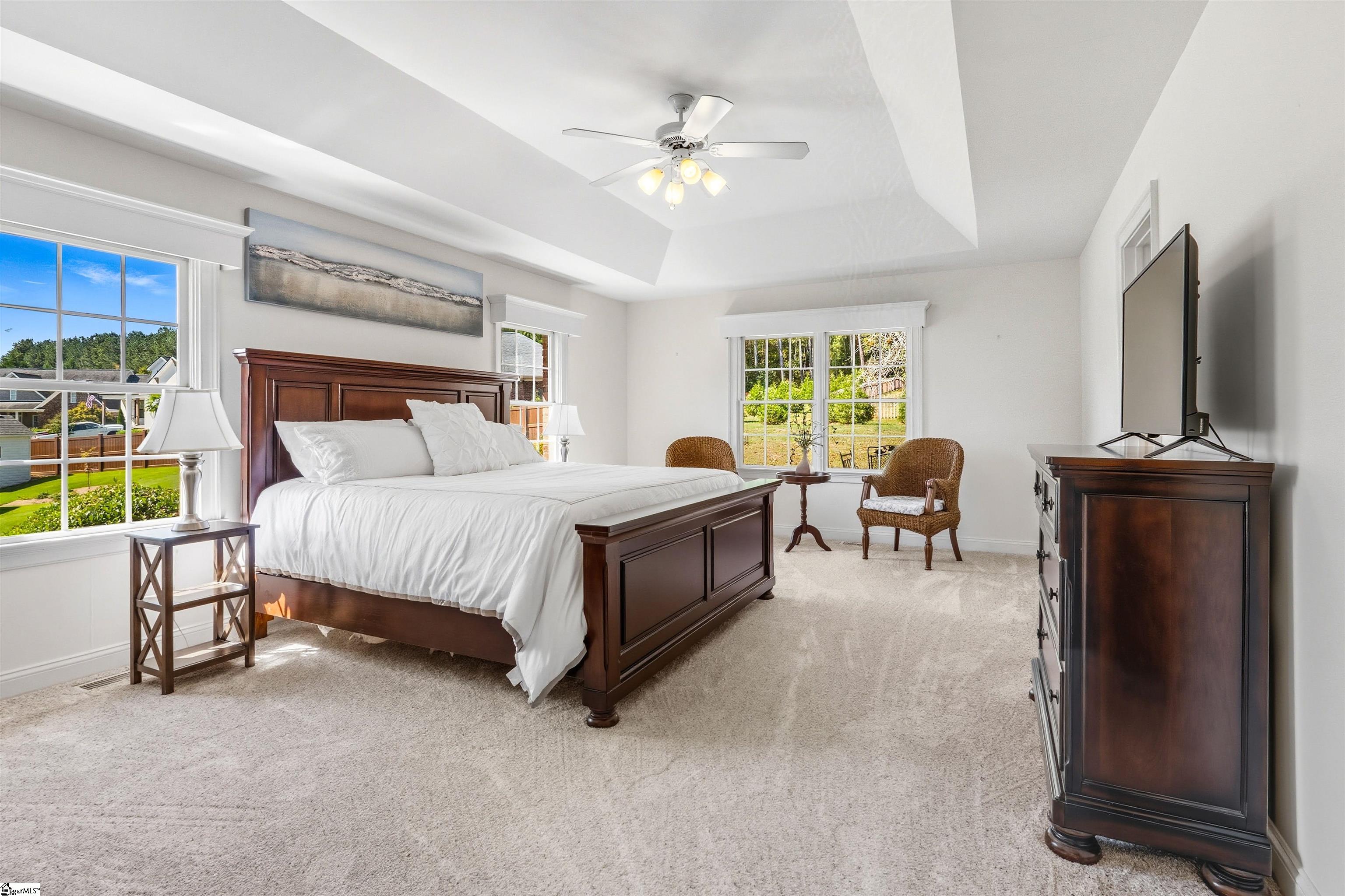 Welcome to Watson Grove in Easley! Easley is known for its rich history as a railroad town, its charming specialty shops, and its welcoming local restaurants. This beautiful all-brick, one-and-a-half-story home sits on a spacious corner lot in a quiet cul-de-sac and features a two-car side-entry garage. With three bedrooms, two bathrooms, and thoughtful details throughout, it’s ready for its next owners. Step inside and you’re welcomed by an open foyer that leads to a stunning living room with soaring 18-foot ceilings and large windows that flood the space with natural light. In the evenings, enjoy the warmth of a cozy gas fireplace. The kitchen offers plenty of granite counter space, a built-in desk for recipes or homework, and elegant touches like a tile backsplash and view-through cabinets. A generous dining room sits just off the kitchen, making it easy to gather with family and friends. You’ll also love the convenience of a large laundry room and mudroom. The primary suite is a true retreat with new carpet, a large walk-in closet, and enough space for a sitting area. The private bath features double sinks, a soaking tub, and a separate shower. Two additional bedrooms share a full hall bath, while a versatile bonus room with an oversized walk-in closet can be used as an office, craft space, playroom, or cozy reading nook. Outdoor living is just as inviting with a covered patio and an extended deck, perfect for relaxing or entertaining. Recent updates include new HVAC units, gutters, and downspouts, giving you peace of mind. This home is zoned for the sought-after Powdersville School District and offers a convenient location just 10 minutes from Easley’s vibrant downtown Silos and the popular Doodle Trail. You’ll also be only 25 minutes from downtown Greenville and about 40 minutes to Lake Keowee, making it easy to enjoy the best of the Upstate. Don’t miss your chance to call this Watson Grove gem your new home. Schedule your showing today!