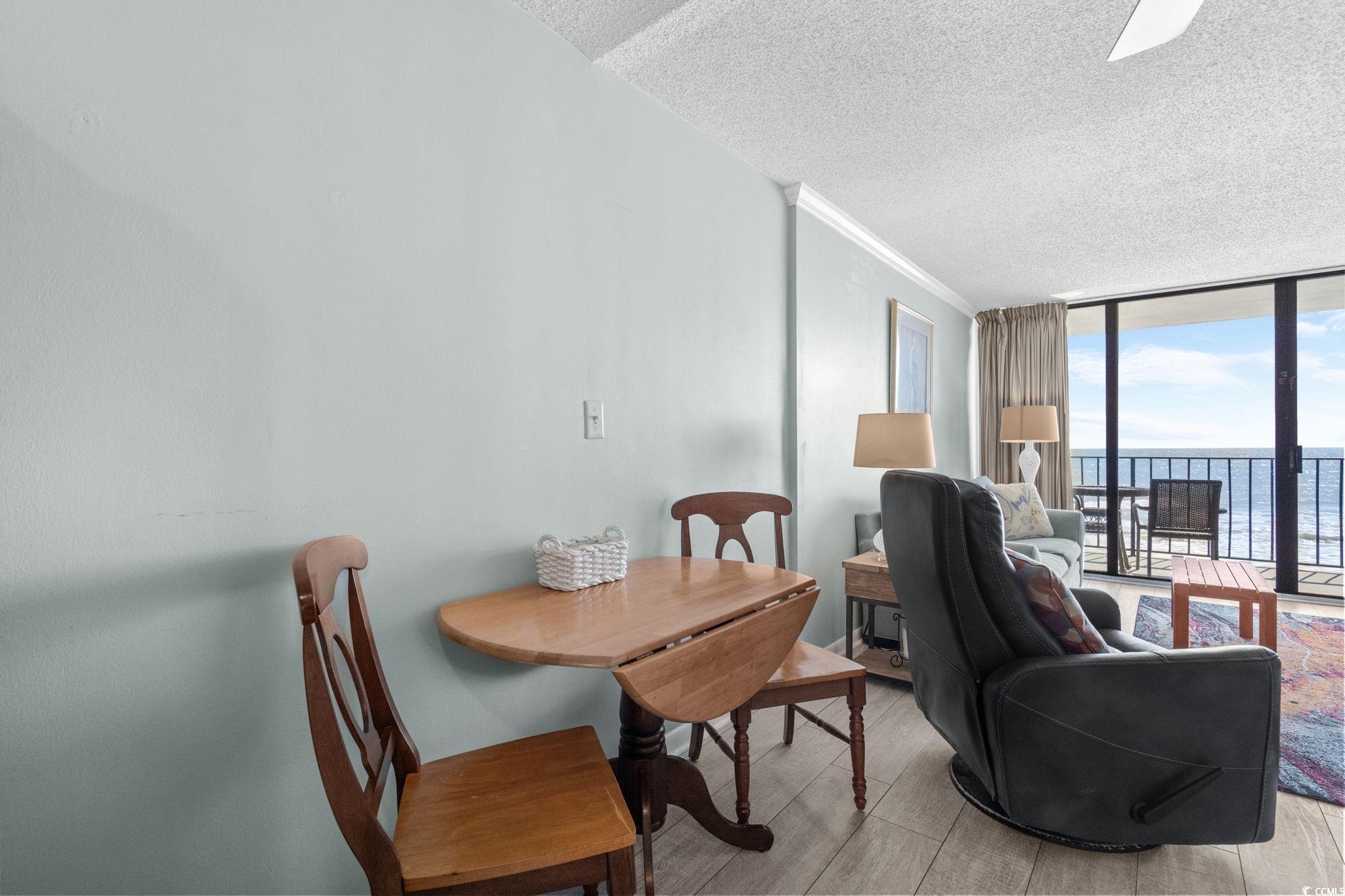 Incredible opportunity to purchase this fully furnished 1 bedroom 2 bath direct oceanfront unit in the highly sought after Royal Garden Resort at Garden City Beach! Unit 203 offers very rare and easy direct access to the condo as you can drive right up to the top deck of the parking garage and walk straight to your front door. No need for the stairs or an elevator during the busy summer months! The condo includes well appointed furnishings throughout and the kitchen comes fully equipped with stainless steel appliances, breakfast bar/work island, and plenty of cabinet space. Adjacent to the kitchen is the dining area and living area leading out to your private oceanfront balcony. Enjoy your morning coffee while watching sunrise or your favorite evening cocktail taking in those amazing views of the Atlantic Ocean! The primary suite includes plenty of closet space and a private full bath. Additionally, there is a second full bath for guests. Stackable Washer/dryer inside the unit for added convenience. Royal Garden Resort amenities include 3 elevators, indoor & outdoor pools, kiddie pool, hot tub, sauna, game room, fitness room, Salty Pickle Bar & Grill, and on-site covered parking deck. Owners are allowed pets & golf carts are allowed as well. Perfectly situated close to all of the area's finest dining, shopping, golf, entertainment attractions, Garden City Beach Pier, Surfside Beach Pier, and the famous Murrells Inlet Marsh Walk! Whether you are looking for an investment opportunity or a vacation home at the beach, you won't want to miss this. Call the listing agent today for a showing!