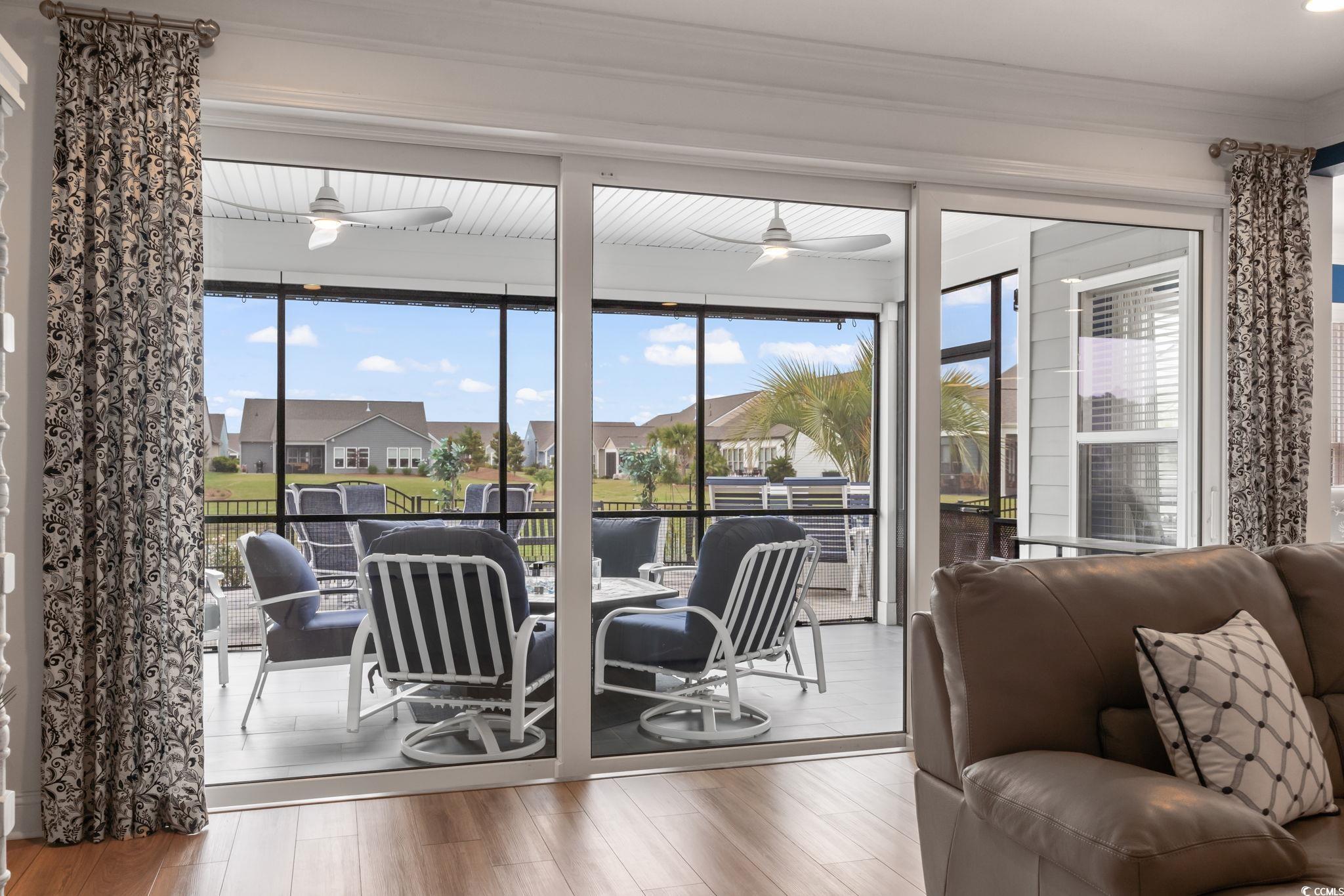 Indulge in luxurious living at this rare find in the sought-after 55+ active lifestyle community of Del Webb at Grande Dunes. This unique Dunwoody Way floor plan offers 3 bedrooms, 3 bathrooms and 1/2 loft, and oversized 2 car garage and golf cart bay. The home welcomes you with a spacious open floor plan blending elegance and functionality seamlessly. A versatile flex space is off of the foyer. The gourmet kitchen is a chef's dream, equipped with stainless steel appliances, range hood, farmhouse sink, and quartz countertops. The split bedroom layout offers privacy, with the primary bedroom featuring a detailed en suite bathroom with a fully tiled walk-in shower, double vanities, and a generous walk-in closet with built-ins, a dedicated Mitsubishi mini-split HVAC system in the master bedroom, and a Westinghouse water filtration system. The upgrades are endless and a full list is available upon request. The outdoor living area is enhanced for seamless indoor-outdoor enjoyment with an oversized screened in Lanai, and a whole house generator. The Del Webb community is located on the Intercoastal Waterway. The amenities that are offered capture the dream of coastal living! You have access to a 15,000 sq foot clubhouse with an on-site lifestyle director. With a range of classes available to take there is also a state of the art fitness center and indoor pool. The clubhouse overlooks the resort style pool that includes lounge chairs, cabanas, outdoor grilling, fire pits and stunning Intercoastal Waterway views. Take your golf cart or utilized the sidewalks and trails to access the communities tennis courts, pickleball courts, or day dock with boat access to the waterway. Owners will also have access to the residents only Ocean Club. The Ocean Club is home to pools, private dining, and beach access. This location is minutes from the beach, golfing, restaurants, shopping, hospitals, and entertainment. Make this your home today and experience the elevated coastal lifetsyle.