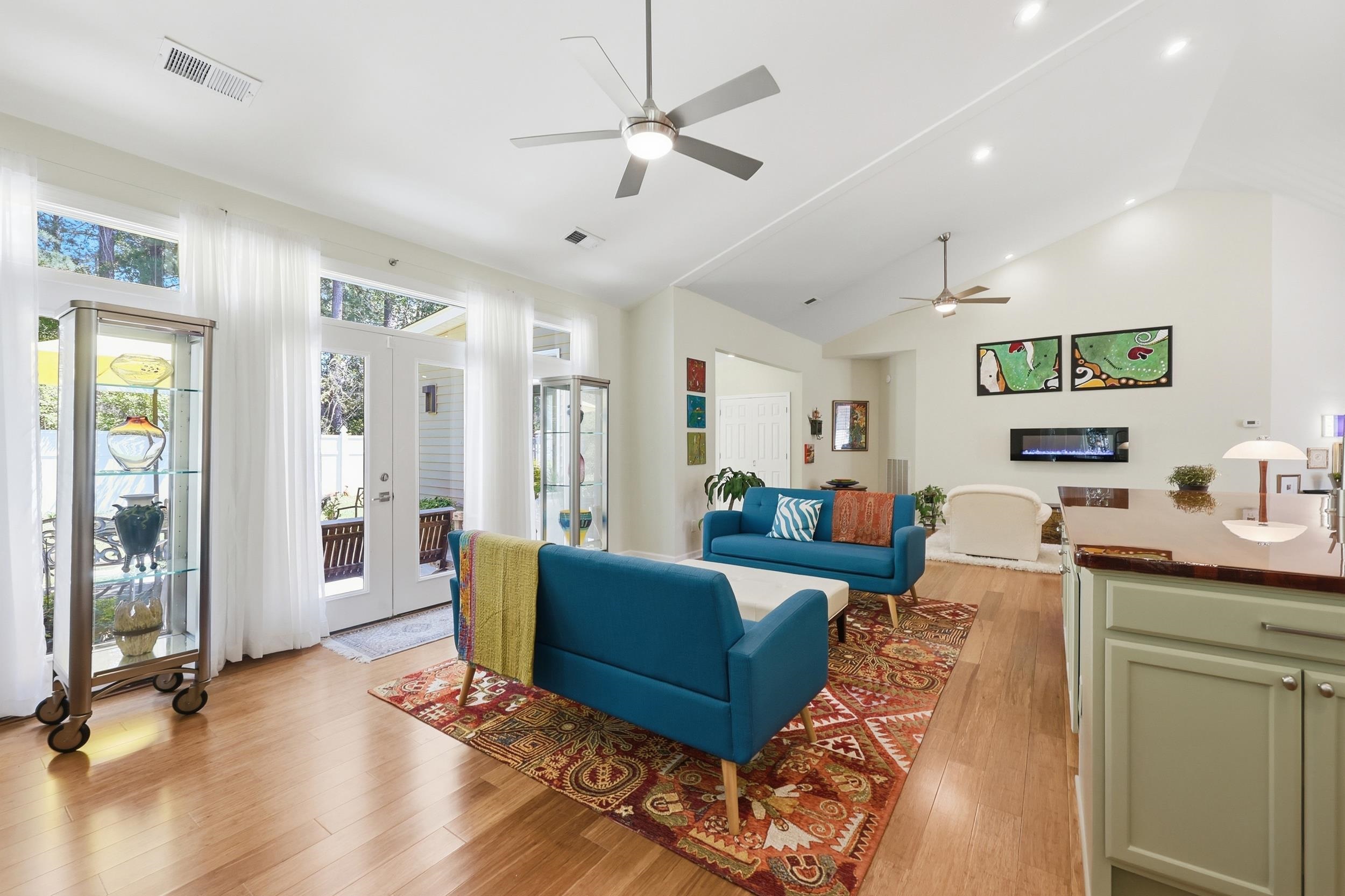 Nestled on a beautifully maintained 1/3-acre corner lot in a quiet cul-de-sac, this inviting home offers comfort, charm, and plenty of space to enjoy both inside and out. The extended driveway and welcoming curb appeal set the tone for the thoughtful details found throughout. Step inside to a vaulted great room filled with natural light, where a modern fireplace, wall of windows, and French doors to the patio create a bright and comfortable gathering space. The kitchen is the heart of the home, featuring an oversized center island, custom cabinetry, expansive countertops, stainless steel GE appliances, and a gas stove. A cozy breakfast nook, dining area with Charleston shutters, and nearby sunroom offer wonderful places to share meals, relax, or spend time with family and friends. The primary suite provides a peaceful retreat with high ceilings, abundant natural light, and an ensuite bath with a glass-and-tile shower, dual vanity, and custom backsplash. Two additional guest bedrooms and a hall bath are located at the front of the home. A laundry room, half bath, and garage with pull-down stairs, shelving, and workbench add everyday convenience. Living in Myrtle Trace puts you close to everything buyers love about this area, including hospitals, doctors, shopping, dining, entertainment, golf, and the beach. Recent updates, including a new HVAC system, ductwork, and roof within the last few years, add peace of mind so you can simply settle in and enjoy.