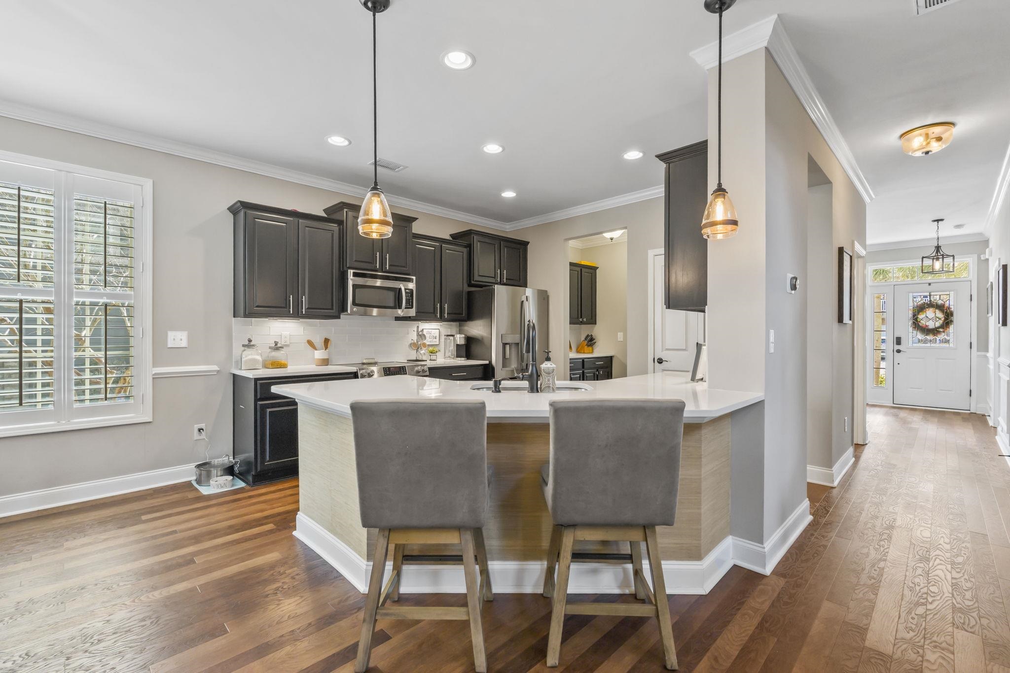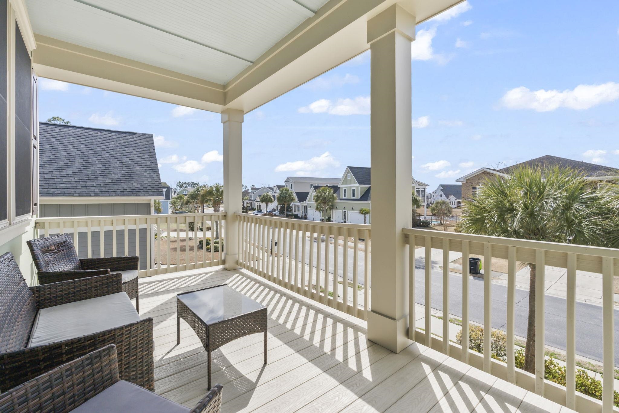 Are you looking for a stunning, traditional home in a highly coveted, gated neighborhood? Look no further than 1217 E. Isle of Palms Ave., located in the prestigious Waterway Palms Plantation. This 4 bed 3.5 bathroom home with a huge bonus room is perfect for your family. This home boasts dual master-suites, one for you and one for your mother-in-law! When you walk in the home, the downstairs master is off to the left and the dining room is to the right. The master has just been redone with brand new wallpaper and an accent wall. The ensuite has a tile shower, a huge tile-surrounded soaking tub, dual sink vanity and separate water closet. Not pictured is a walk-in closet with a custom closet system, a huge upgrade from your typical wire rack shelving. Walk out of the master and into the dining room and through the butler's pantry, where you have plenty of storage options. Now enter the kitchen, dark cabinets with a beautiful white quartz and glass tile backsplash make it feel modern and sleek. There are upgraded GE appliances and there is plenty of island space for a real chef to cook for days! There is space for a long kitchen table across the island, all of which overlooks the living room. Now, the entire house has high ceilings but the living room's ceilings are one of the main focal points of the home at 20 ft high! Pair that with the quaint fireplace and it truly feels like home. There are plenty of windows that truly flood the home with natural light. You will notice that the good majority of the windows in the home have custom plantation blinds, too! Before you go upstairs, make note that there is a half bath for guests and a second pantry and a "Harry Potter Closet" under the stairs for extra storage. Now, head upstairs to all the additional bedrooms and the bonus room.. you're in for a surprise. The upstairs master/in-law suite possesses all the same features the downstairs master does..but adds its own private covered porch! Guests only leave this room when it's time to eat or go to the beach. Again, the ensuite features the separate shower and tub, dual vanity and again a custom walk-in closet. Leaving the master, you can see two additional bedrooms that are a good size, not your typical 10x11 builder grade bedroom. One of the bedrooms has a beautiful accent wall. There is a laundry room and another full bathroom with a custom tile shower for these two bedrooms to share, as well as a huge 6x10 storage closet and a linen closet! This house was designed with storage in mind. Now... for the grande finale... walk towards the end of the hallway into the biggest bonus room you've probably ever seen. This is the sellers' favorite part of the house! With enough space for a full second living room and a playroom.. this room can't be beaten. This room gets so much light and was designed for you to make memories in. Now step out into the screened back porch and let's focus outside. If you're sick of neighbors behind you... no worries! Not possible here with the land behind it owned by the Army Corps of Engineers. This house comes with a fenced portion of the backyard. One of the main features of this property that makes it really stand out compared to the rest of the neighbors is the length of the driveway.. it's longer than the entire house. Most driveways only have room for 2 big cars or 4 small ones in the ICW neighborhoods.. but this one has plenty! With easy access to all the things Carolina Forest has to offer, including an incredible school system, Publix 1 minute down the road and easy access to 31, 17 and International Drive.. this location is a no brainer. This house is unique and stylish and priced well for the neighborhood. See it soon before it's gone!